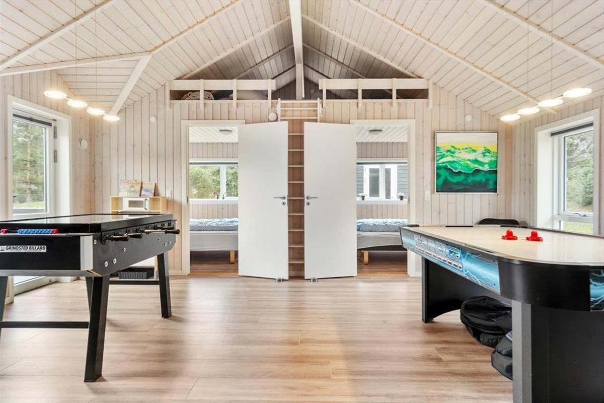 In einer kleinen, mit Schotter versehenen Sackgasse. Nur einen kurzen Spaziergang von Blåvands Hauptgeschäftsstraße entfernt, lädt dieses Ferienhaus zu gelungenen Urlaubstagen im Familienkreis ein. Das Haus beherbergt bis zu 10 Personen. Aber auch, wenn ihr mit weniger Personen anreist, ist es einfach herrlich, in diesem hellen, gut durchdachten Mietobjekt mit einer Fülle toller Annehmlichkeiten erholsame Urlaubstage zu verleben.