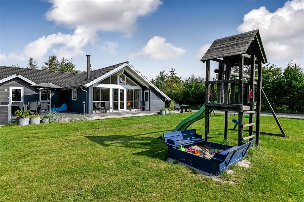Sonnige Tage genießt du mit deinen Lieben gern in aller Ruhe auf dem 1.500 m² großen Grundstück. Auf dem großen Terrassenareal wirst du stets einen schönen Aufenthaltsplatz finden, der deinen persönlichen Vorlieben entspricht - vom Morgenkaffee in der Sonne, über eine kleine Mittagspause im Schatten des Sonnenschirms bis zu einem geselligen Tagesausklang mit einem köstlichen Essen vom Grill. Bevor die Kinder abends ins Bett gehen, können sie die letzten überschüssigen Energien auf der Rasenfläche und auf dem Spielgerüst verbrennen. Wenn die Dunkelheit über Blåvand hereinbricht und der Badeort zur Ruhe kommt, ist es für dich an der Zeit, erholsame Momente im warmen Wasser des Outdoor-Whirlpools zu genießen. Sicher nicht die schlechteste Art, einen gelungenen Urlaubstag zu beenden!