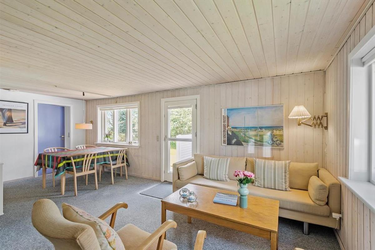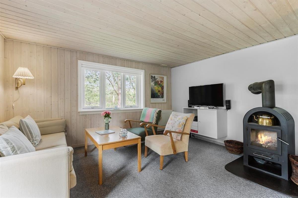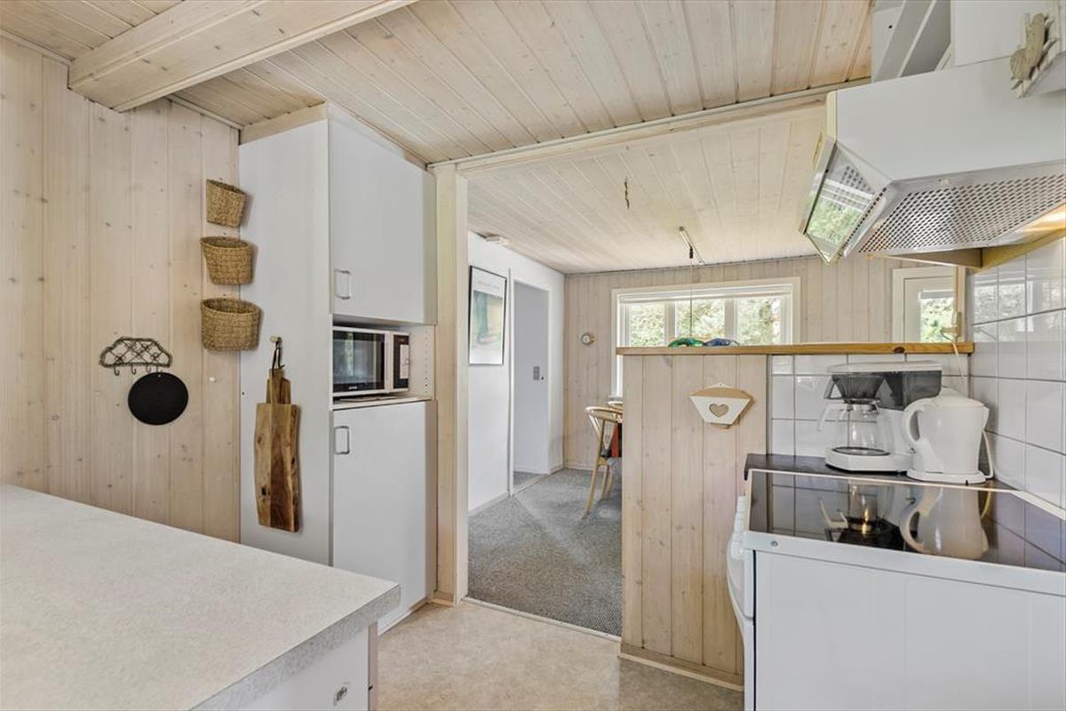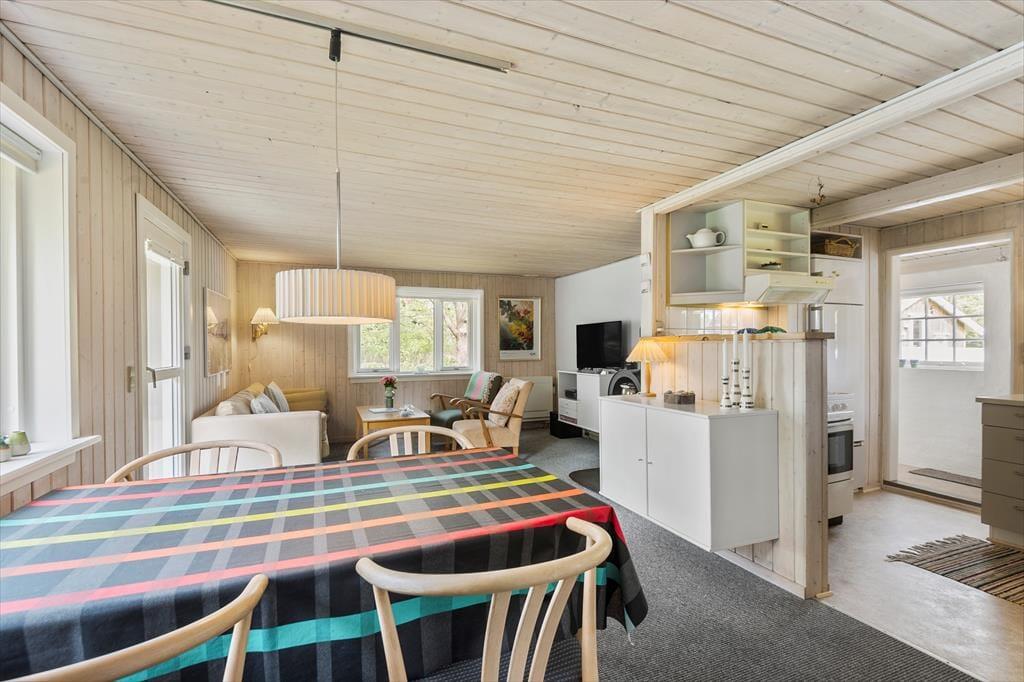 Mit seiner gemütlichen Atmosphäre und guten Raumaufteilung fungiert das Ferienhaus als wunderbare Basis für ein Paar oder eine kleine Familie – und wenn du mit einem Freund Urlaub machen möchtest, um Blåvand und die naturschöne Umgebung zu erleben, ist das ebenfalls gut möglich. Das Haus bietet nämlich zwei gute Schlafzimmer und ein Badezimmer mit Duschkabine, und schließlich gibt es den Wohnraum, in dem das Wohnzimmer und die Küche offen miteinander verbunden sind. Die helle Einrichtung des Wohnzimmers lädt dazu ein, die Tage in Ruhe und Gemütlichkeit zu verbringen, und zentral im Raum steht ein effizienter Kaminofen, der zusammen mit der Wärmepumpe für zusätzliche Wärme und Gemütlichkeit an eventuell kühlen Abenden sorgt.