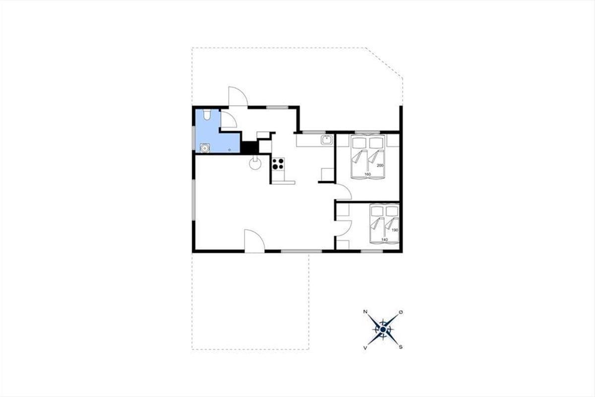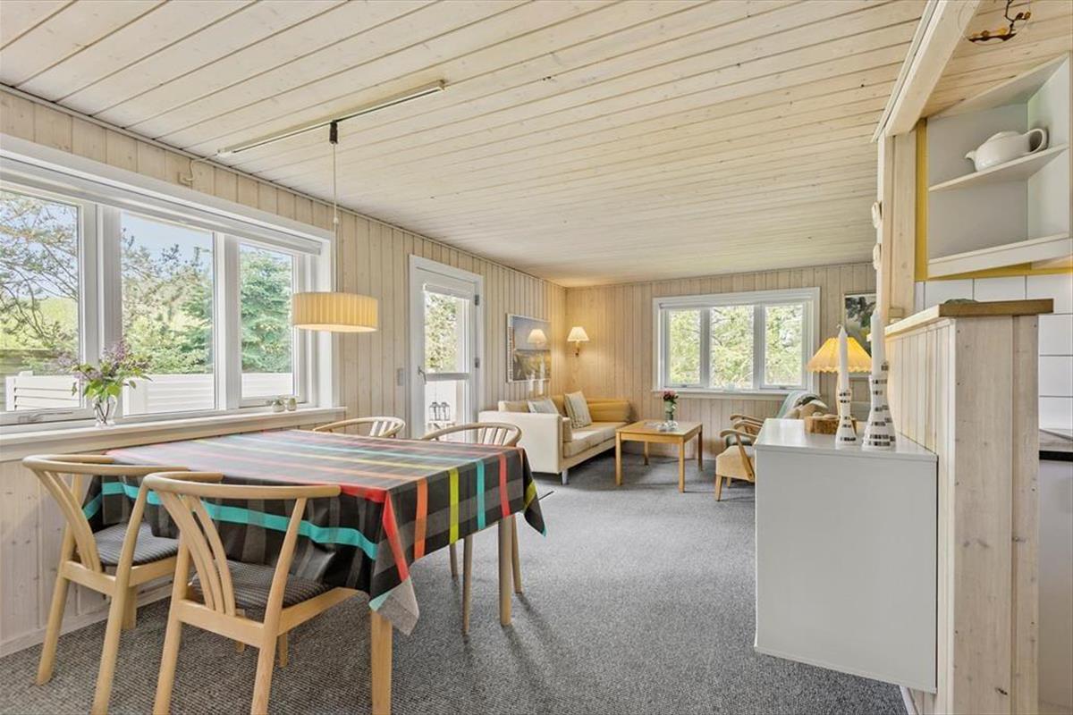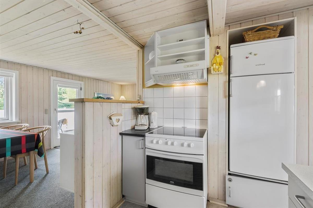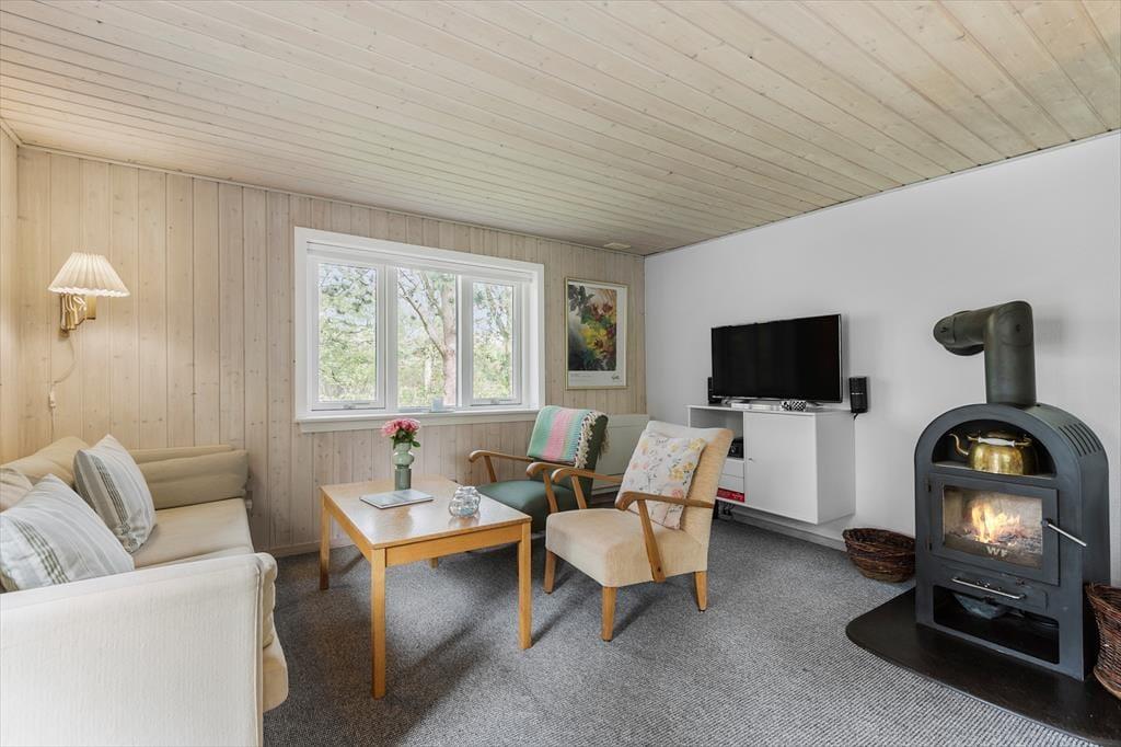 Mit seiner gemütlichen Atmosphäre und guten Raumaufteilung fungiert das Ferienhaus als wunderbare Basis für ein Paar oder eine kleine Familie – und wenn du mit einem Freund Urlaub machen möchtest, um Blåvand und die naturschöne Umgebung zu erleben, ist das ebenfalls gut möglich. Das Haus bietet nämlich zwei gute Schlafzimmer und ein Badezimmer mit Duschkabine, und schließlich gibt es den Wohnraum, in dem das Wohnzimmer und die Küche offen miteinander verbunden sind. Die helle Einrichtung des Wohnzimmers lädt dazu ein, die Tage in Ruhe und Gemütlichkeit zu verbringen, und zentral im Raum steht ein effizienter Kaminofen, der zusammen mit der Wärmepumpe für zusätzliche Wärme und Gemütlichkeit an eventuell kühlen Abenden sorgt.