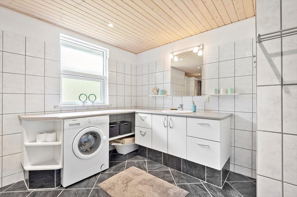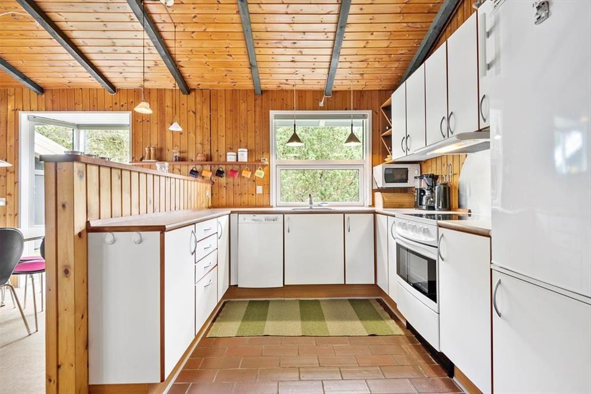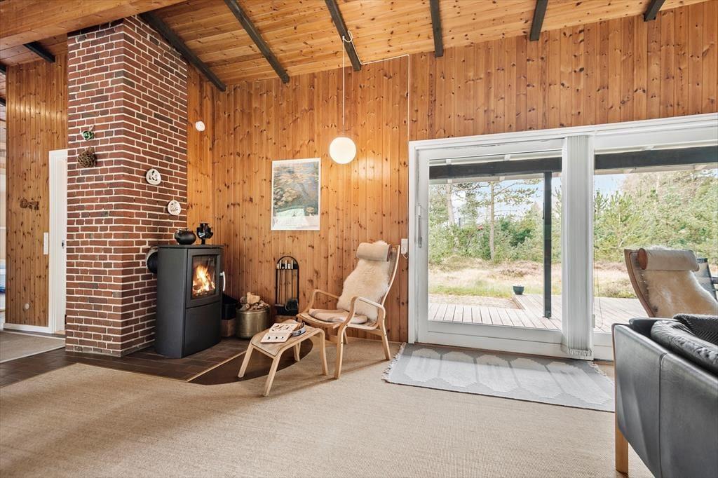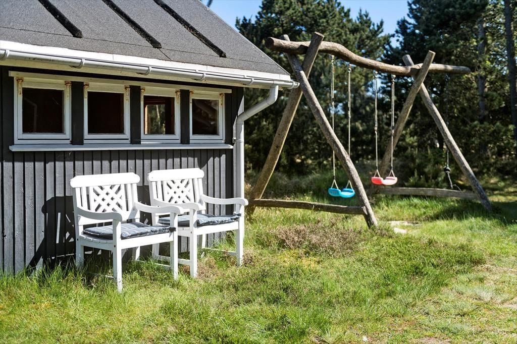 Ein großes, teilweise überdachtes Terrassenareal erstreckt sich östlich und südlich des Ferienhauses. Ganz gleich, ob du mit deiner Familie draußen frühstücken, zu Mittag essen oder den Abend mit einem kühlen Getränk ausklingen lassen möchtest, es ist einfach schön, hier draußen zu sitzen. Deinen Kindern wird es garantiert leichter fallen, sich vom Gartenstuhl auf der Terrasse zu erheben. Es ist daher sehr von Vorteil, dass auf dem Grundstück eine Schaukel, eine Sandkiste und ein Spielhaus bei den Jüngsten für Abwechslung sorgen. Auf dem großen Naturgrundstück laden darüber hinaus Fußballtore zum ein oder anderen familieninternen Match ein. Gern werden deine Kinder außerdem Verstecken spielen und zwischen den Bäumen auf Entdeckungstour gehen. Im Hestehaven 13 erwartet dich zusammenfassend gesagt, eine wahre Oase für die gesamte Familie.