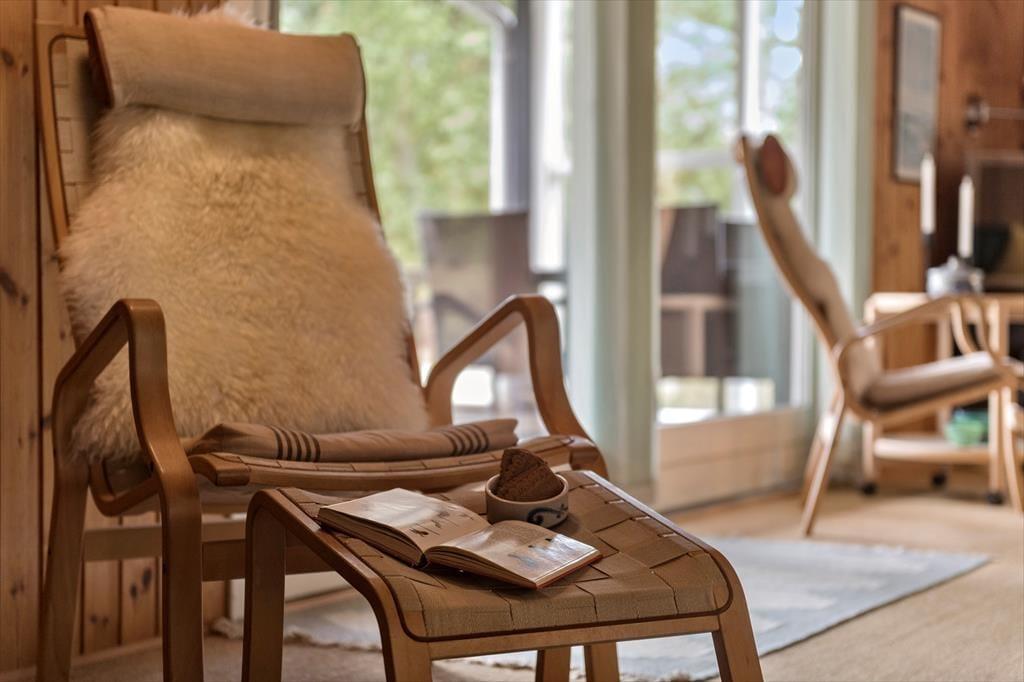 Nicht nur die ansprechende Holzfassade des Ferienhauses fügt sich hervorragend in die idyllische Umgebung ein. Im Innenbereich erwarten dich farblos gestrichene Holzvertäfelungen an den Wänden, hohe Decken sowie ein im Wohnraum platzierter, behaglich knisternder Kaminofen. Klassischer Ferienhauscharme in schönster Form ist dir hier garantiert. Du genießt mit deinen Lieben die Wahl zwischen mehreren ansprechenden Polstersitzgelegenheiten, die zu erholsamen und entspannten Stunden weit abseits der Alltagshektik einladen. Die beiden Sofas und der Esstisch verwöhnen darüber hinaus mit einem schönen Ausblick auf das Naturgrundstück. Nicht selten wirst du vor den Fenstern spielende Eichhörnchen und stolze Fasane beobachten. Das Badezimmer und die drei Schlafräume weisen jeweils eine gute Größe auf. Zu den schönen Details zählt der offene Hängeboden, auf dem deine Kinder garantiert gern lesen und spielen.