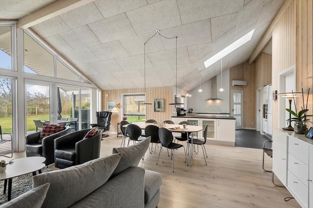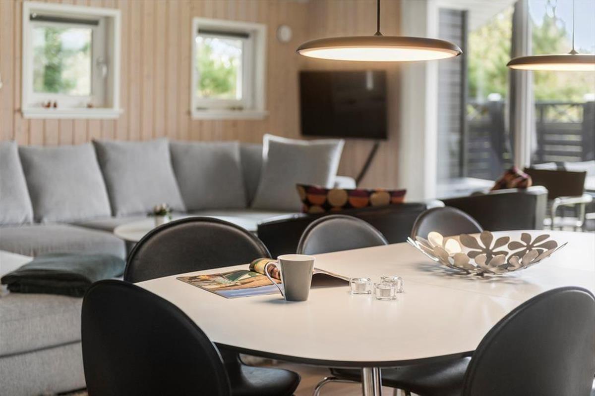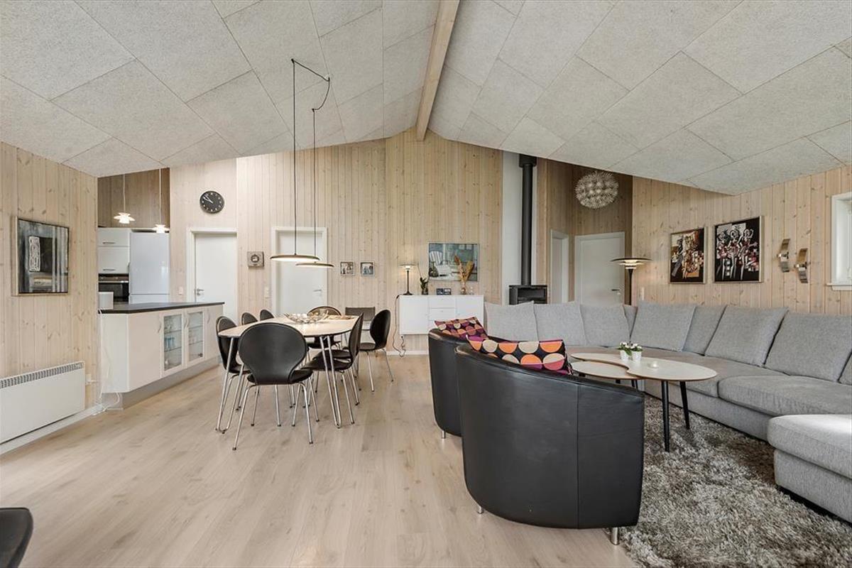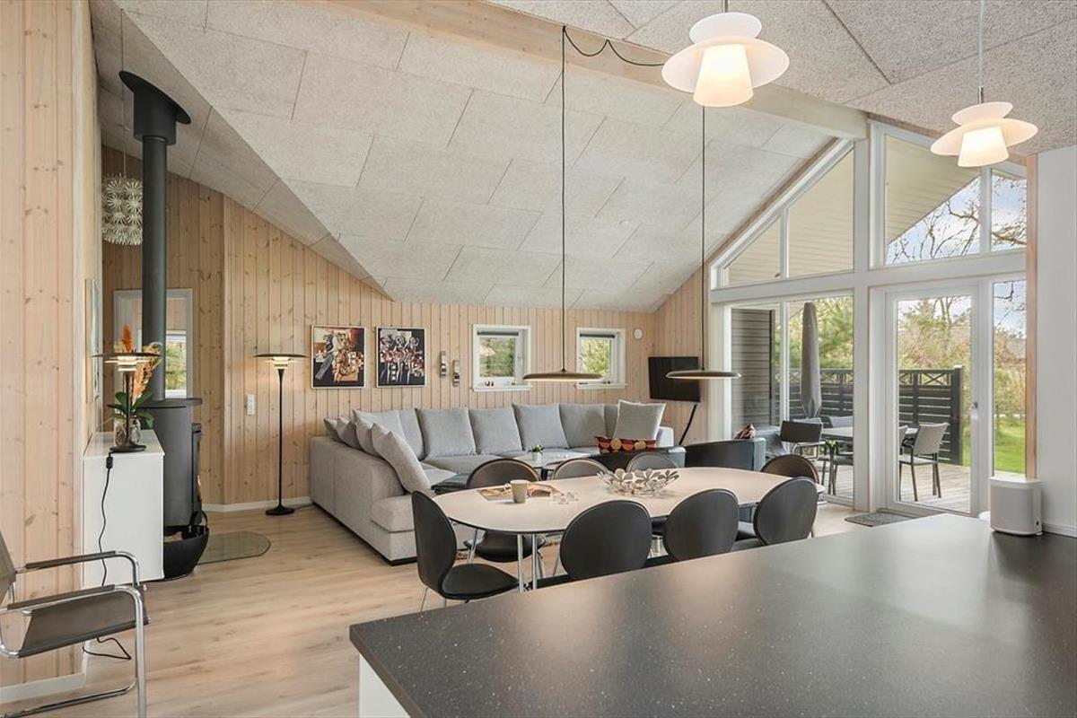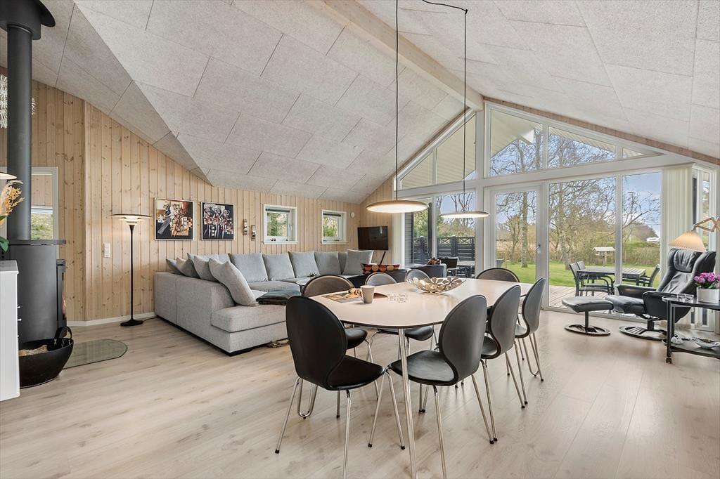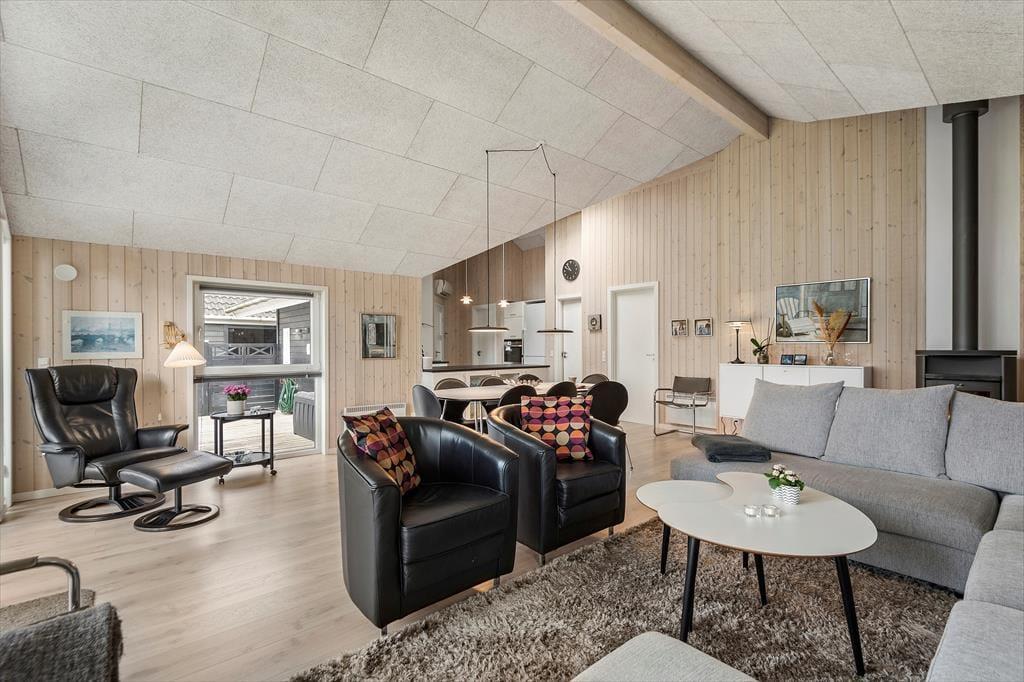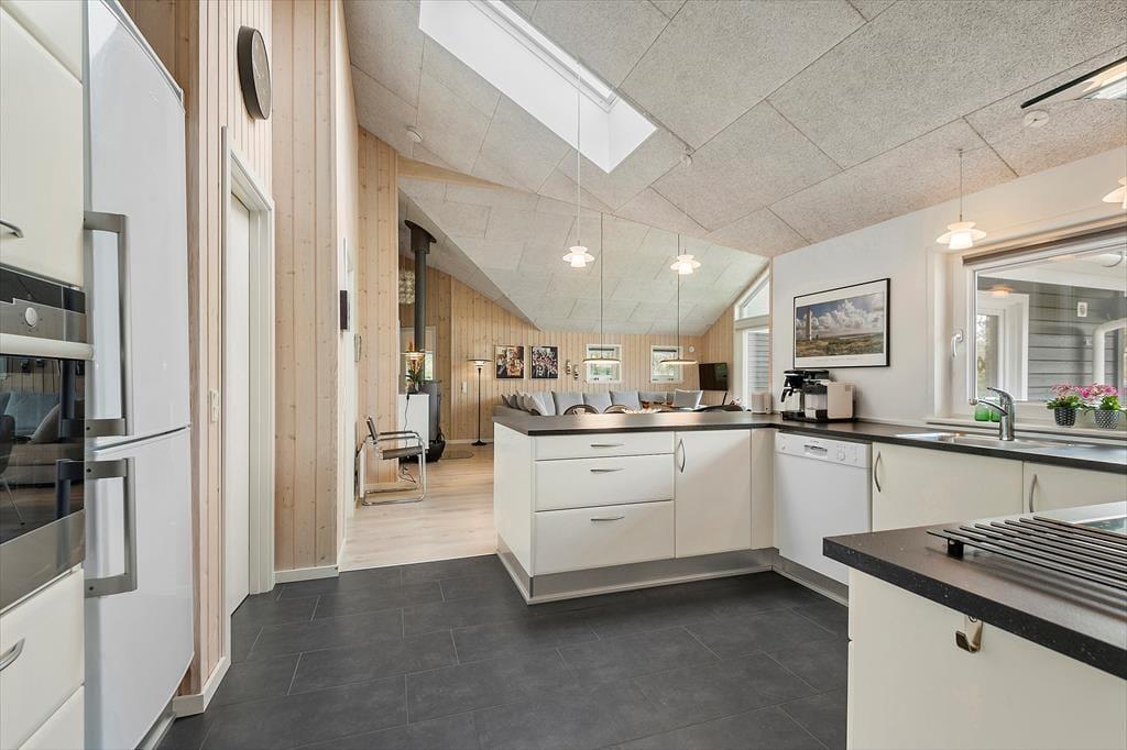 Gern wirst du mit deinem Lieben einen Großteil des Urlaubs im Ferienhaus verleben, in dem gut eingerichtete Räumlichkeiten viel Gemütlichkeit und Entspannung versprechen. Wenn das Kochen zu deinen Hobbys zählt und du die Nähe deiner Familie und angeregte Gespräche in gemütlicher Runde liebst, wirst du dich sehr über den hellen Aufenthaltsbereich freuen, der die Küche und den Wohnraum offen in sich vereint. Die moderne Küche ist geräumig und gut ausgestattet. In der Nähe der Polstersitzgruppe sorgt ein Kaminofen für behagliche Wärme und klassische Ferienhausatmosphäre. Mit seinem Whirlpool und der Sauna lädt das größere der beiden Badezimmer zu traumhaft erholsamen Momenten voller Wellnessflair ein. Nach langen Tagen an der frischen Seeluft, die ihr mit Ausflügen und Outdoor-Aktivitäten krönt, erwarten euch vier Schlafräume, in denen ihr euch so richtig ausschlafen könnt.