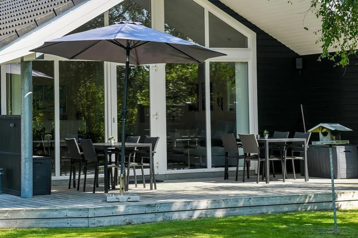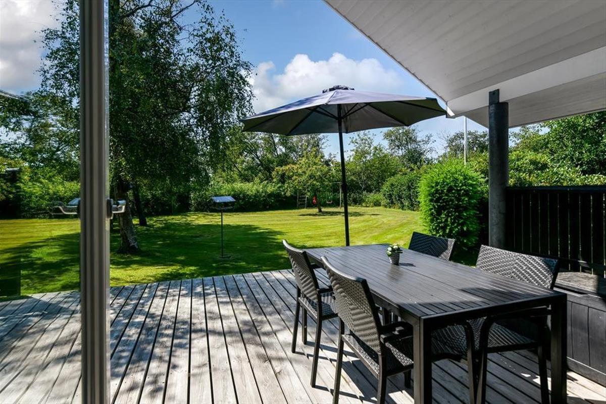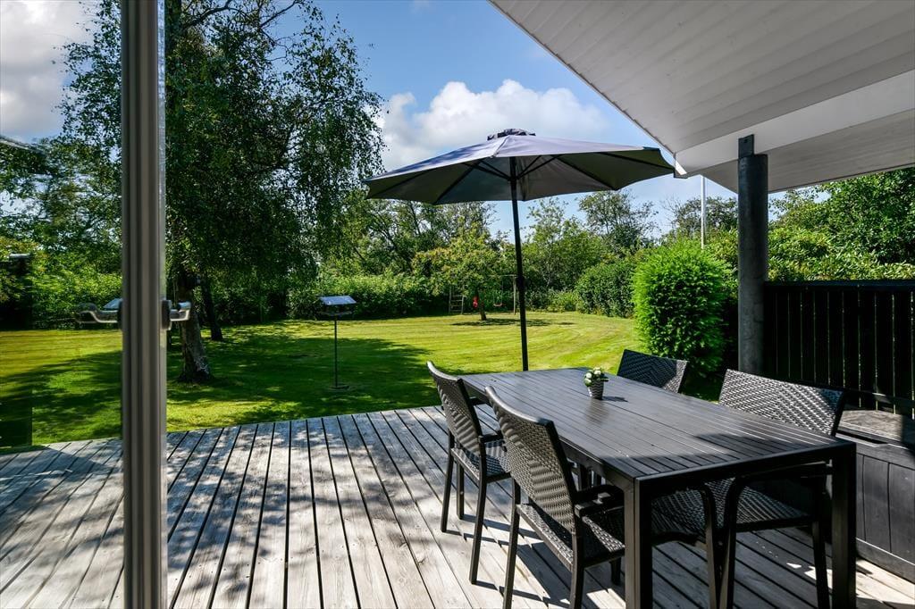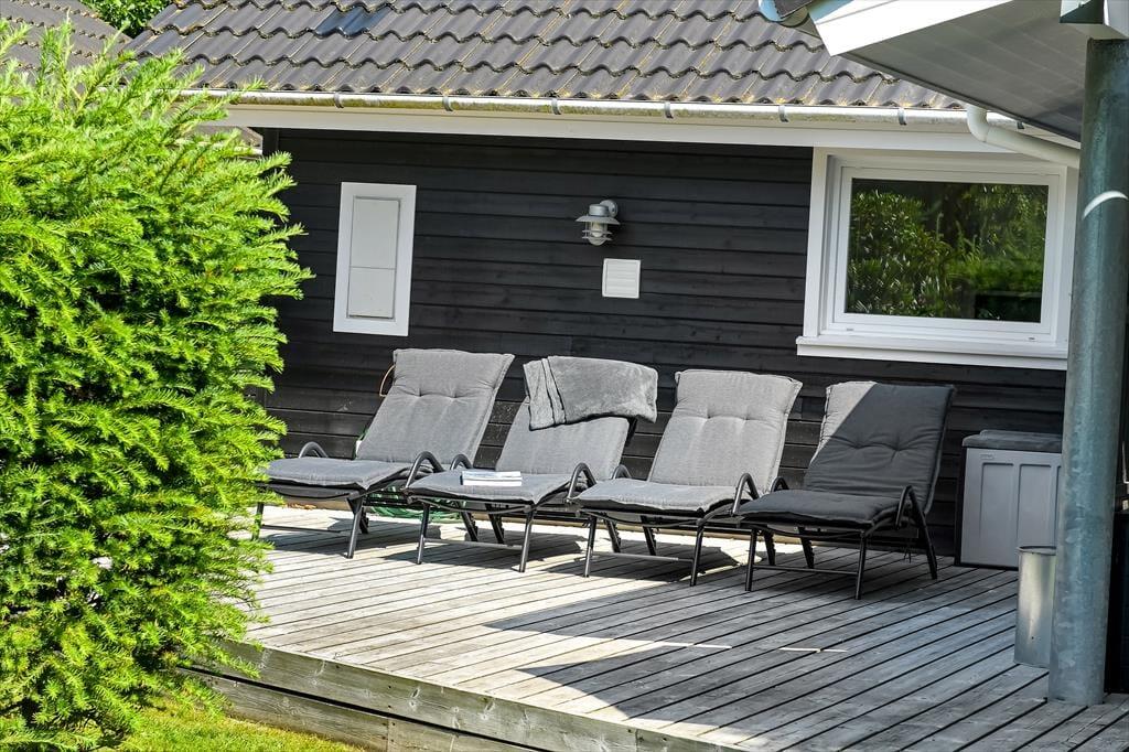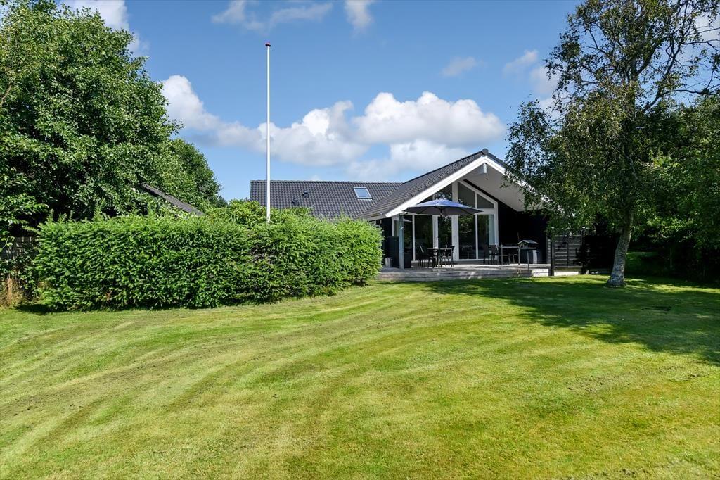 Der Garten präsentiert sich in Form eine wahren Oase, in der sich Groß und Klein gleichermaßen wohlfühlen. Grüne Hecken schirmen die Terrassenareale gut ab und unterteilen das Grundstück in mehrere schöne Bereiche. Deine Kinder werden es lieben, zwischen den Hecken Verstecken zu spielen. Für die kleinen Urlauber stehen darüber hinaus eine Schaukel und ein Spielturm bereit. Während die Kinder spielen, kannst du dich in Ruhe auf dem attraktiven Terrassenareal niederlassen, das mit offenen sowie überdachten Aufenthaltsplätzen zu glänzen weiß. Im nach Süden gerichteten Garten hinter dem Ferienhaus erfreust du dich an richtig viel Sonne. An der anderen Hausseite bietet die Grundstückseinfahrt gute Parkmöglichkeiten.