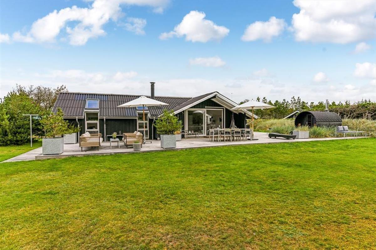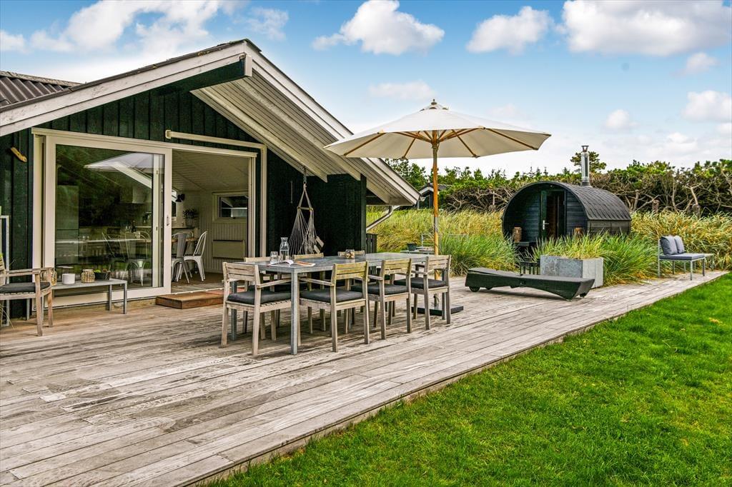 Ein Outdoor-Whirlpool, eine Saunatonne und eine Außendusche fügen sich bei diesem Ferienhaus zu einem perfekten Wellnessbereich zusammen, der deine gesamte Familie zu traumhaft erholsamen Stunden einlädt. Unter freiem Himmel erwartet dich zudem eine große Holzterrasse, auf der du dich auf Liegestühlen von der Sonne verwöhnen lässt und entspannt mit deinen Lieben Mahlzeiten im Freien und gemütliche Grillabende verlebst. Falls euch nach einem guten Essen der Sinn nach ein wenig Bewegung steht, könnt ihr auf eurem eigenen Beachvolleyballplatz sportlich aktiv werden. Bedeutend beschaulicher geht es hingegen rund um die schöne Lagerfeuerstelle zu bei der außerdem eine gute Hängeschaukel/Hängematte bereit steht.