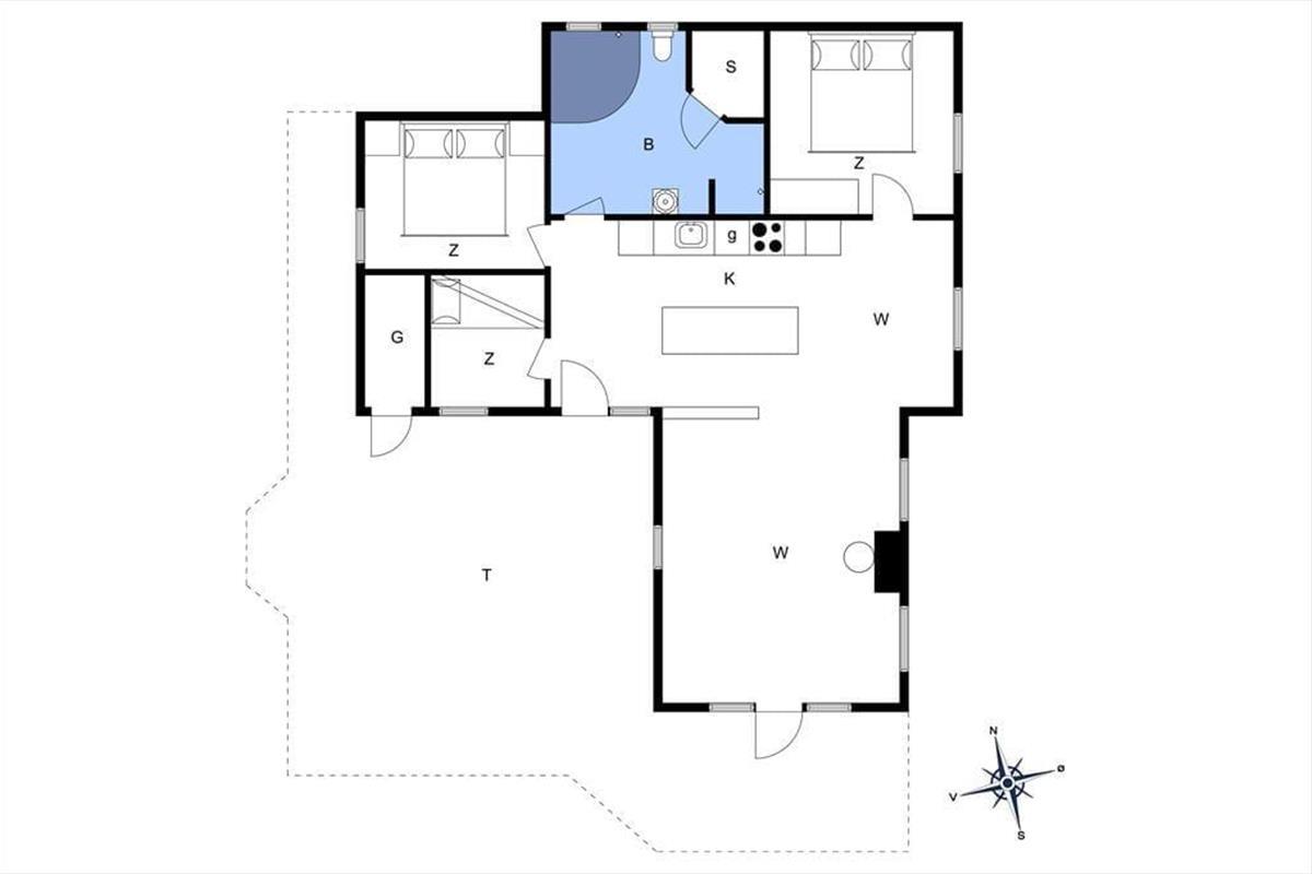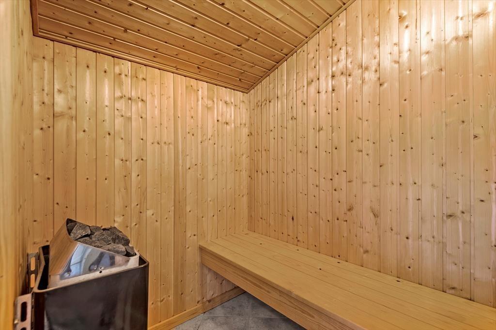 Da das Naturgrundstück leicht hügelig ist, führt dich eine Treppe von der Parkfläche hinauf auf die Terrasse und zum Haus. Die erhöhte Lage ermöglicht dir im Wohnraum einen freien Ausblick über die flache Küstenlandschaft. Stell dir nur vor, wie du es dir vor dem knisternden Kaminofen gemütlich machst und in aller Ruhe die Aussicht genießt. Die offene Küche überzeugt mit besten Arbeitsbedingungen, wodurch die Zubereitung kleiner und großer Köstlichkeiten zum reinen Vergnügen wird. Mit wunderschönen Momenten purer Erholung und Entspannung verwöhnen dich die Sauna und der Whirlpool im Badezimmer. Die Schlafplätze verteilen sich auf drei einladende Schlafräume.