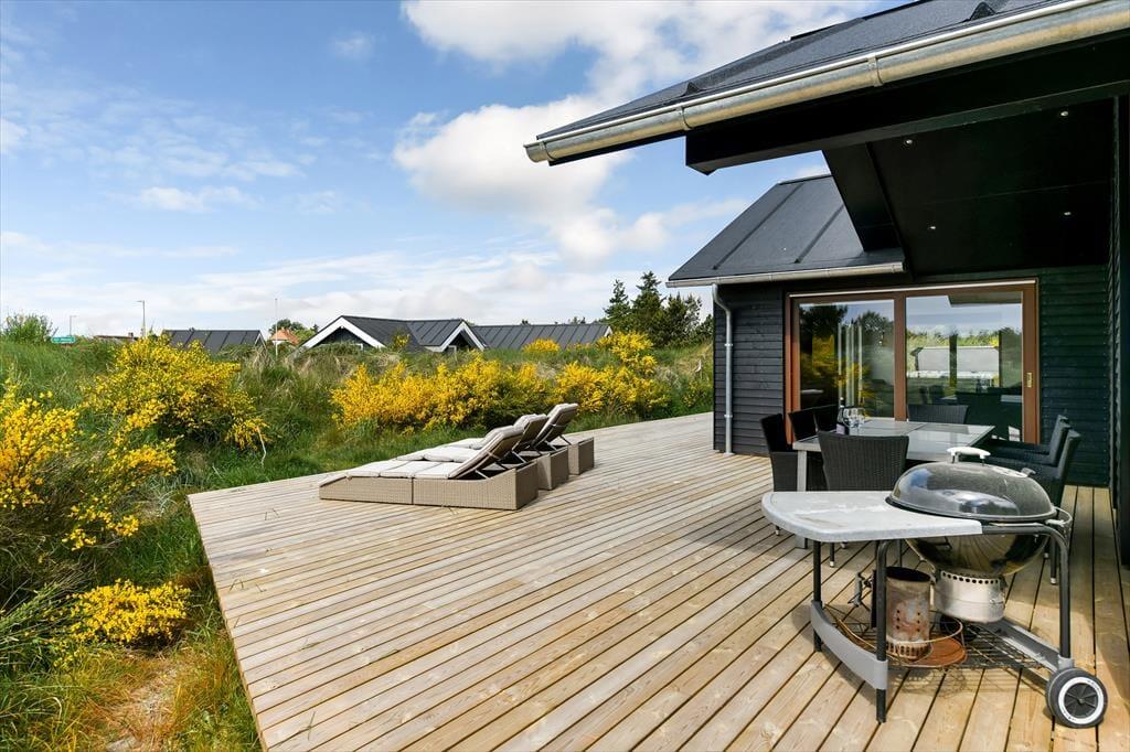Der Außenbereich des Ferienhauses ist eine wahre Oase, in der du das Leben unter freiem Himmel genießen kannst. Die Terrasse ist mit bequemen Gartenmöbeln ausgestattet, sodass du deinen Morgenkaffee in der Sonne trinken oder ein gemütliches Abendessen mit Grillabenden auf dem Programm genießen kannst.