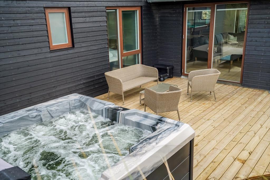 Der Outdoor-Whirlpool ist das i-Tüpfelchen und lädt zu purem Wohlbefinden ein. Hier kannst du dich von den sprudelnden Blasen massieren lassen, während du die Stille und die frische Luft genießt.