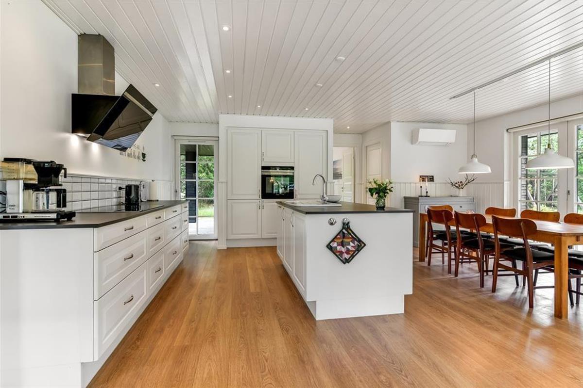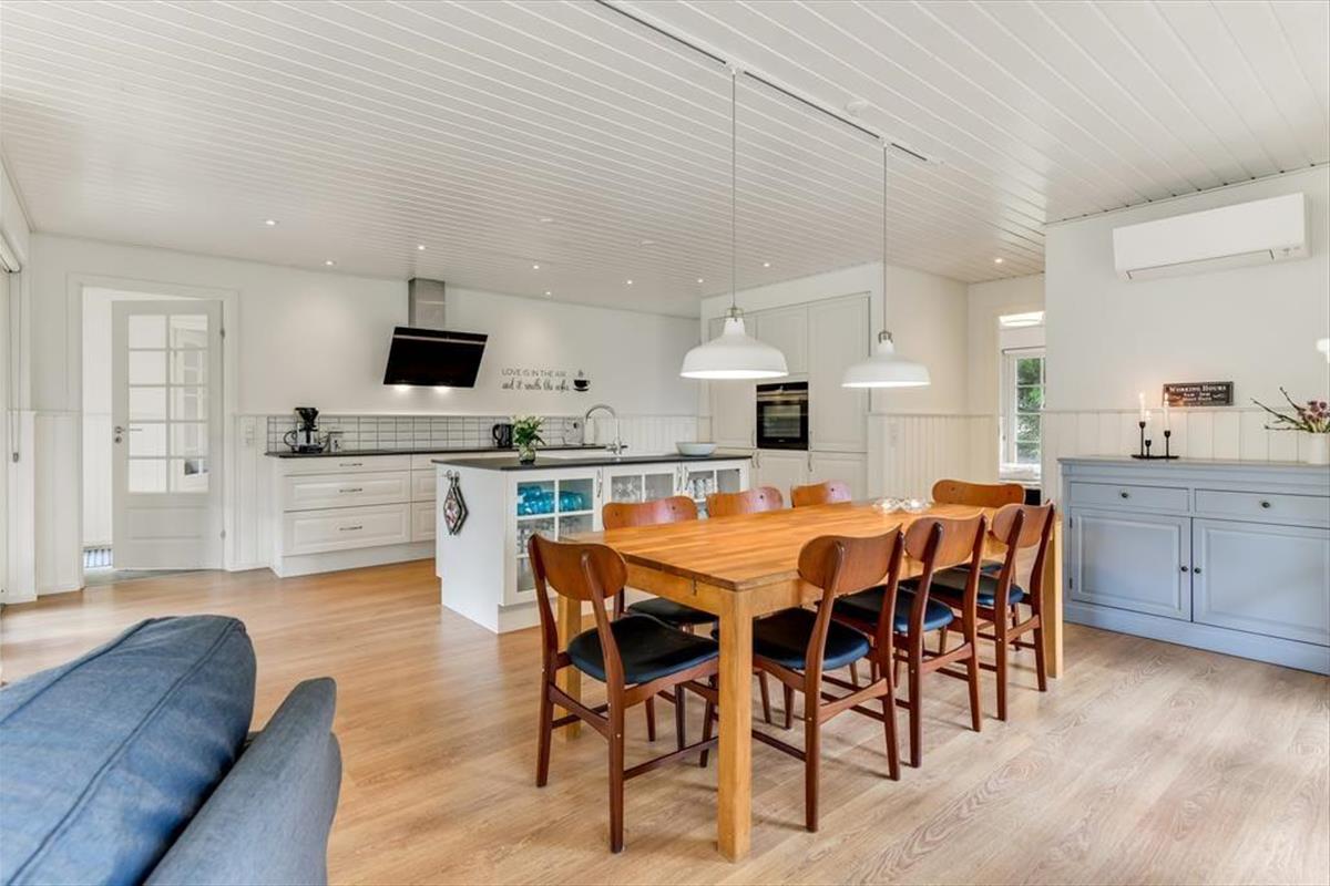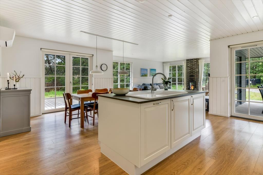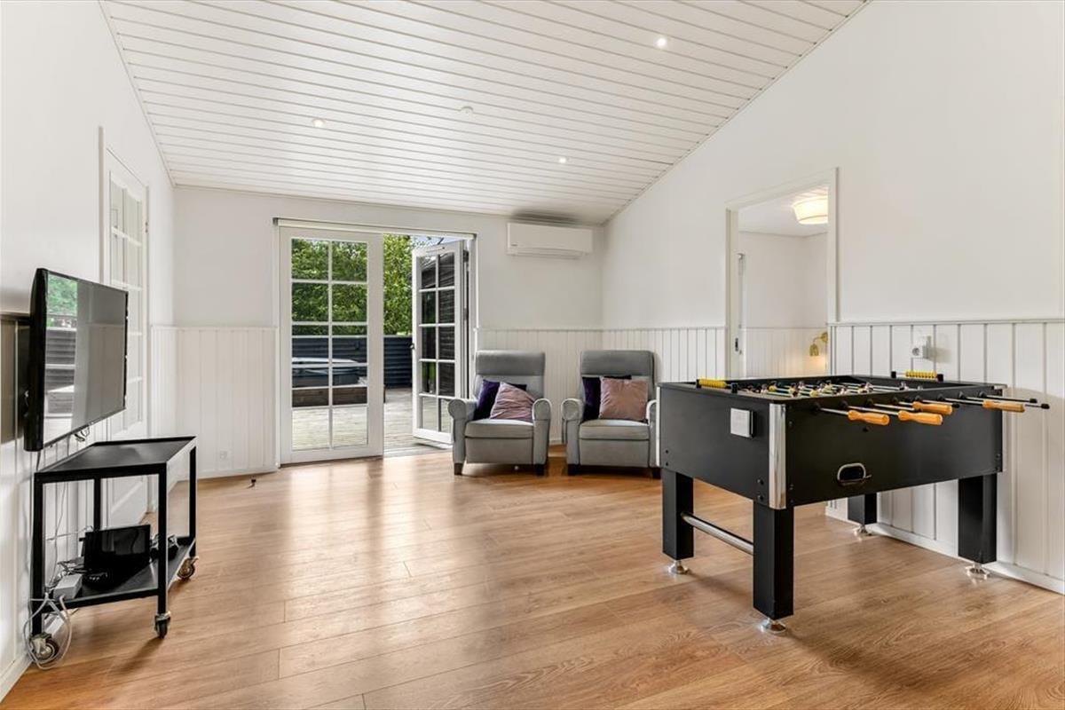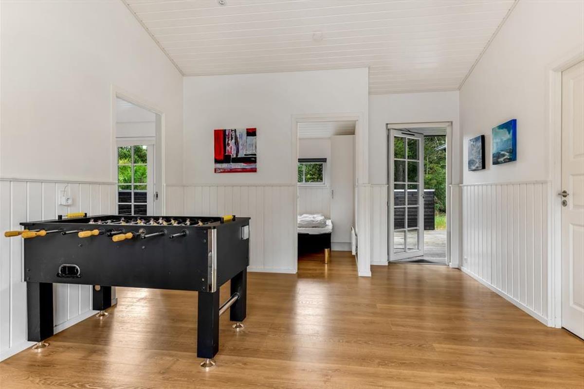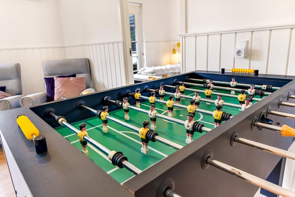 Dieses schöne Ferienhaus auf Karl Postvej 11A in Blåvand bietet viel Platz und Komfort für einen entspannten Urlaub. Das Herz des Hauses ist die große, offene Küche mit Ess- und Wohnbereich, wo Familie und Freunde sich beim Kochen, Essen und gemütlichen Beisammensein versammeln können. Hier gibt es hohe Decken und viel Tageslicht von den großen Fenstern, die eine angenehme und einladende Atmosphäre schaffen. Wenn der Abend hereinbricht, kannst du die Wärme des Kaminofens im geräumigen Wohnzimmer genießen oder dich in eines der komfortablen Schlafzimmer zurückziehen. Für diejenigen, die ein wenig zusätzliche Unterhaltung lieben, ist der Aktivitätsraum ein sicherer Hit. Hier könnt ihr Tischfußball spielen, den Fernseher an eure mitgebrachte Spielkonsole anschließen und viele Erinnerungen mit Lachen und guter Laune schaffen.