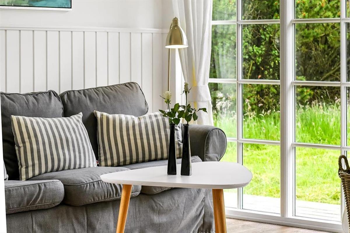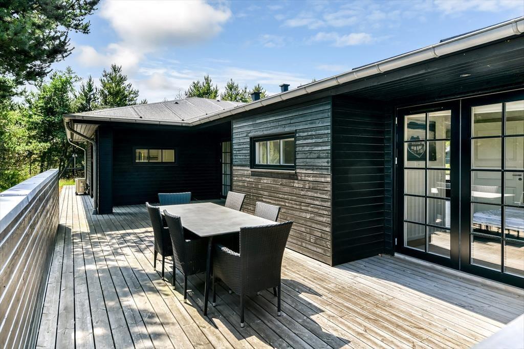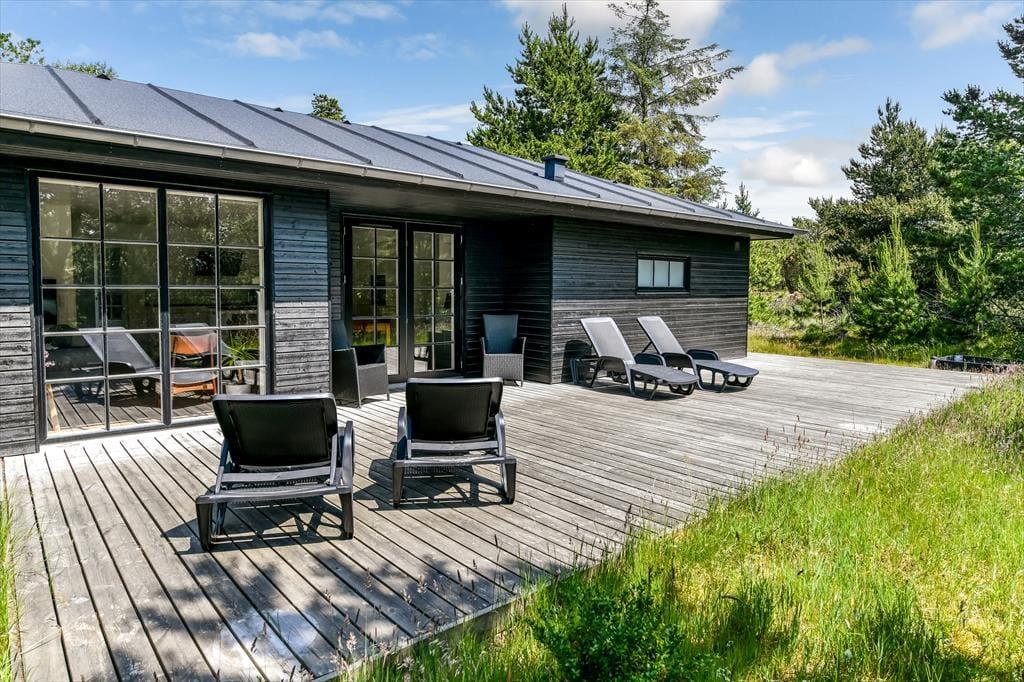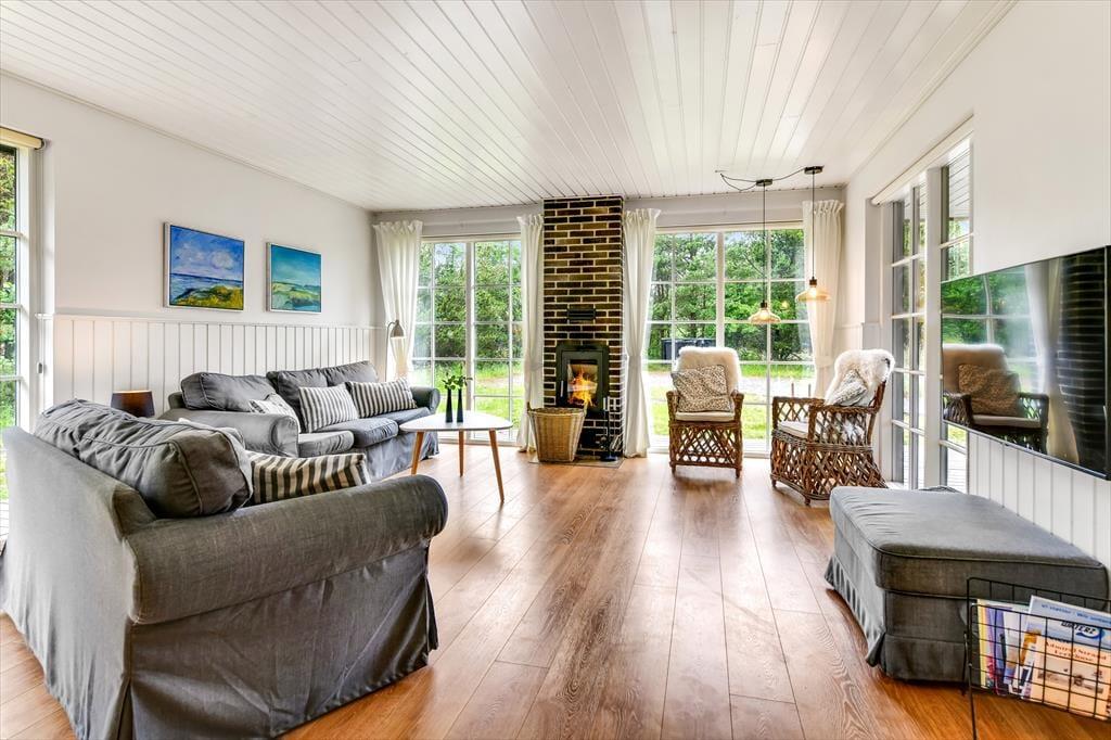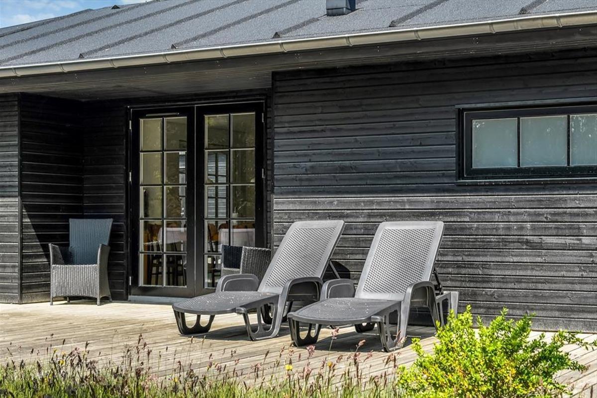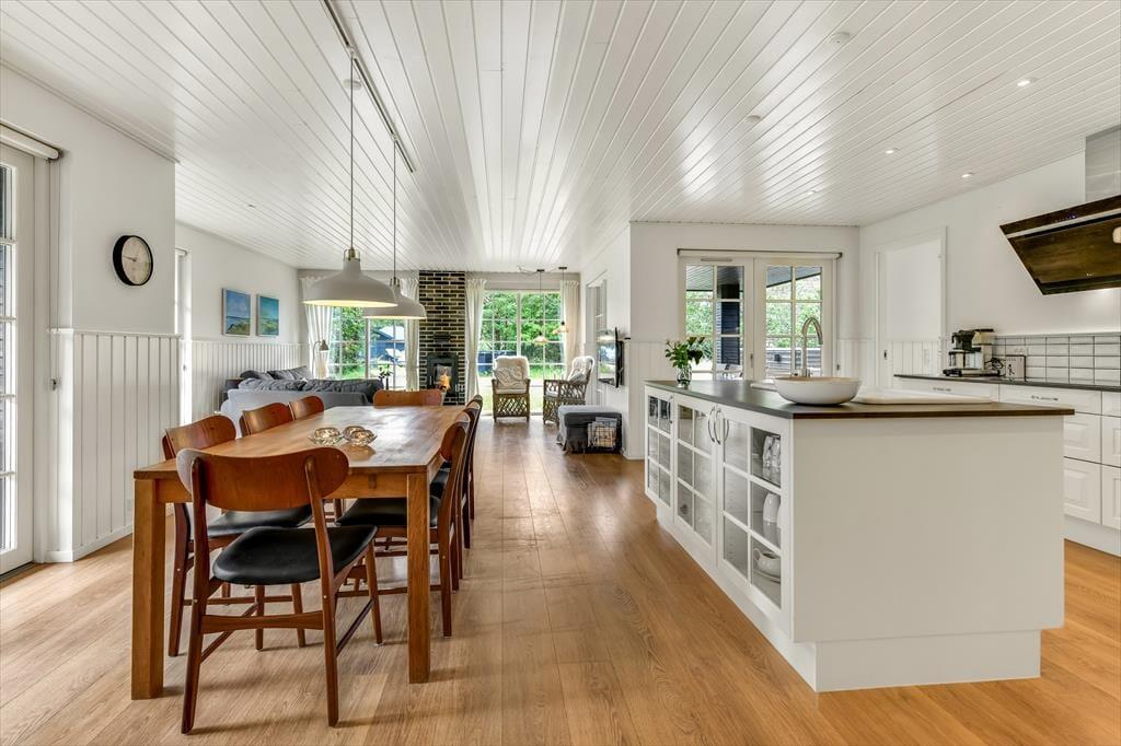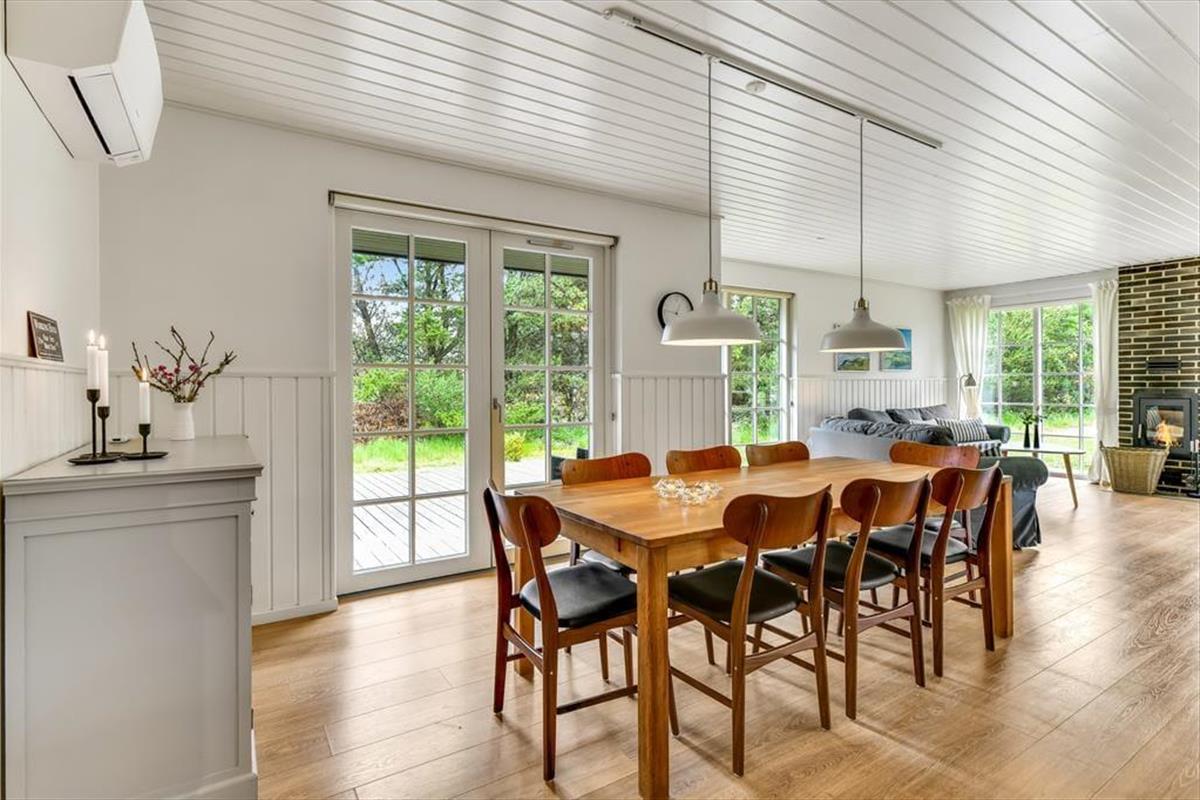 Draußen erwartet dich eine große und schöne Terrasse, die zu vielen Stunden unter freiem Himmel einlädt. Ein Teil der Terrasse ist überdacht, sodass du dich sowohl tagsüber als auch abends draußen aufhalten kannst, unabhängig vom Wetter. Hier kannst du den Grill anfeuern und eine Mahlzeit mit Blick auf die umliegende Natur genießen. Wenn es Zeit für Entspannung wird, kannst du in den großen Außen-Whirlpool eintauchen und die Blasen den Alltagsstress wegmassieren lassen, während du den Sonnenuntergang oder den Sternenhimmel genießt. Der Garten rund um das Ferienhaus ist reich an grünen Umgebungen, wo die Kinder spielen und erkunden können, während die Erwachsenen sich mit einem Buch oder einer Tasse Kaffee entspannen.
