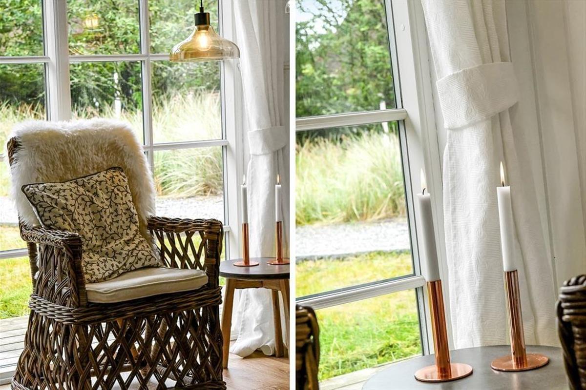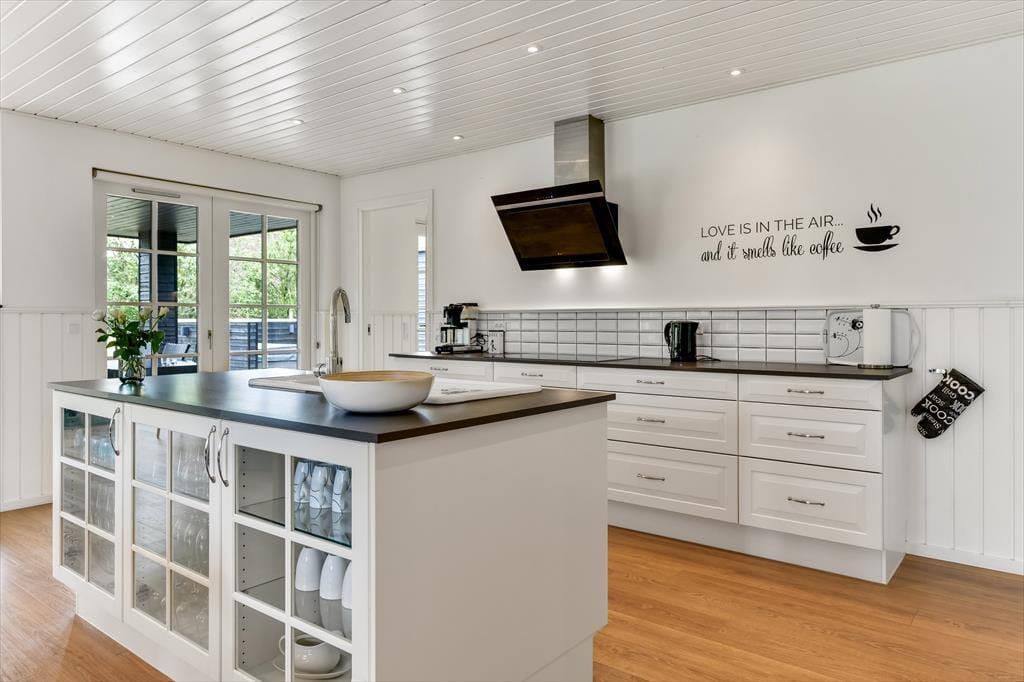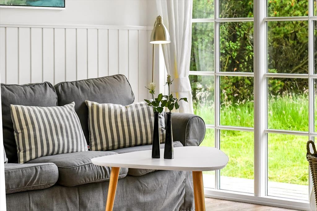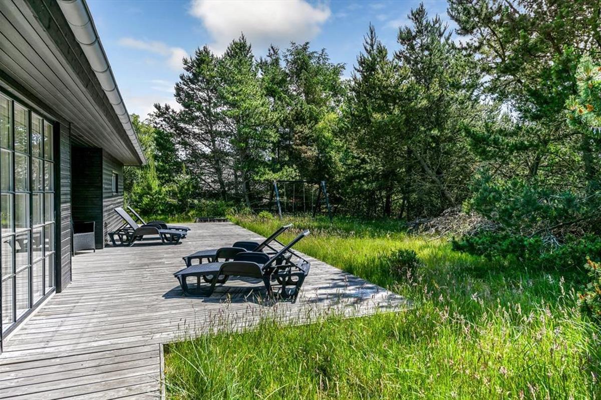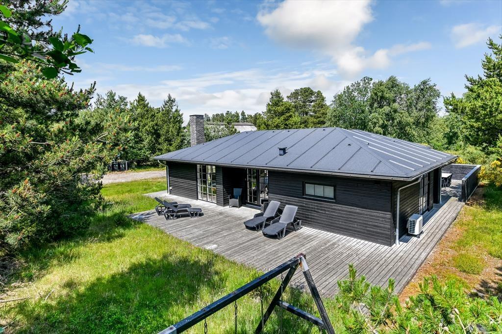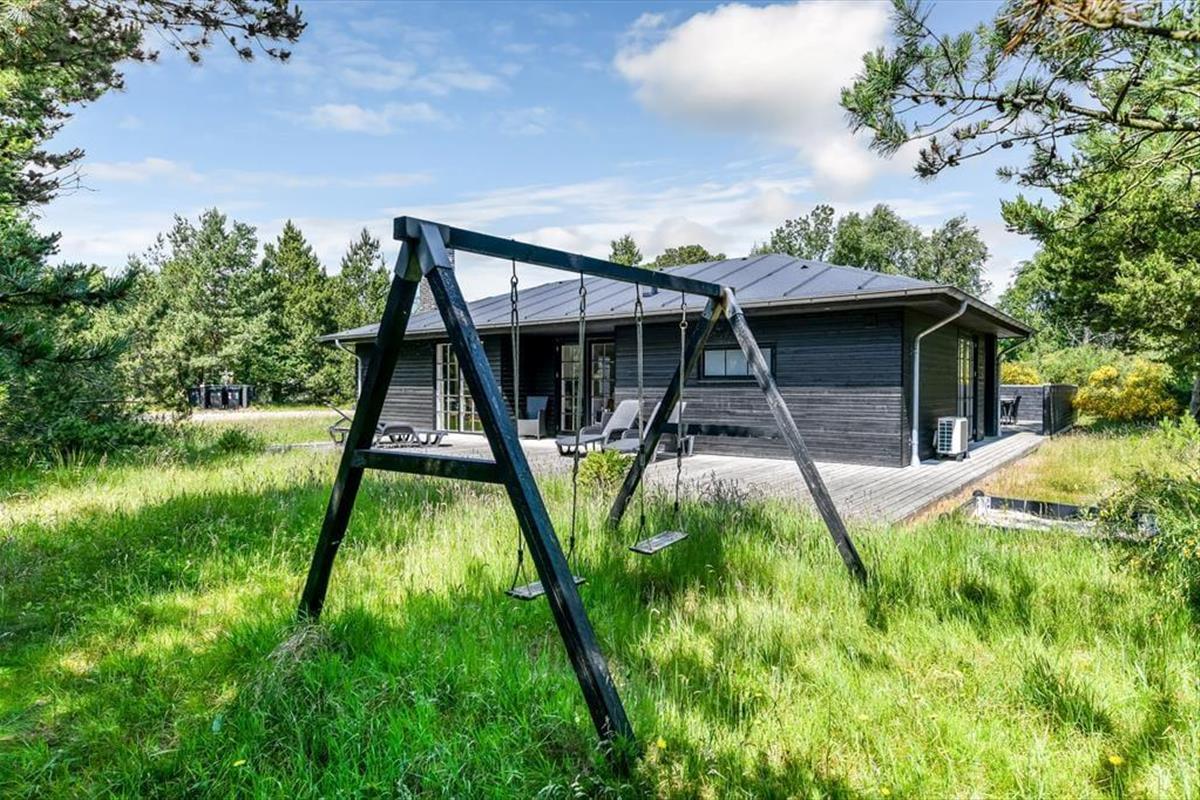 Draußen erwartet dich eine große und schöne Terrasse, die zu vielen Stunden unter freiem Himmel einlädt. Ein Teil der Terrasse ist überdacht, sodass du dich sowohl tagsüber als auch abends draußen aufhalten kannst, unabhängig vom Wetter. Hier kannst du den Grill anfeuern und eine Mahlzeit mit Blick auf die umliegende Natur genießen. Wenn es Zeit für Entspannung wird, kannst du in den großen Außen-Whirlpool eintauchen und die Blasen den Alltagsstress wegmassieren lassen, während du den Sonnenuntergang oder den Sternenhimmel genießt. Der Garten rund um das Ferienhaus ist reich an grünen Umgebungen, wo die Kinder spielen und erkunden können, während die Erwachsenen sich mit einem Buch oder einer Tasse Kaffee entspannen.