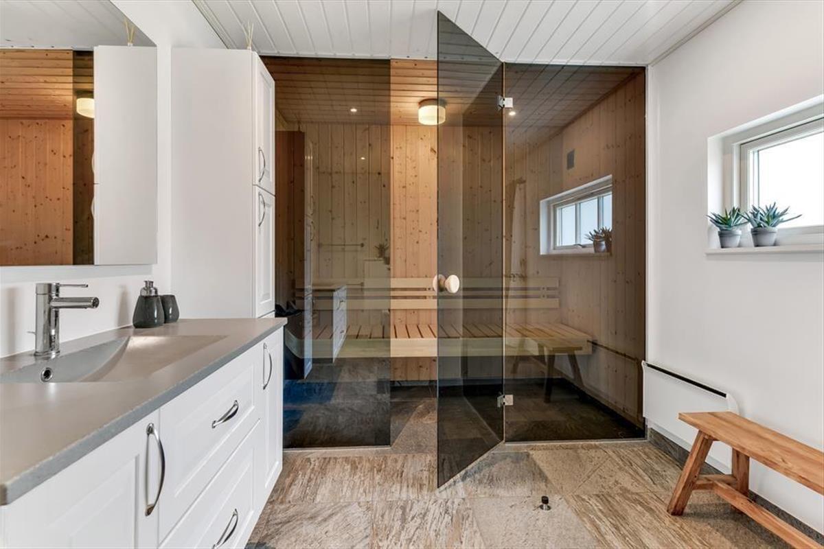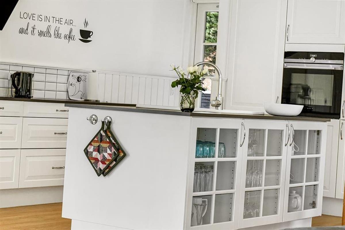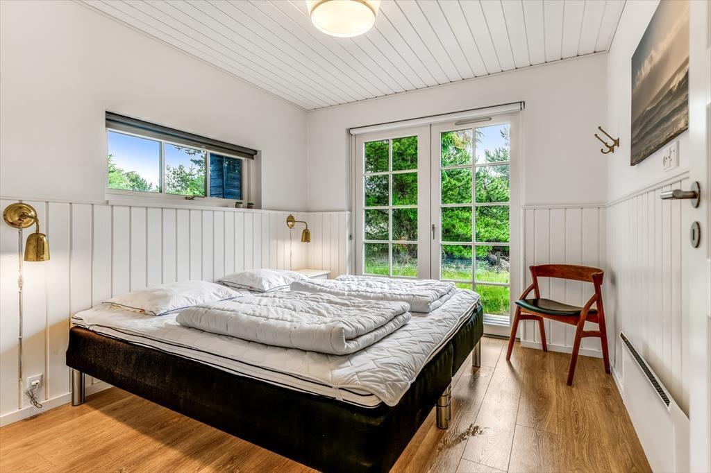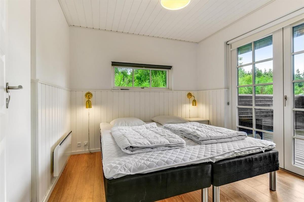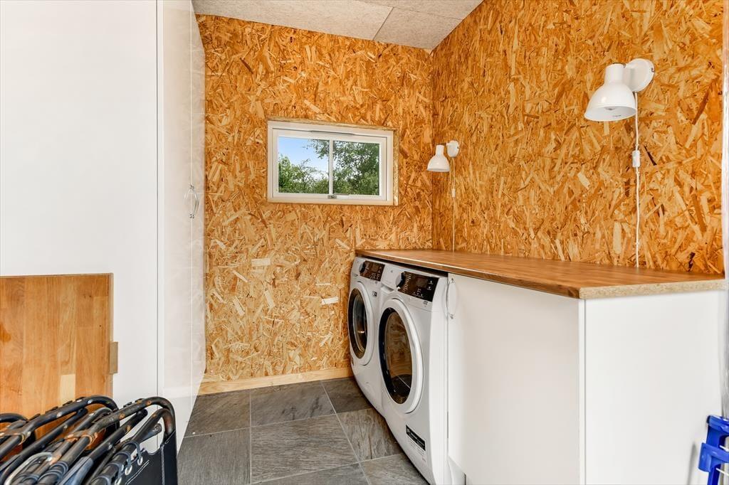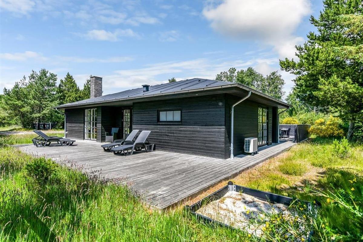 Draußen erwartet dich eine große und schöne Terrasse, die zu vielen Stunden unter freiem Himmel einlädt. Ein Teil der Terrasse ist überdacht, sodass du dich sowohl tagsüber als auch abends draußen aufhalten kannst, unabhängig vom Wetter. Hier kannst du den Grill anfeuern und eine Mahlzeit mit Blick auf die umliegende Natur genießen. Wenn es Zeit für Entspannung wird, kannst du in den großen Außen-Whirlpool eintauchen und die Blasen den Alltagsstress wegmassieren lassen, während du den Sonnenuntergang oder den Sternenhimmel genießt. Der Garten rund um das Ferienhaus ist reich an grünen Umgebungen, wo die Kinder spielen und erkunden können, während die Erwachsenen sich mit einem Buch oder einer Tasse Kaffee entspannen.