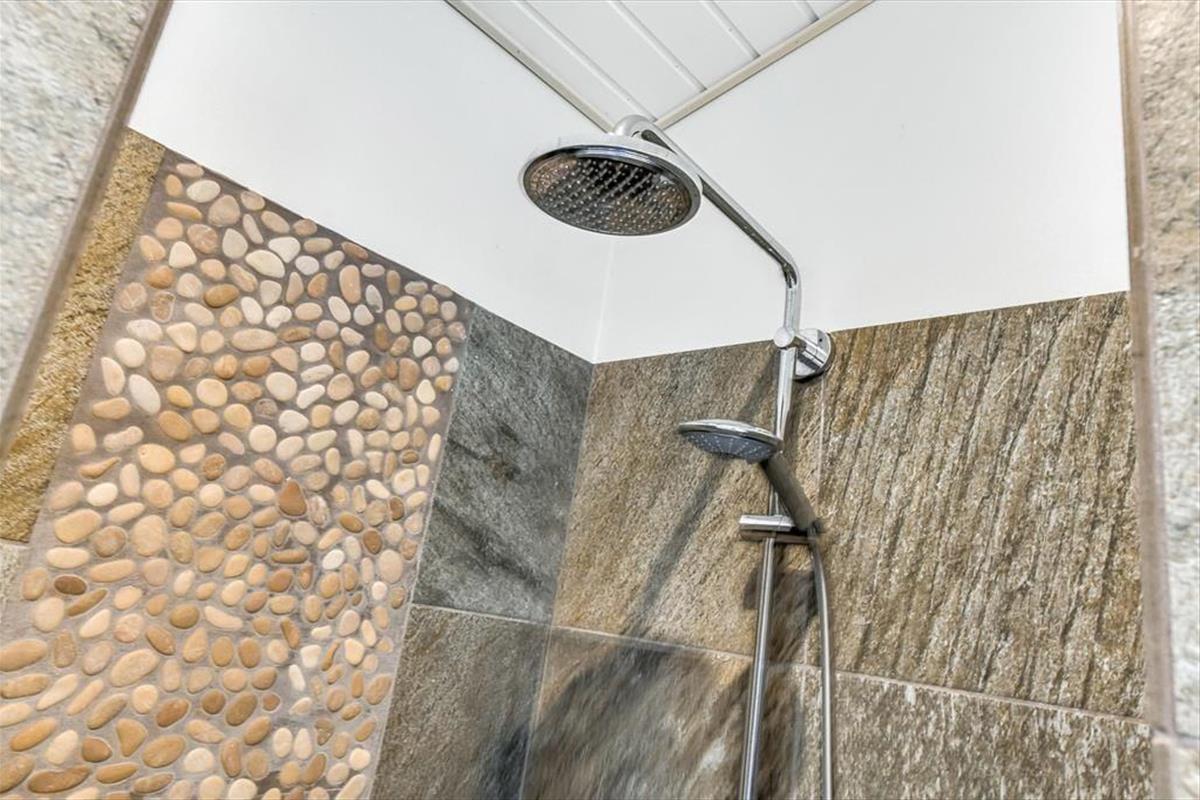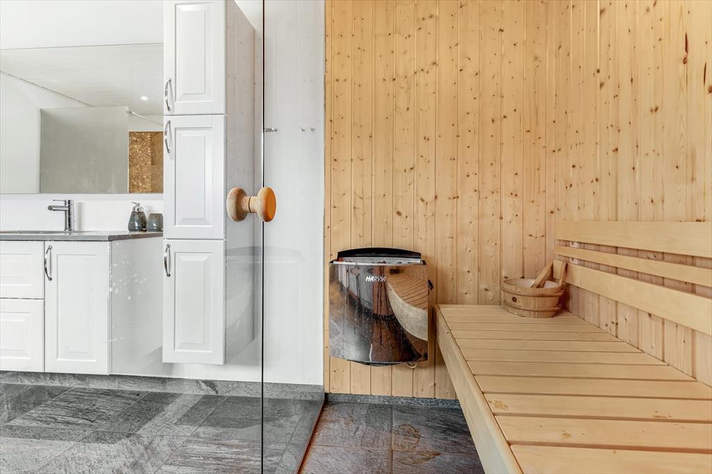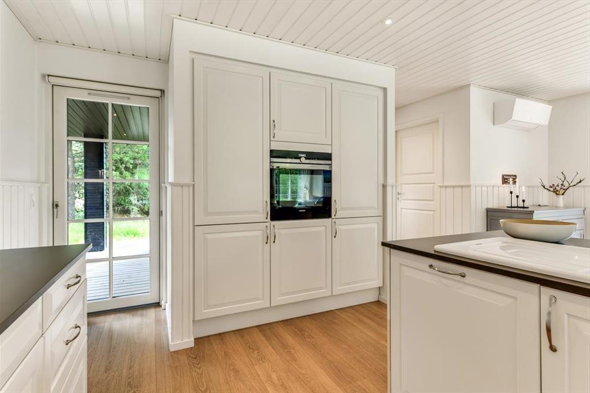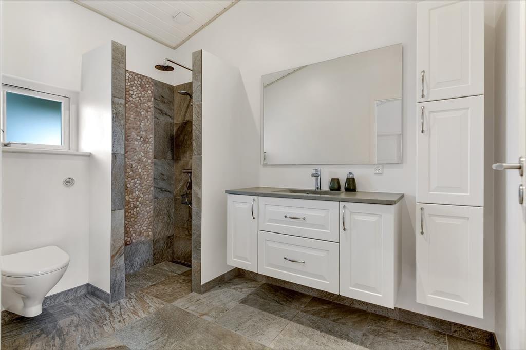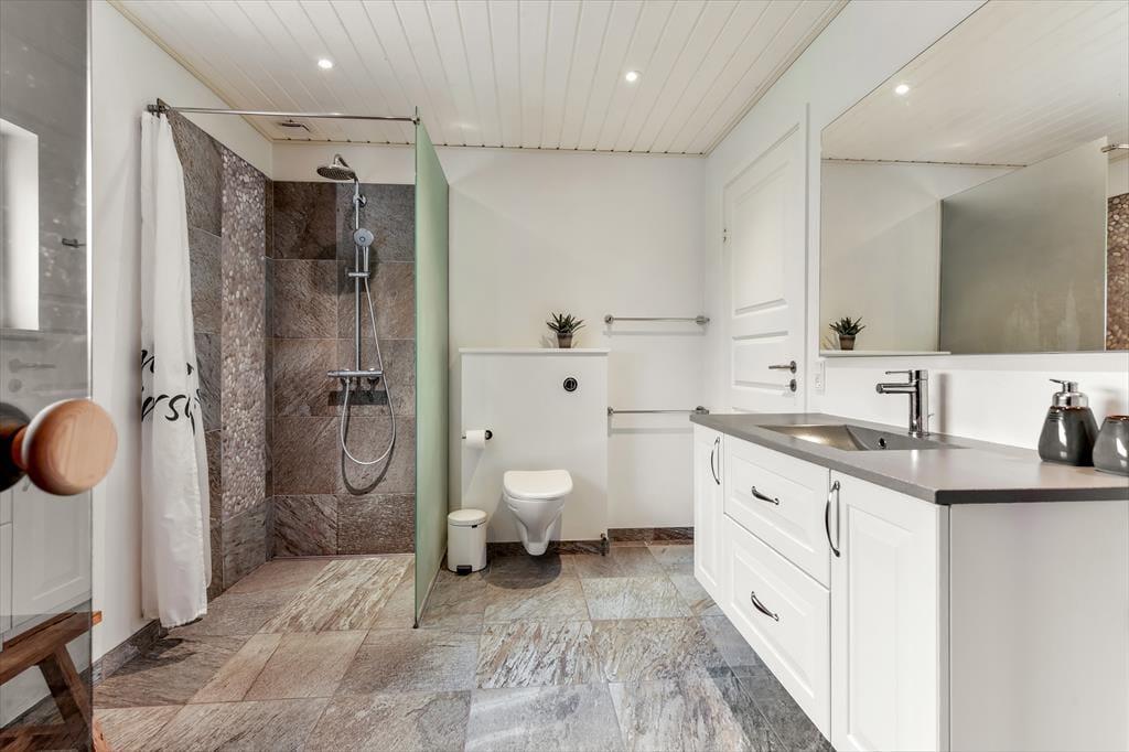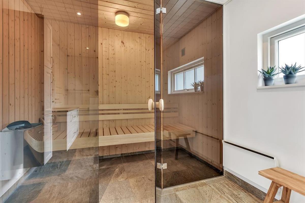 Draußen erwartet dich eine große und schöne Terrasse, die zu vielen Stunden unter freiem Himmel einlädt. Ein Teil der Terrasse ist überdacht, sodass du dich sowohl tagsüber als auch abends draußen aufhalten kannst, unabhängig vom Wetter. Hier kannst du den Grill anfeuern und eine Mahlzeit mit Blick auf die umliegende Natur genießen. Wenn es Zeit für Entspannung wird, kannst du in den großen Außen-Whirlpool eintauchen und die Blasen den Alltagsstress wegmassieren lassen, während du den Sonnenuntergang oder den Sternenhimmel genießt. Der Garten rund um das Ferienhaus ist reich an grünen Umgebungen, wo die Kinder spielen und erkunden können, während die Erwachsenen sich mit einem Buch oder einer Tasse Kaffee entspannen.