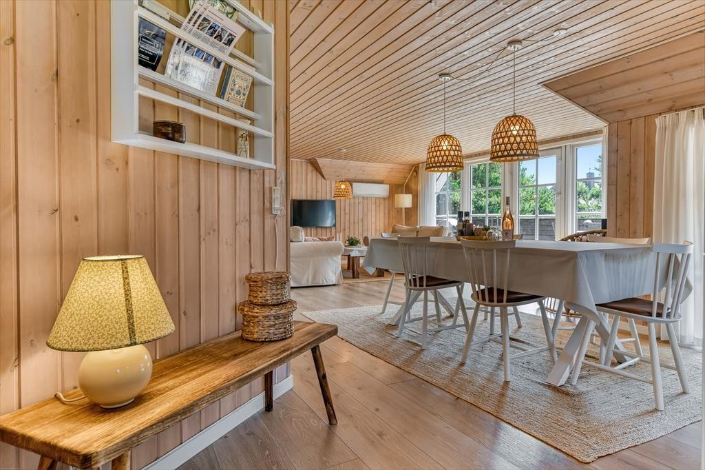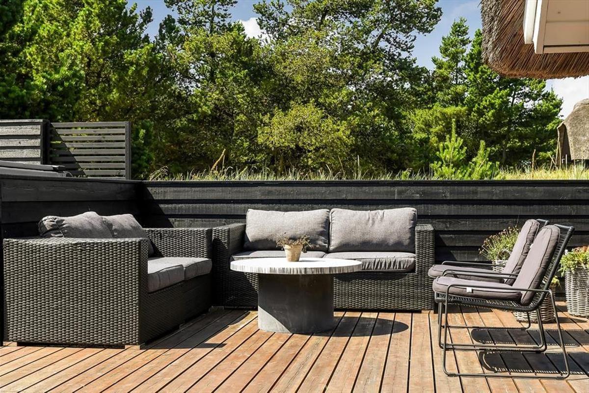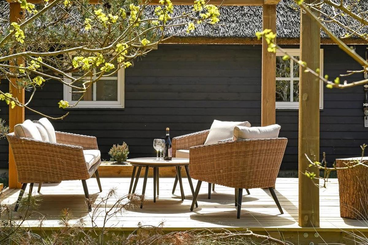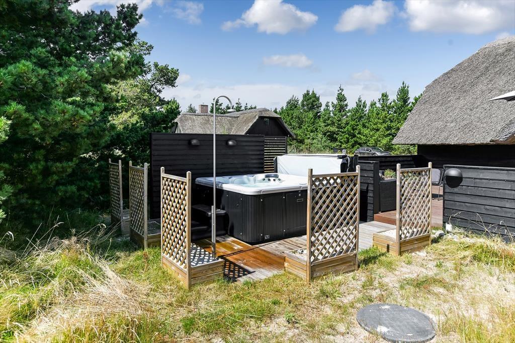 Wenn du dich für dieses bezaubernde Reetdachferienhaus in Blåvand entscheidest, darfst du dich auf viele Indoor- und Outdoor-Wellnessstunden freuen! Das Haus, das ruhig in einer Sackgasse platziert ist, verwöhnt mit einem Whirlpool und einer Sauna im größeren Badezimmer und mit einem zusätzlichen Whirlpool draußen auf der Terrasse. Am hübschen Wohnraum und an den beiden Schlafräumen ist ebenfalls sofort erkennbar, dass der Hauseigentümer keinerlei Mühe gescheut hat, einen richtig schönen, entspannten Rahmen für seine Gäste zu schaffen.