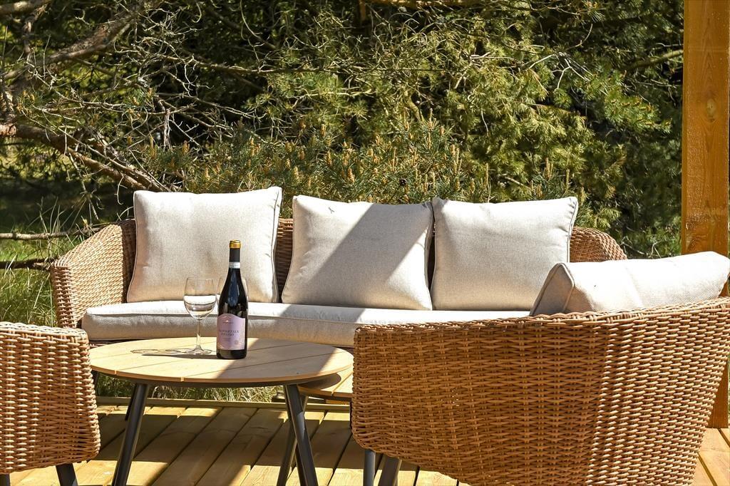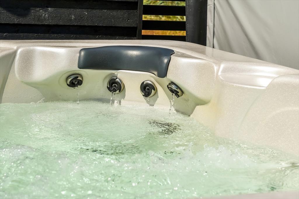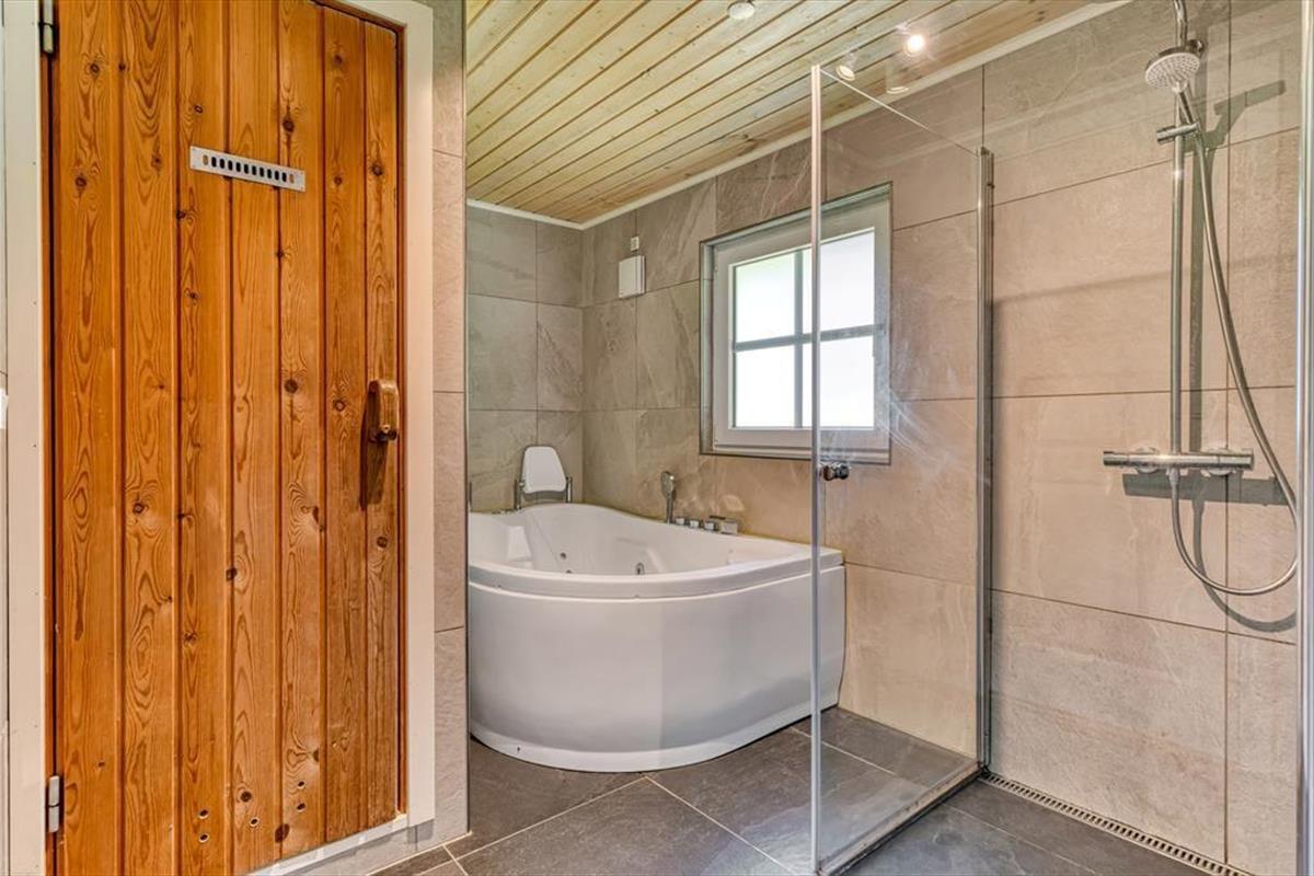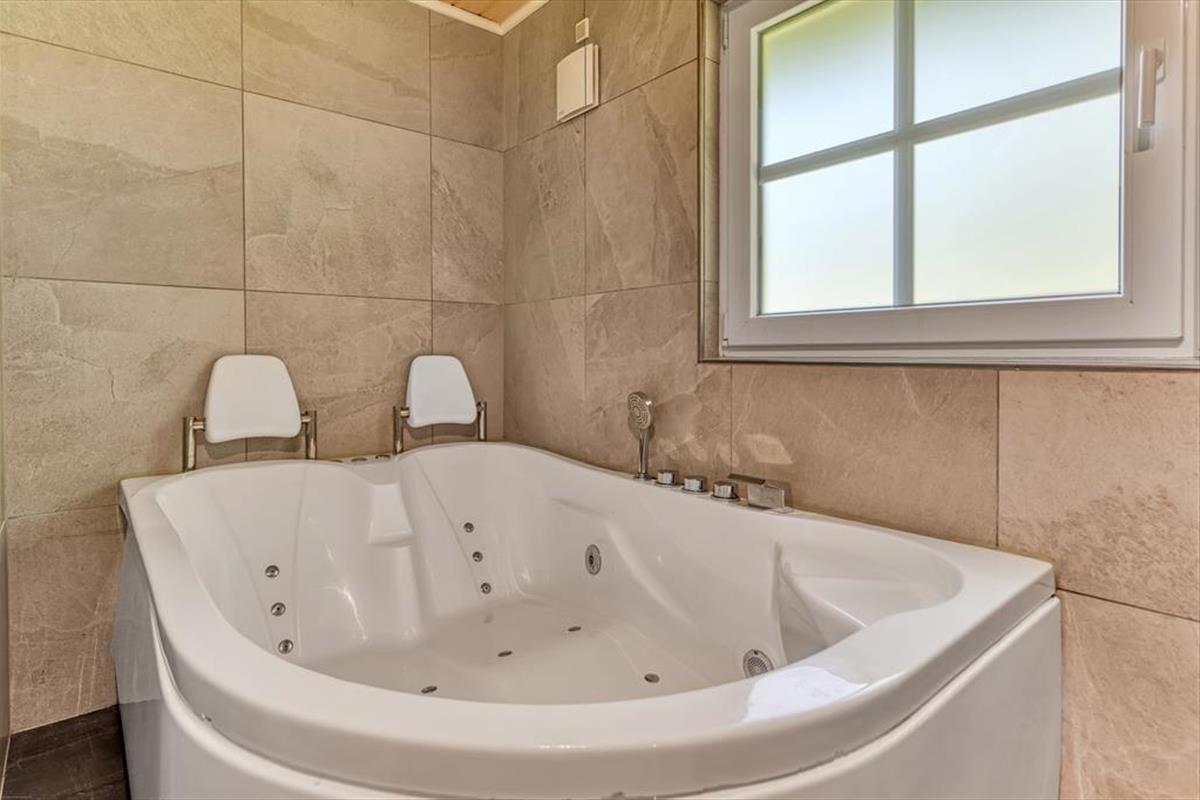 Das Naturgrundstück bietet dir beste Möglichkeiten, die Sonne zu genießen und es dir mit einem frischen Becher Kaffee im Schatten auf einem guten Gartenstuhl gemütlich zu machen. Die Holzterrasse ist gut zur Sonne hin ausgerichtet. Sie ist angenehm groß und bietet Platz für die Sonnenliegen, den Gartentisch und die Loungemöbel. Auf der angrenzenden gepflasterten Terrasse stehen eine Außendusche und ein Outdoor-Whirlpool bereit. Letztgenannter ist einfach über Tastendruck befüllbar und beheizbar, sodass du dich völlig unkompliziert nach Herzenslust in ruhiger Umgebung, sogar unter dem funkelnden Sternenhimmel, entspannen kannst. Die Grasfläche animiert dich und deine Familie zu gemeinsamen Gartenspielen. Auf der gepflasterten Parkfläche kannst du ohne Weiteres zwei Pkws abstellen.