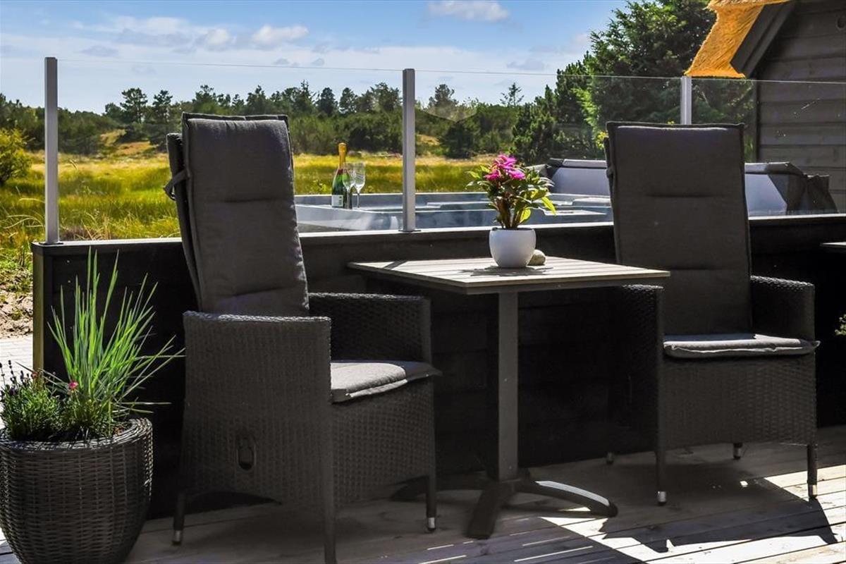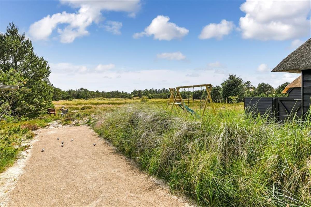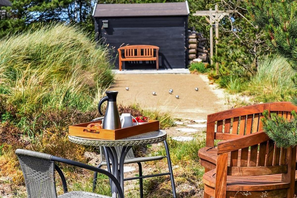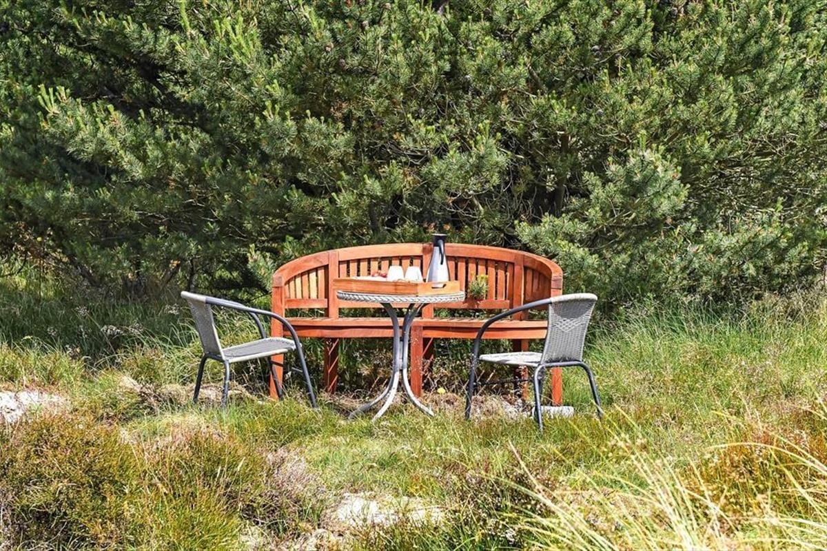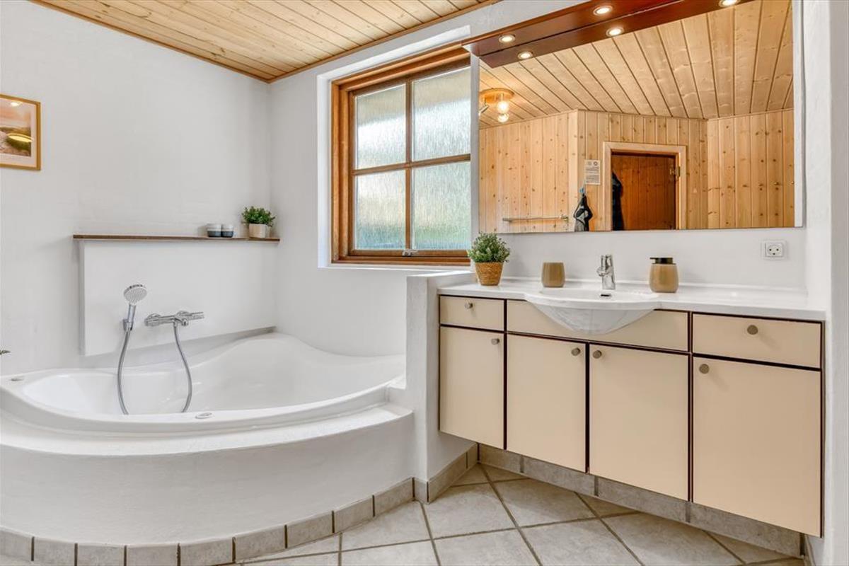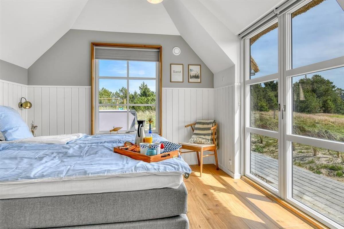 Das Ferienhaus ist der Inbegriff eines dänischen Sommerurlaubs in einem gemütlichen und traditionsreichen Holzhaus mit Reetdach. Es gibt helle Wände und Decken sowie schöne Holzböden. Alle Ecken im Haus sind vollständig genutzt. Das Haus hat im Gemeinschaftsraum eine hohe Decke, der ein gut eingerichtete und gut ausgestattete Küche mit Essbereich und ein Wohnzimmer mit Kamin und bequemen Sitzmöbeln bietet. Der Gemeinschaftsraum ist ein perfekter Treffpunkt für Freunde und Familie, mit reichlich Gelegenheit für Familiengemütlichkeit. Das Haus hat 2 große Dachböden mit voller Stehhöhe. Hier kann man sich zurückziehen und erholen, aber dennoch dem Geschehen folgen. Einer der Dachböden ist für Kinderaktivitäten eingerichtet, mit Smart-TV für Filme und Gaming, Sitzsack sowie Liege- und Spielbereich. Im Erdgeschoss gibt es 2 helle Schlafzimmer mit guten Betten. Das Haus verfügt auch über eine Sauna und einen Innenwhirlpool. Es gibt ein 25 m² großes Nebengebäude mit einem Schlafzimmer und einem Badezimmer. Vom Nebengebäude aus kannst du die Naturaussicht aus der Badewanne genießen. Draußen vor dem Nebengebäude gibt es eine große Terrasse zur Natur hin.