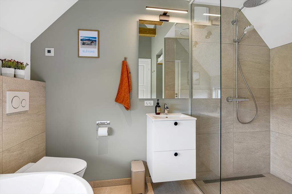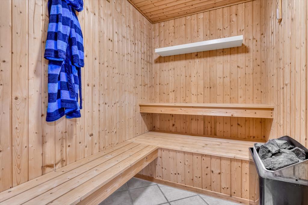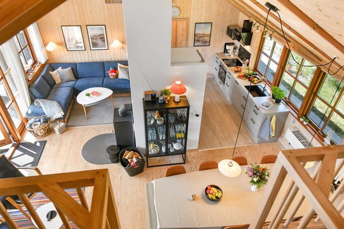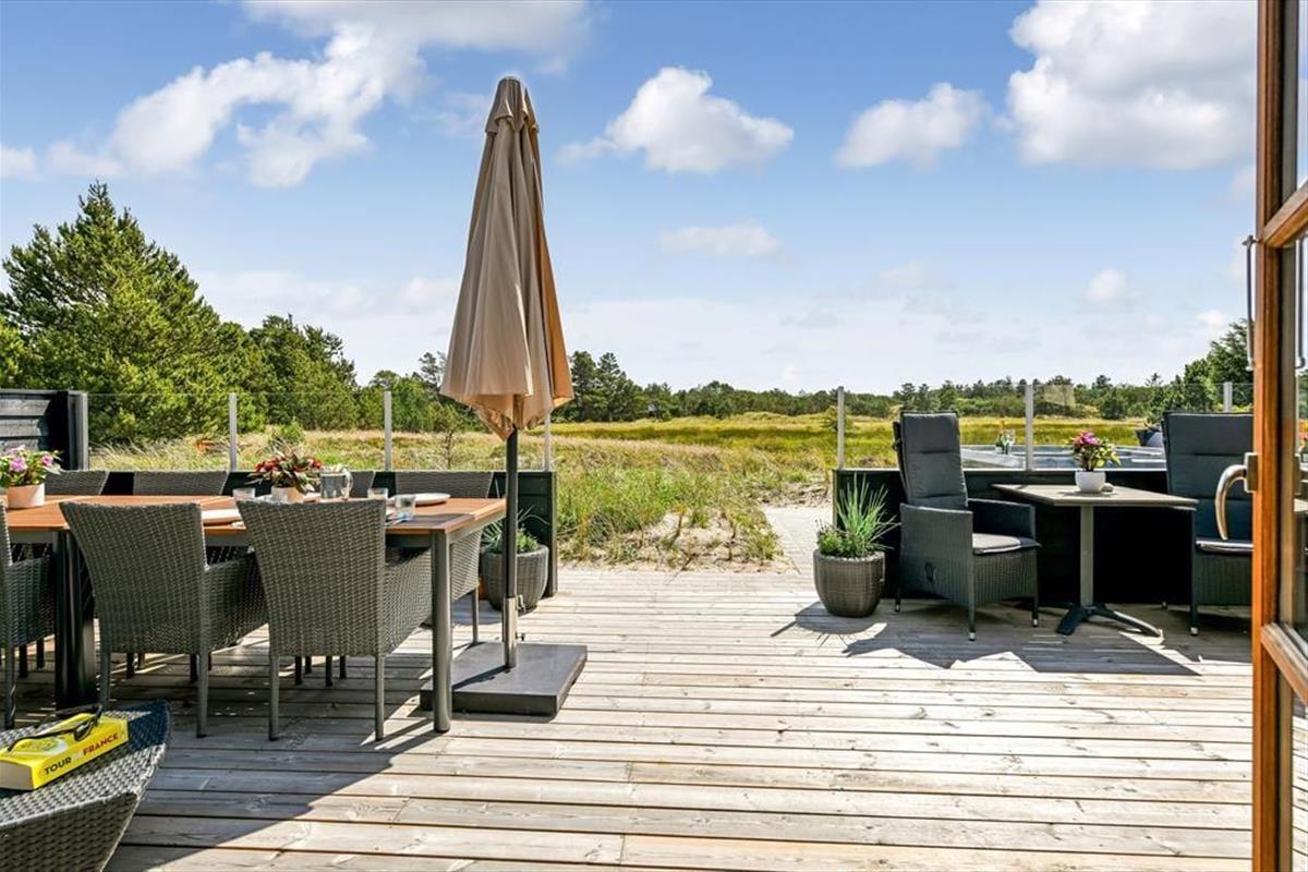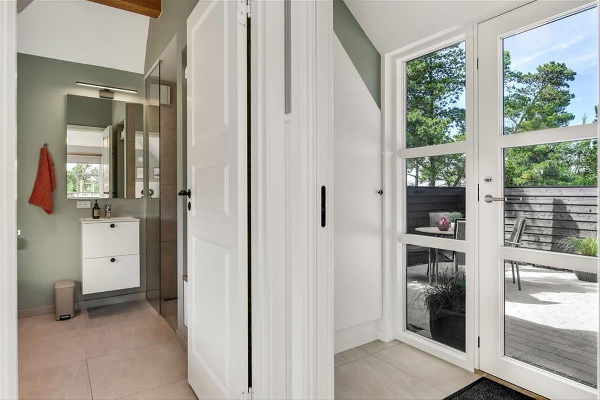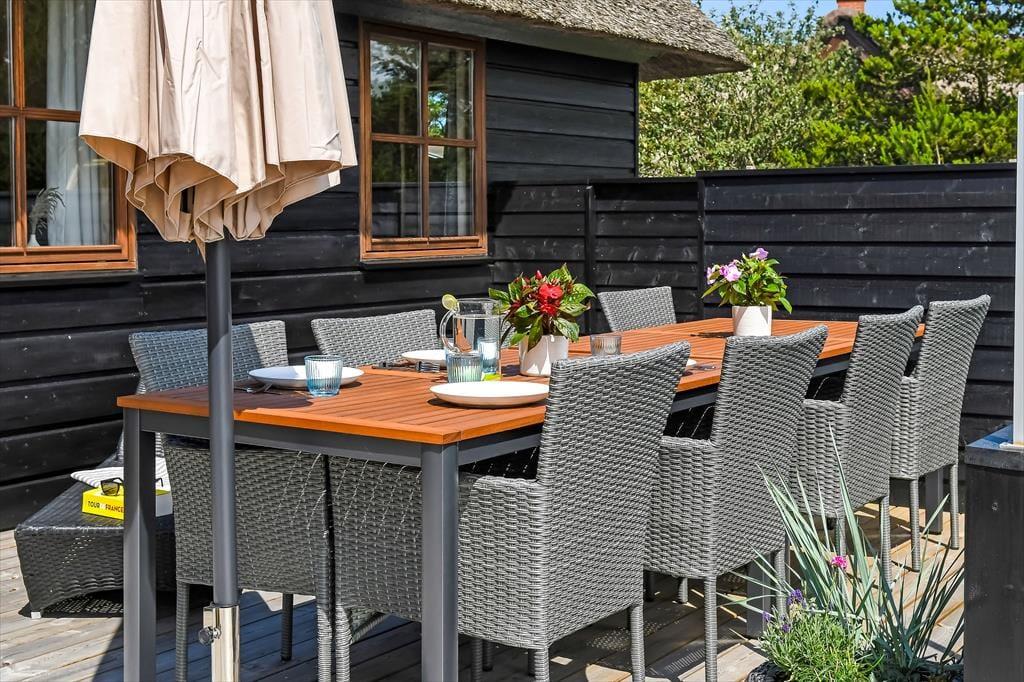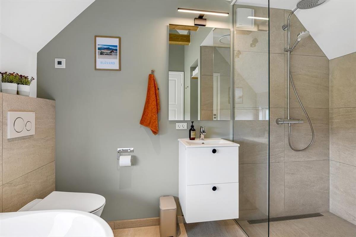 Das Ferienhaus ist der Inbegriff eines dänischen Sommerurlaubs in einem gemütlichen und traditionsreichen Holzhaus mit Reetdach. Es gibt helle Wände und Decken sowie schöne Holzböden. Alle Ecken im Haus sind vollständig genutzt. Das Haus hat im Gemeinschaftsraum eine hohe Decke, der ein gut eingerichtete und gut ausgestattete Küche mit Essbereich und ein Wohnzimmer mit Kamin und bequemen Sitzmöbeln bietet. Der Gemeinschaftsraum ist ein perfekter Treffpunkt für Freunde und Familie, mit reichlich Gelegenheit für Familiengemütlichkeit. Das Haus hat 2 große Dachböden mit voller Stehhöhe. Hier kann man sich zurückziehen und erholen, aber dennoch dem Geschehen folgen. Einer der Dachböden ist für Kinderaktivitäten eingerichtet, mit Smart-TV für Filme und Gaming, Sitzsack sowie Liege- und Spielbereich. Im Erdgeschoss gibt es 2 helle Schlafzimmer mit guten Betten. Das Haus verfügt auch über eine Sauna und einen Innenwhirlpool. Es gibt ein 25 m² großes Nebengebäude mit einem Schlafzimmer und einem Badezimmer. Vom Nebengebäude aus kannst du die Naturaussicht aus der Badewanne genießen. Draußen vor dem Nebengebäude gibt es eine große Terrasse zur Natur hin.
