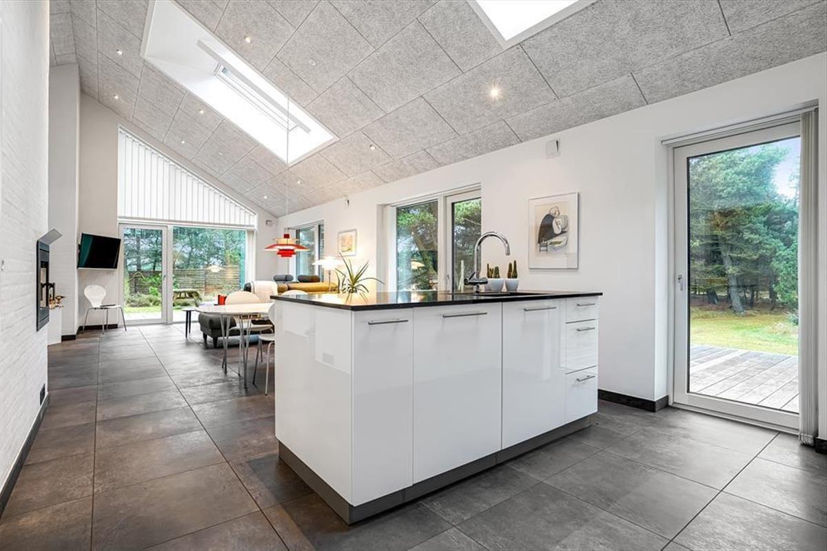 Vom Haus aus sind es nur ein paar Minuten zu Fuß zum Tirpitz-Museum, das nicht nur ein interessantes Museum ist, sondern auch ein spektakuläres Gebäude, das vom Architekturbüro BIG unter der Leitung von Bjarke Ingels entworfen wurde. Etwas weiter entfernt liegt der Zoo von Blåvand, und wenn Du in dieselbe Richtung weitergehst, erreichst du bald das gemütliche Stadtzentrum von Blåvand. Da das Haus direkt am Rande der Siedlung liegt, ist es auch sehr einfach, in die Natur zu gelangen. Du musst zum Beispiel nur den Tane Hedevej überqueren, um auf einem Pfad durch die Heidelandschaft hinunter nach Hvidbjerg Strand zu gelangen. Natürlich kannst du auch mit dem Auto oder dem Fahrrad an die Nordsee fahren, wenn du morgens noch schnell ein Bad nehmen möchtest, bevor der Tag richtig beginnt.