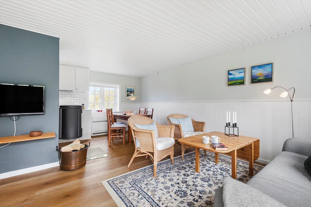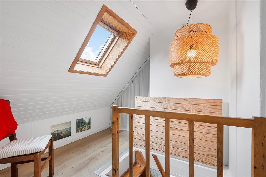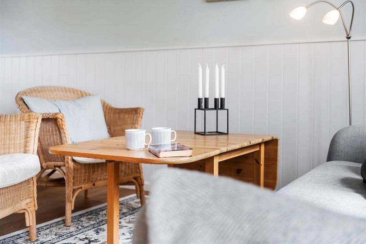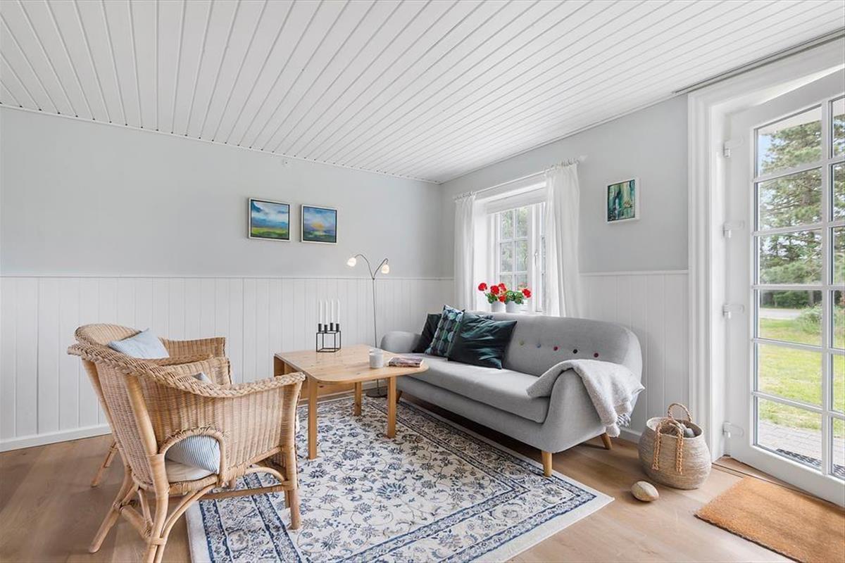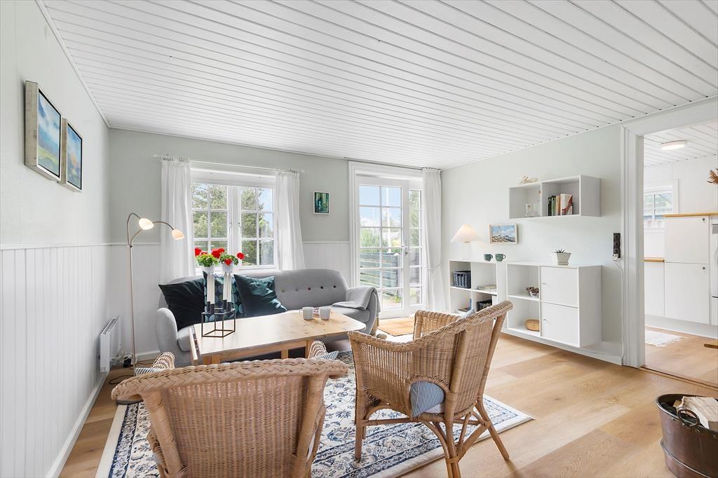 Das Haus ist mit Charme gestaltet. Beim Betreten treffen Sie auf ein helles und einladendes Wohnzimmer, das moderne Einrichtung mit klassischer Ferienhausatmosphäre vereint. Große Fenster sorgen für viel Tageslicht und vermitteln ein angenehmes Gefühl von Weitläufigkeit. Die Veranda ist eine der besonderen Attraktionen des Hauses – hier können Sie Ihren Morgenkaffee genießen und dabei den grünen Garten betrachten oder mit einem guten Buch zur Ruhe kommen, selbst wenn das Wetter draußen nicht mitspielt. Die Küche ist offen mit dem Wohnzimmer verbunden, was es einfach macht, zusammen zu sein, während das Essen zubereitet wird. Die Schlafzimmer des Hauses, die sich im 1. Stock befinden und über eine steile Treppe erreichbar sind, sind mit guten Betten und genügend Platz zum Entspannen eingerichtet, so dass Sie ausgeruht und bereit für einen neuen Tag aufwachen können.