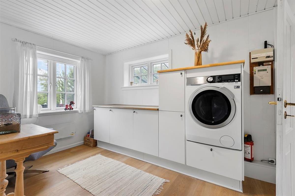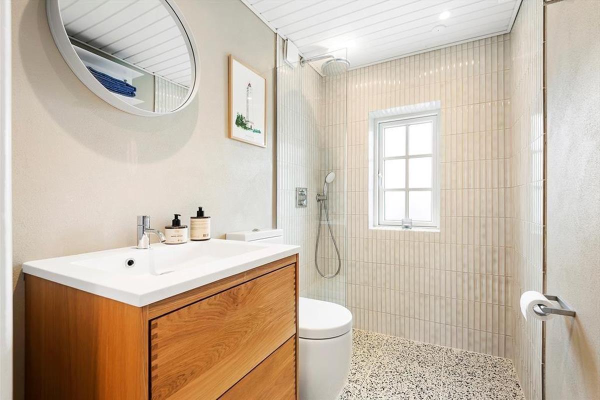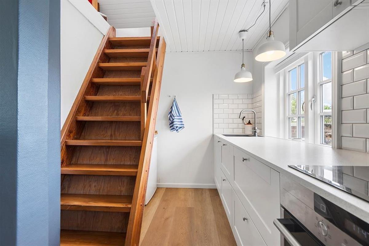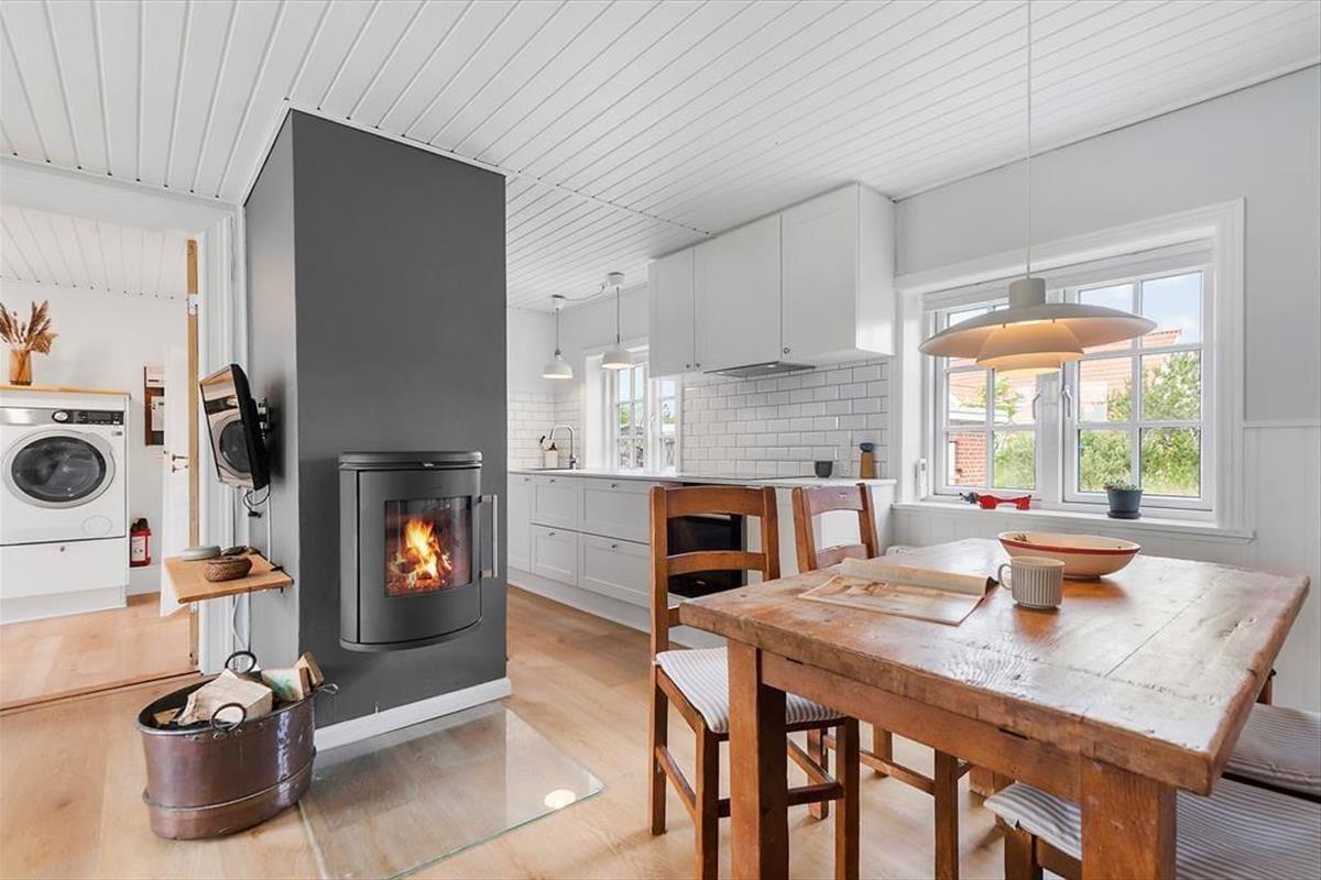 Das Haus ist mit Charme gestaltet. Beim Betreten treffen Sie auf ein helles und einladendes Wohnzimmer, das moderne Einrichtung mit klassischer Ferienhausatmosphäre vereint. Große Fenster sorgen für viel Tageslicht und vermitteln ein angenehmes Gefühl von Weitläufigkeit. Die Veranda ist eine der besonderen Attraktionen des Hauses – hier können Sie Ihren Morgenkaffee genießen und dabei den grünen Garten betrachten oder mit einem guten Buch zur Ruhe kommen, selbst wenn das Wetter draußen nicht mitspielt. Die Küche ist offen mit dem Wohnzimmer verbunden, was es einfach macht, zusammen zu sein, während das Essen zubereitet wird. Die Schlafzimmer des Hauses, die sich im 1. Stock befinden und über eine steile Treppe erreichbar sind, sind mit guten Betten und genügend Platz zum Entspannen eingerichtet, so dass Sie ausgeruht und bereit für einen neuen Tag aufwachen können.