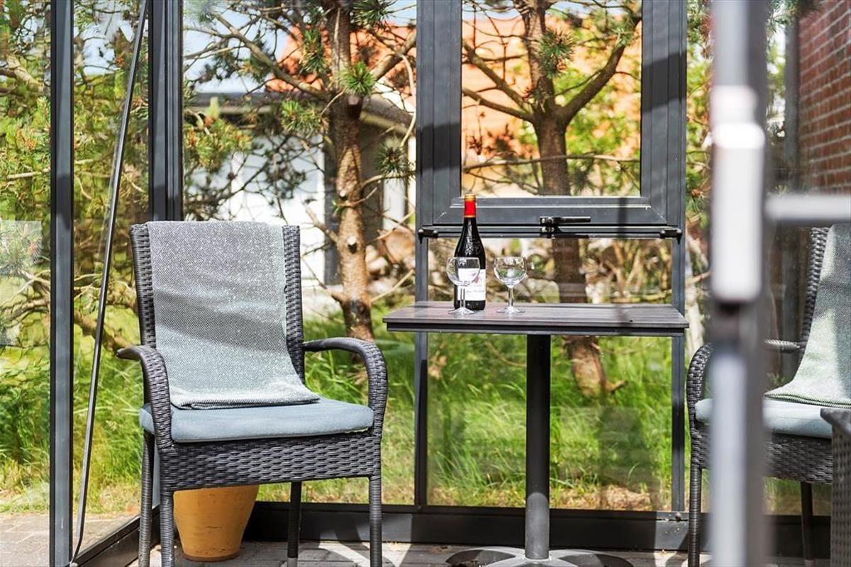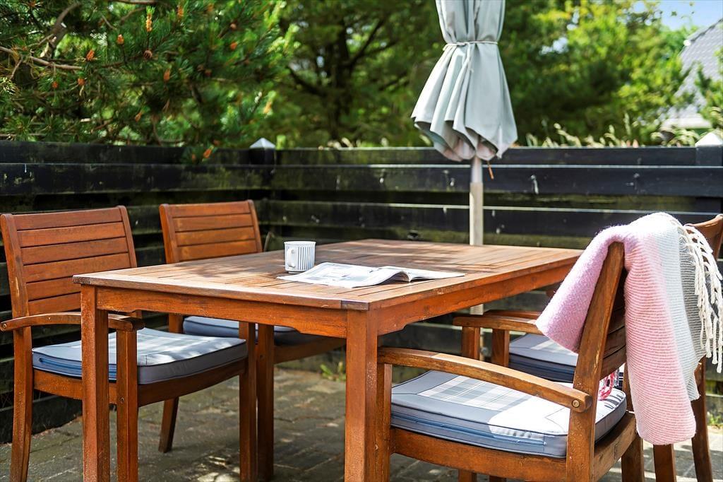 Auf der Terrasse des Ferienhauses können Sie sich mit Blick auf den üppigen Garten zurückziehen. Hier können Sie die Sonne genießen, mit der Familie grillen oder einfach in einem Gartenstuhl entspannen. Der Garten bietet viel Platz zum Spielen und für Aktivitäten für Groß und Klein, und mit der grünen Umgebung finden Sie immer eine gemütliche Ecke für einen ruhigen Moment. Die Veranda ist der perfekte Ort, um die Abende zu verbringen, wo Sie den letzten Sonnenstrahlen des Tages folgen können, während Sie in guter Gesellschaft ein Glas Wein genießen.