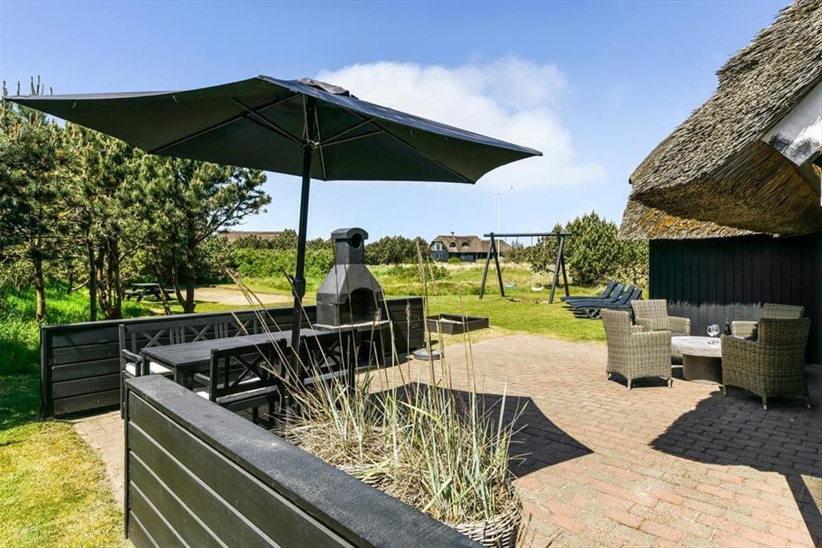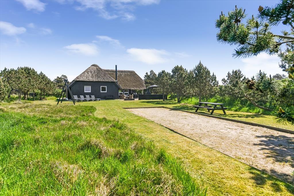 Das große Naturgrundstück ist auf mehreren Seiten gut von Wildrosensträuchern und anderer Bepflanzung abgeschirmt, sodass ihr, egal ob ihr entspannt oder aktiv seid, eine ungestörte Umgebung für das Leben im Freien habt. Für die Kinder gibt es einen Sandkasten und eine Schaukel, und wenn die Erwachsenen auch mitspielen möchten, könnt ihr auf der dafür vorgesehenen Bahn Pétanque spielen. Der Terrassenbereich ist sowohl geräumig als auch sonnig, sodass du tagsüber mehrere schöne Aufenthaltsplätze zur Auswahl hast. Es stehen sowohl ein Grillkamin als auch ein Terrassenheizer zur Verfügung, und beide können dazu beitragen, die hellen Sommerabende noch magischer zu machen.