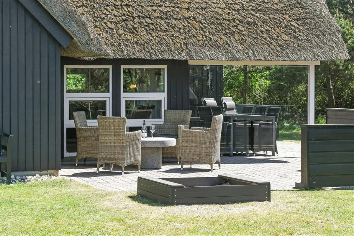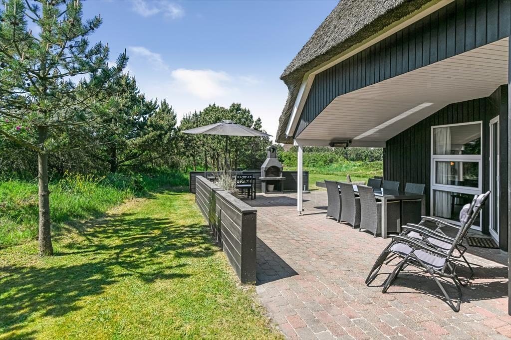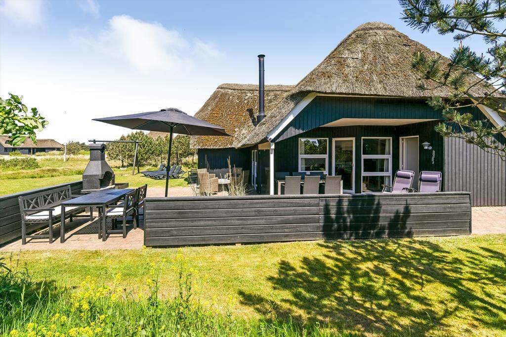 Auf einem großen Naturgrundstück, nur 300 Meter vom Strand entfernt und mit Blick auf den Leuchtturm Blåvandshuk, steht dieses schöne Ferienhaus bereit, dich willkommen zu heißen. Wenn du von modernem Komfort, Whirlpool und Sauna, sonnenbeschienener Gartenidylle und ruhiger Umgebung träumst, ist dieses reetgedeckte Ferienhaus genau das Richtige für dich – und du kannst problemlos Familie oder Freunde einladen, denn es gibt insgesamt Platz für acht Personen im Haus.