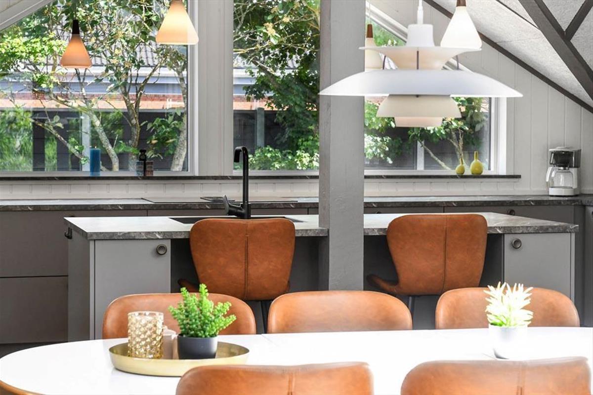 Das Ferienhaus in der Toldbodvej 3 empfängt dich mit einem hellen und einladenden Interieur. Hier erwartet dich eine tolle Küche, die perfekt zum Kochen und für gemütliche Stunden mit der Familie geeignet ist. Die schönen Badezimmer strahlen Luxus und Komfort aus, sodass du nach einem erlebnisreichen Tag eine entspannende Dusche genießen kannst. Das Wohnzimmer ist geräumig und gemütlich, und die große Sofaecke lädt zum Entspannen vor dem Fernseher oder mit einem guten Buch ein. Die Schlafzimmer des Hauses sind komfortabel und geschmackvoll eingerichtet, und als zusätzlichen Bonus gibt es ein charmantes Nebengebäude mit Doppelbett, das Platz für Freunde und Familie bietet.
