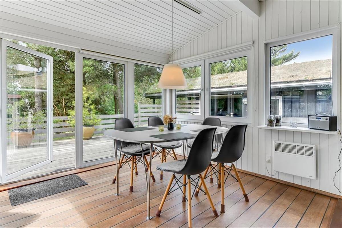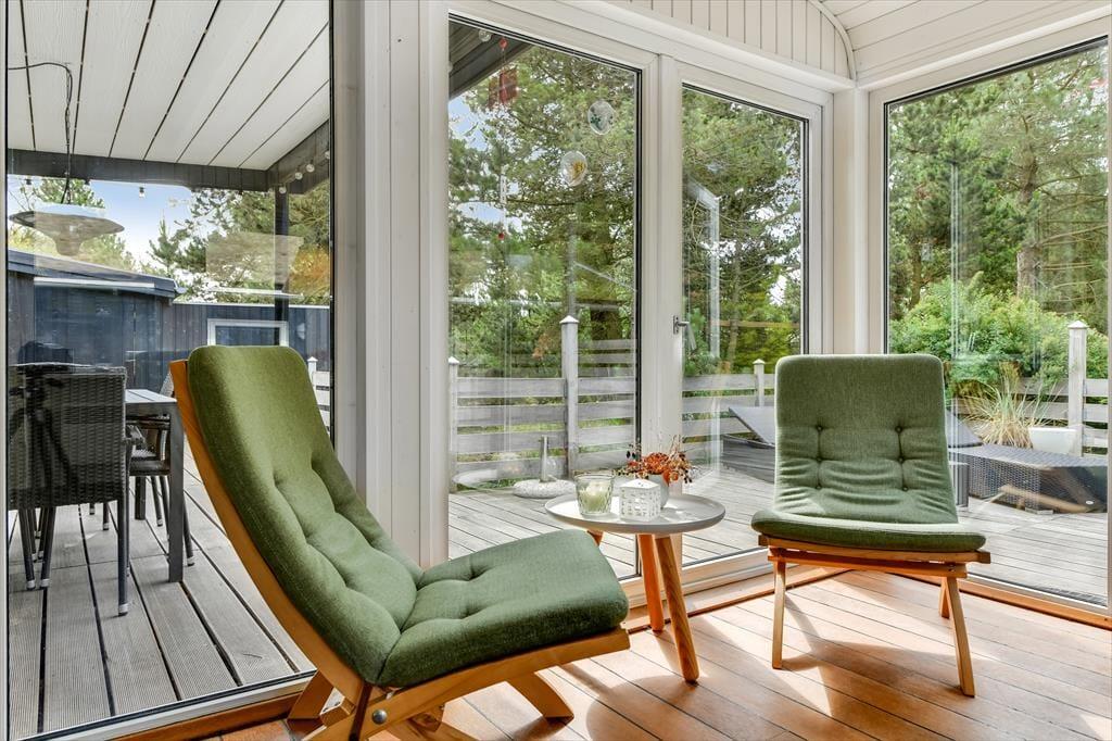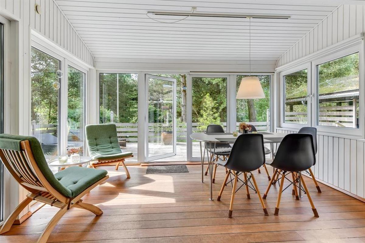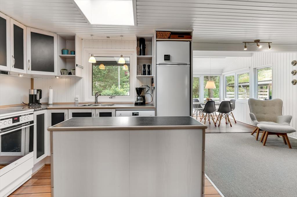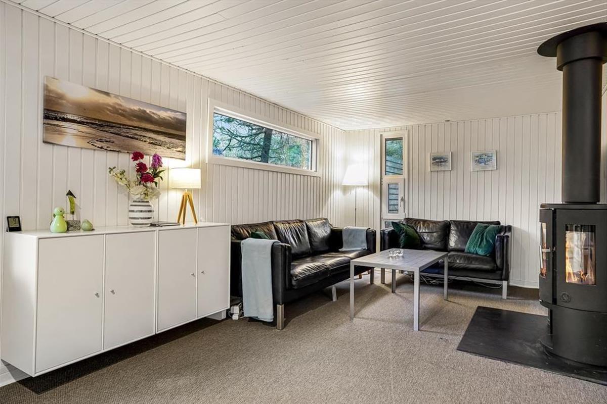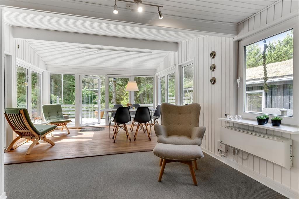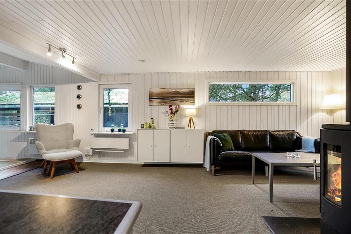 Du wirst von der gemütlichen und angenehmen Atmosphäre des Hauses empfangen, sobald du eintrittst. Die drei Schlafzimmer und das geräumige Badezimmer tragen zum guten Gesamteindruck bei, aber die wachen Stunden des Tages wirst du wahrscheinlich hauptsächlich im Aufenthaltsraum verbringen, wo Wohnzimmer und Küche in offener Verbindung stehen. Wenn du gerne kochst, kannst du dich darauf freuen, viel Zeit in der gut ausgestatteten Küche zu verbringen – und wenn du es lieber entspannt magst, kannst du den Kaminofen anfeuern und es dir im Sofaeck gemütlich machen. Der Esstisch steht an einem Ende des Wohnzimmers, wo die Fenster nach drei Himmelsrichtungen ausgerichtet sind, sodass es sich fast wie in einem Wintergarten anfühlt, wenn du das Licht genießt und auf das grüne Grundstück blickst. Im Anbau findest du einen Aktivitätsraum mit unter anderem Tischfußball und Darts, die für viele Stunden Spaß und Unterhaltung sorgen.