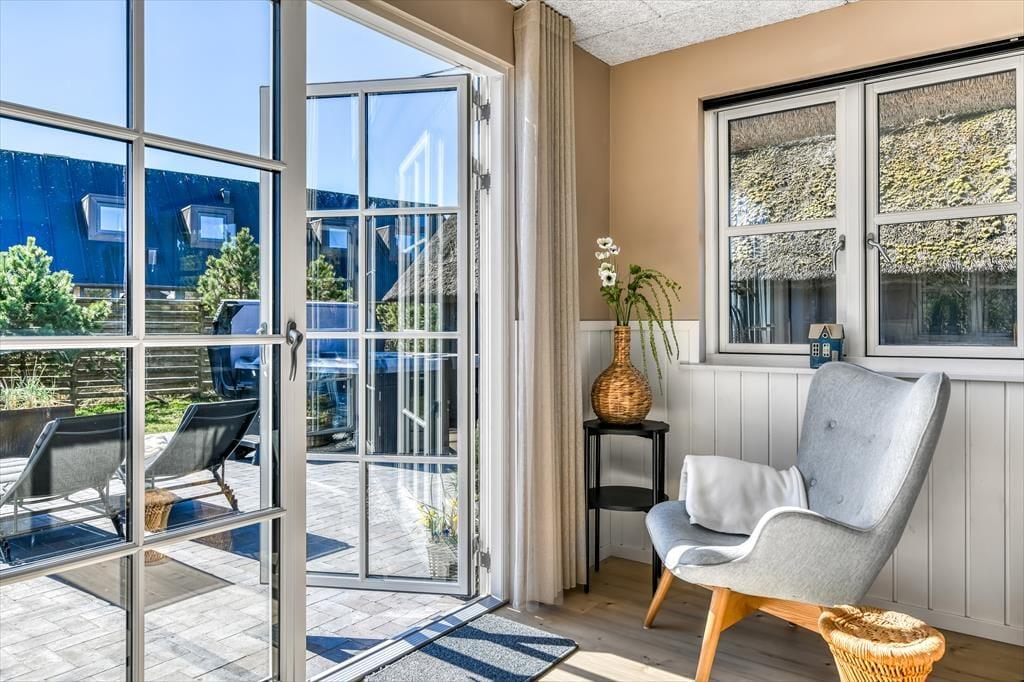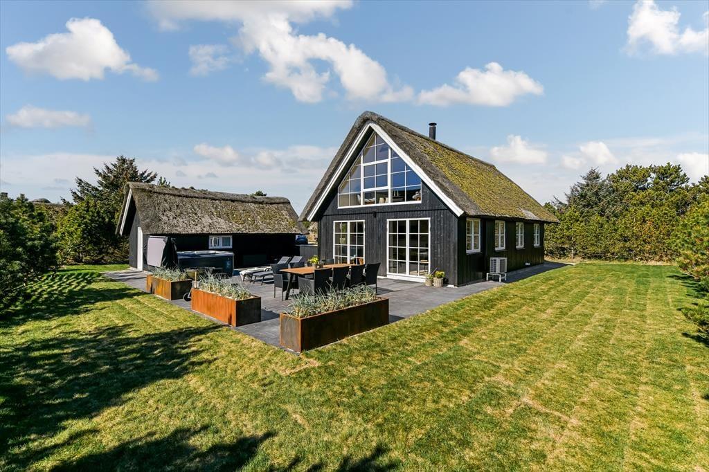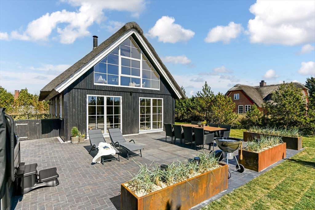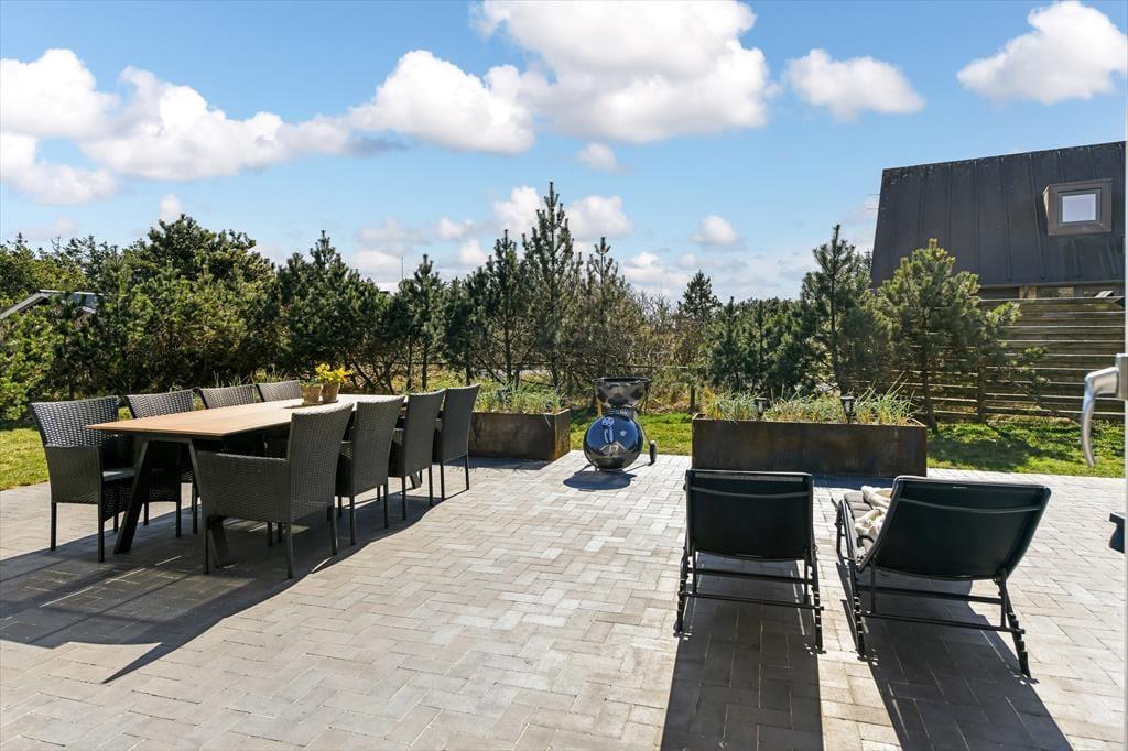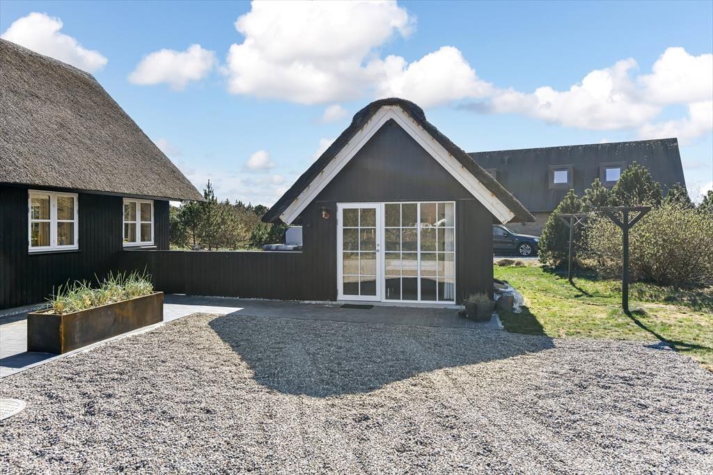 Das Leben im Freien hat hier beste Voraussetzungen. Die schöne Terrassenlandschaft ist wie geschaffen für Urlaubsstunden im Slow-Motion-Modus – ob bei einer morgendlichen Tasse Kaffee mit Vogelgezwitscher im Hintergrund oder im warmen Außen-Whirlpool, während die Sonne hinter den Dünen untergeht. Die Terrasse ist großzügig angelegt und bietet viel Platz für Spiel, Grillabende und Entspannung auf den Sonnenliegen. Dank der ruhigen Lage in der Sønder-Vasevej kannst du all das in herrlicher Ruhe genießen. Die grüne Umgebung ist einladend, und es fällt leicht, den Alltag hinter sich zu lassen. Mit dem weichen Holz unter den Füßen und der frischen Nordseeluft in der Nase fällt es nicht schwer, die Schultern sinken zu lassen und in den Ferienmodus zu wechseln.