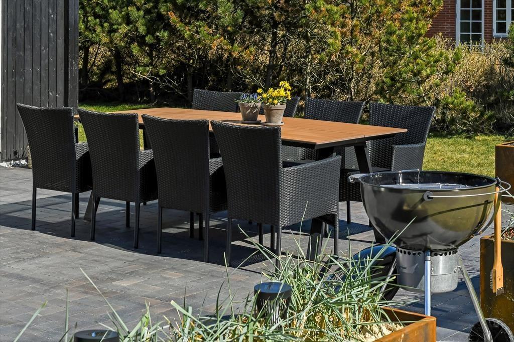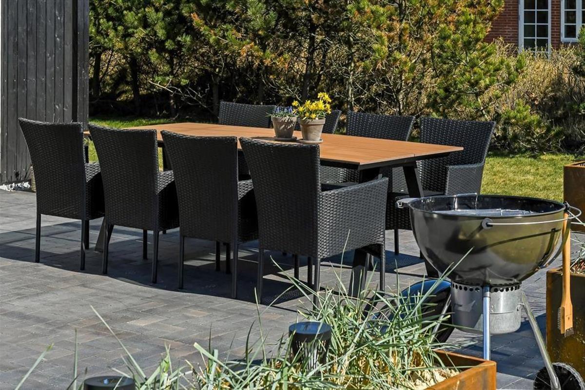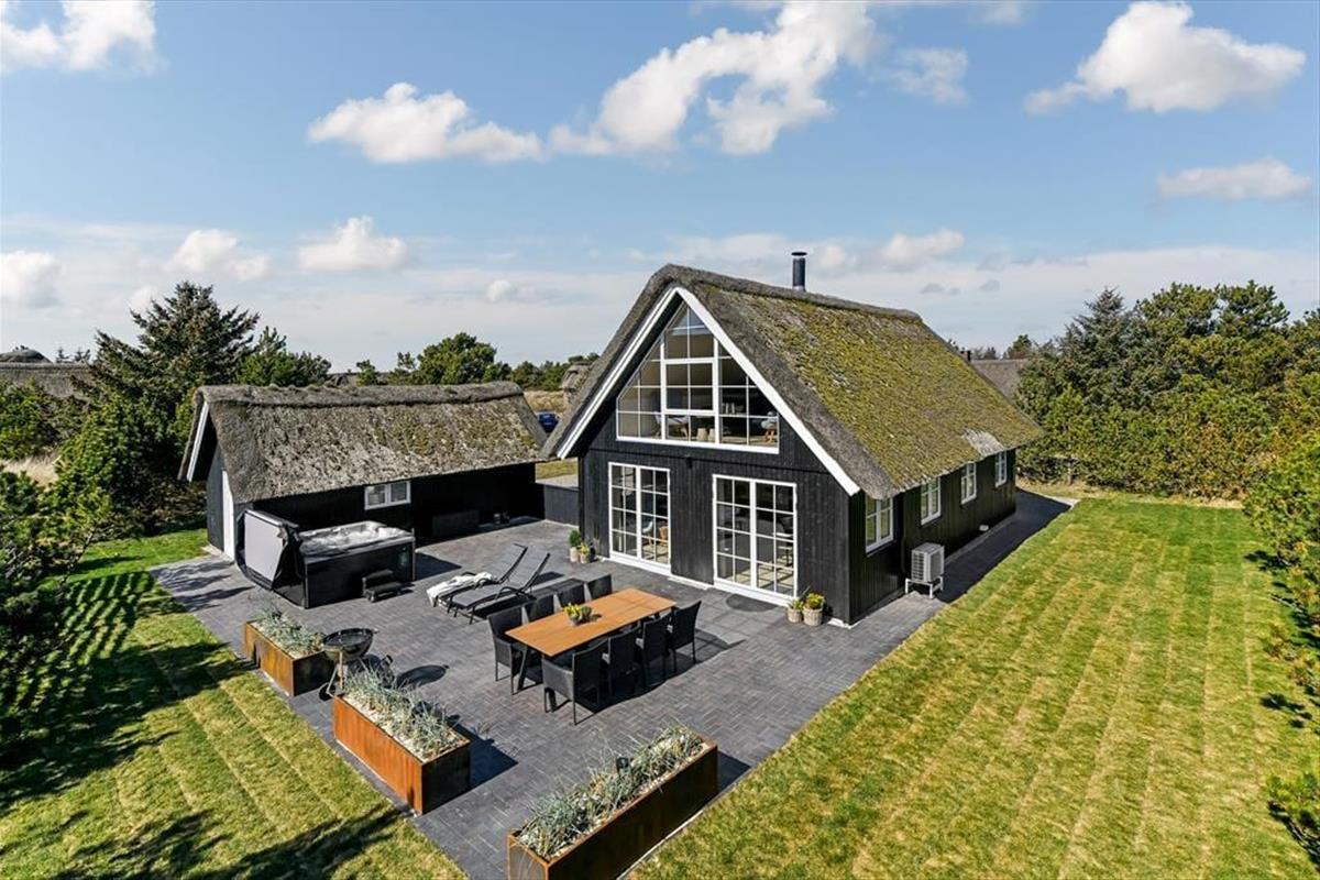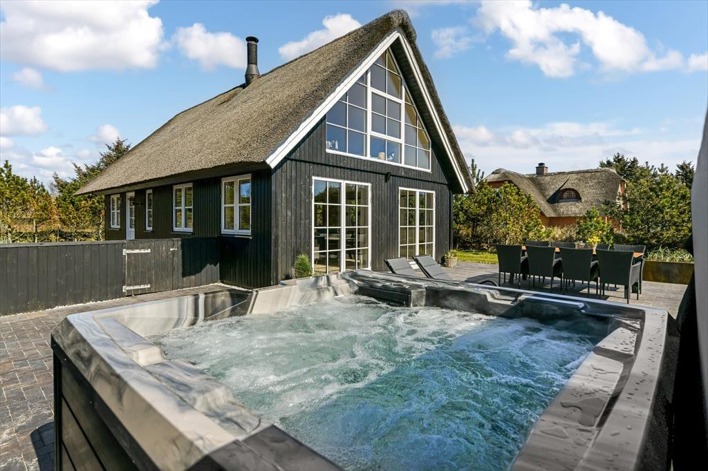 Das Leben im Freien hat hier beste Voraussetzungen. Die schöne Terrassenlandschaft ist wie geschaffen für Urlaubsstunden im Slow-Motion-Modus – ob bei einer morgendlichen Tasse Kaffee mit Vogelgezwitscher im Hintergrund oder im warmen Außen-Whirlpool, während die Sonne hinter den Dünen untergeht. Die Terrasse ist großzügig angelegt und bietet viel Platz für Spiel, Grillabende und Entspannung auf den Sonnenliegen. Dank der ruhigen Lage in der Sønder-Vasevej kannst du all das in herrlicher Ruhe genießen. Die grüne Umgebung ist einladend, und es fällt leicht, den Alltag hinter sich zu lassen. Mit dem weichen Holz unter den Füßen und der frischen Nordseeluft in der Nase fällt es nicht schwer, die Schultern sinken zu lassen und in den Ferienmodus zu wechseln.