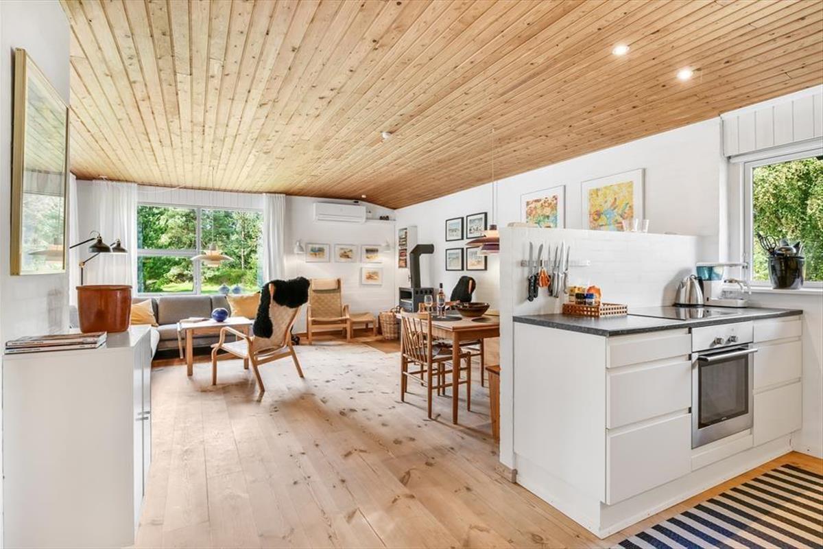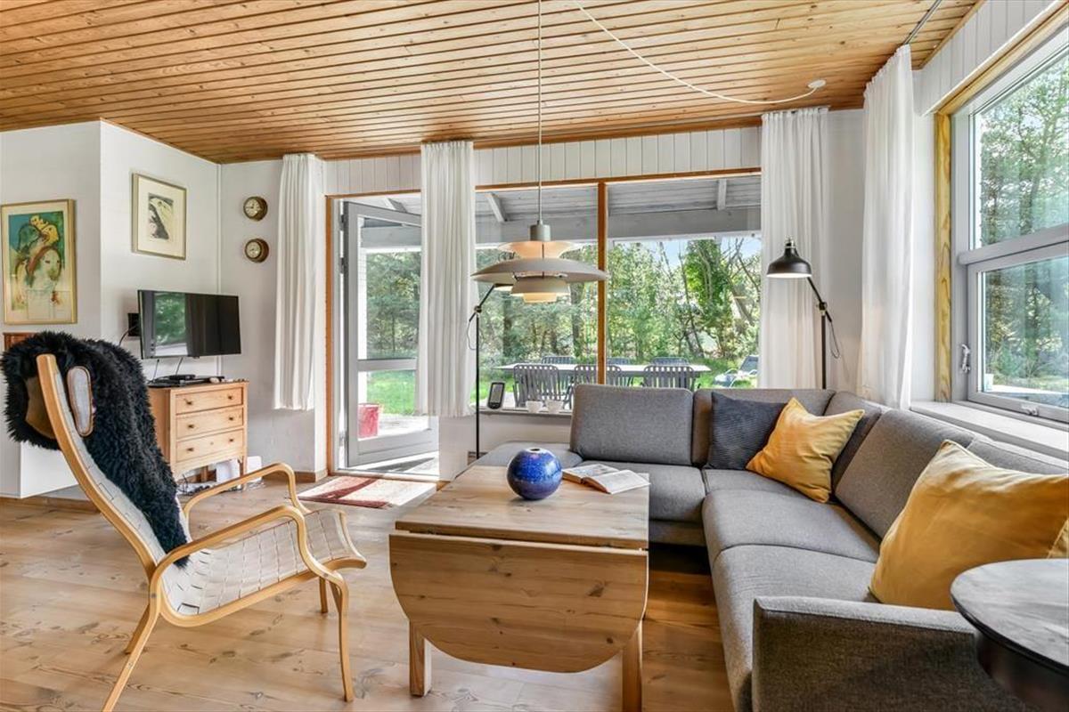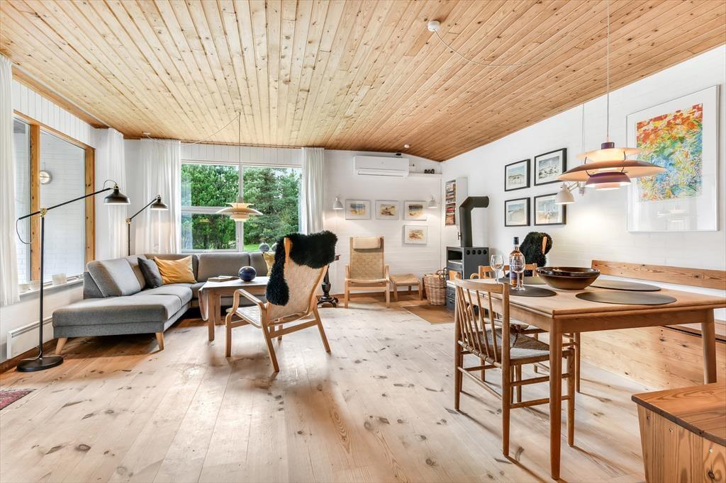 Das Ferienhaus bietet eine warme und einladende Atmosphäre mit viel Licht durch die großen Fenster. Der neu renovierte Bereich verfügt über einen schönen Aufenthaltsraum, der zu gemütlichen Stunden mit Brettspielen oder einem guten Film einlädt. Von hier aus haben Sie direkten Zugang zu einer der vielen Terrassen, wo Sie Ihren Morgenkaffee oder einen Abenddrink unter dem klaren Sternenhimmel genießen können. Das geräumige Schlafzimmer, das sich ebenfalls in diesem Bereich befindet, ermöglicht eine gute Nachtruhe und hat einen schönen Zugang zur Terrasse, sodass Sie direkt in die Natur treten können. Neben dem Schlafzimmer gibt es mehrere weitere gute Zimmer, die Platz für die ganze Familie bieten.