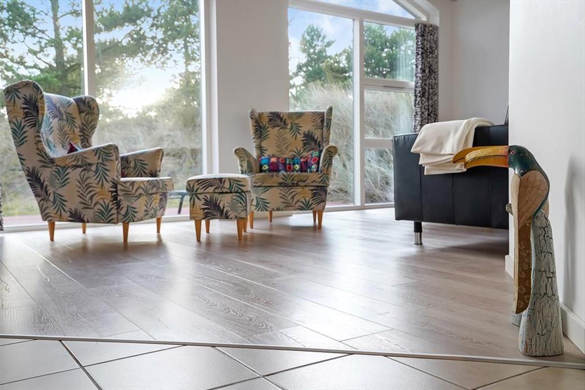 Das Ferienhaus bietet eine moderne und helle Einrichtung, die von Gemütlichkeit und Funktionalität geprägt ist. Im Wohnzimmer gibt es bequeme Möbel, die zum Entspannen einladen, während große Fenster für fantastisches Licht sorgen und den Blick auf die wunderschöne Natur draußen freigeben. Der Gasofen im Wohnzimmer sorgt für eine zusätzliche Dimension der Gemütlichkeit, wenn das Nachmittagskaffee im warmen Schein des Feuers genossen wird. Die offene und einladende Küche bietet gute Möglichkeiten, Urlaubsmahlzeiten zuzubereiten, die dann am Esstisch genossen werden können, wo sich die ganze Familie versammeln kann. Das Haus bietet außerdem ein Billardtisch und die Möglichkeit, Tischtennis zu spielen. Das Ferienhaus hat mehrere Schlafplätze, die für eine erholsame Nachtruhe sorgen, und die modernen Badezimmer ermöglichen es, den Tag mit Wohlbefinden und Komfort zu beginnen und zu beenden.