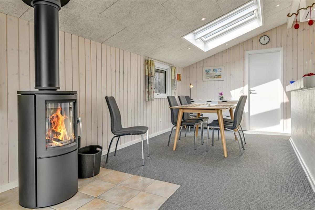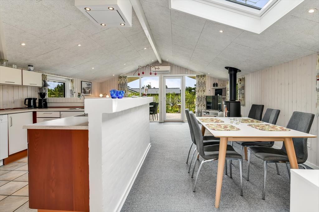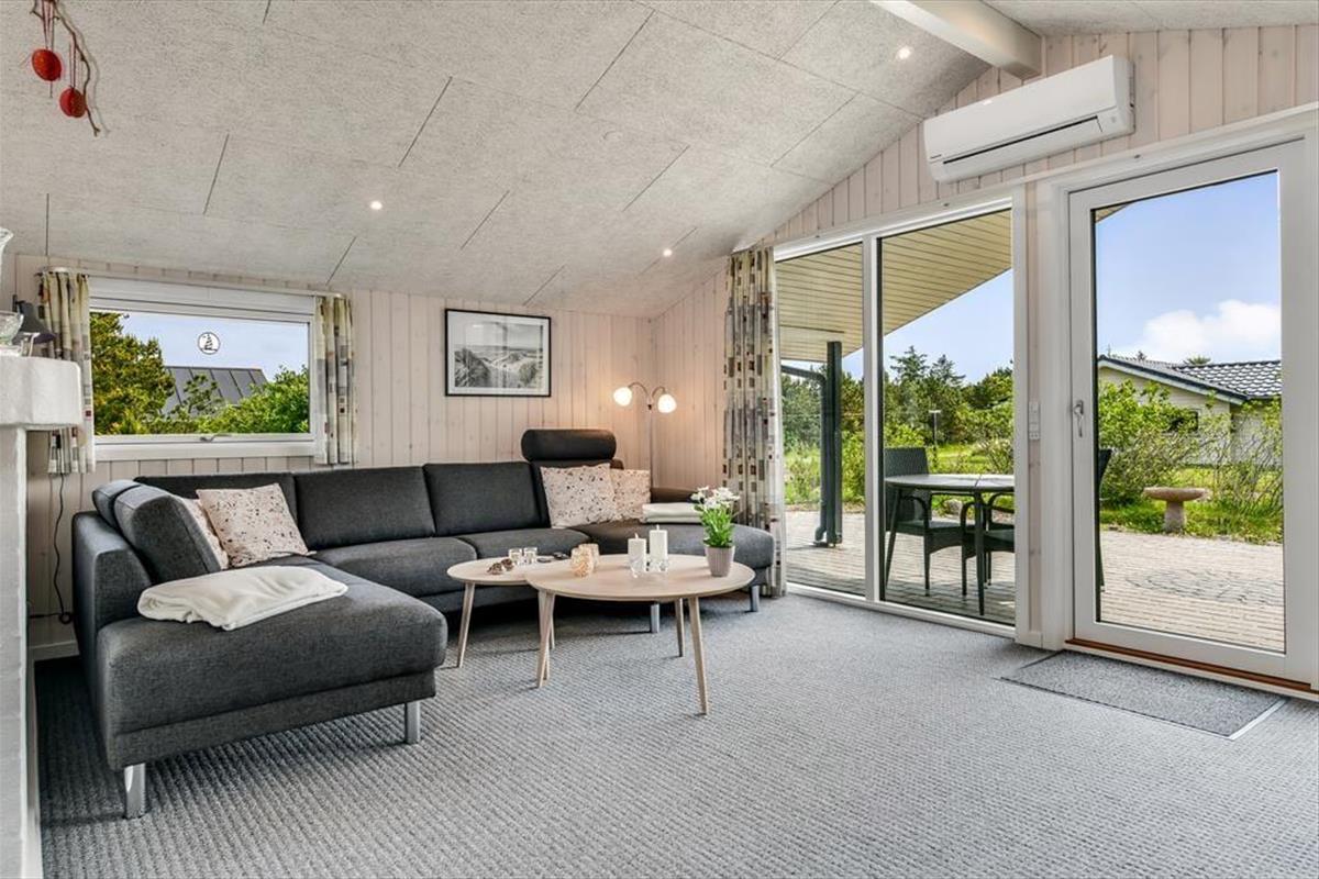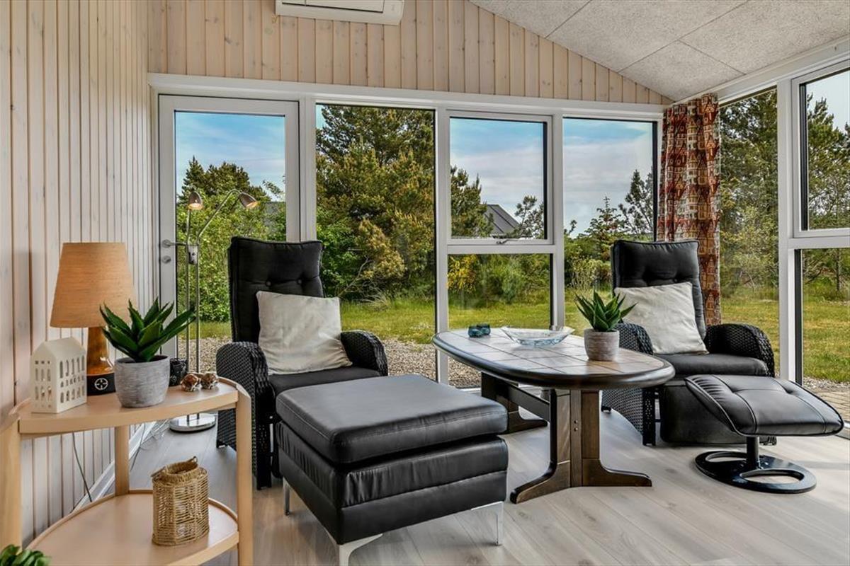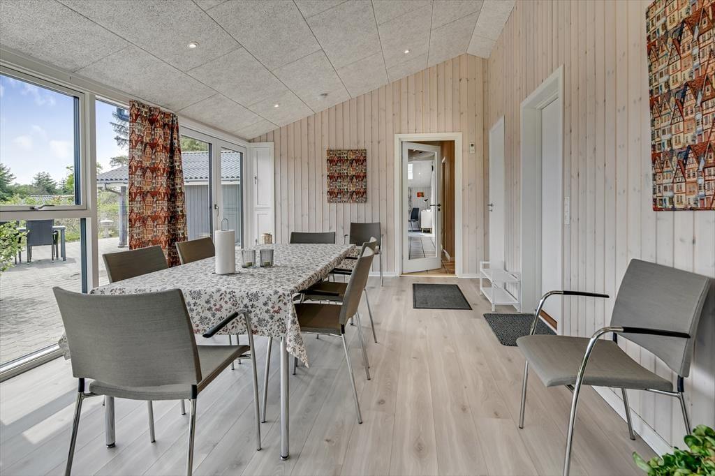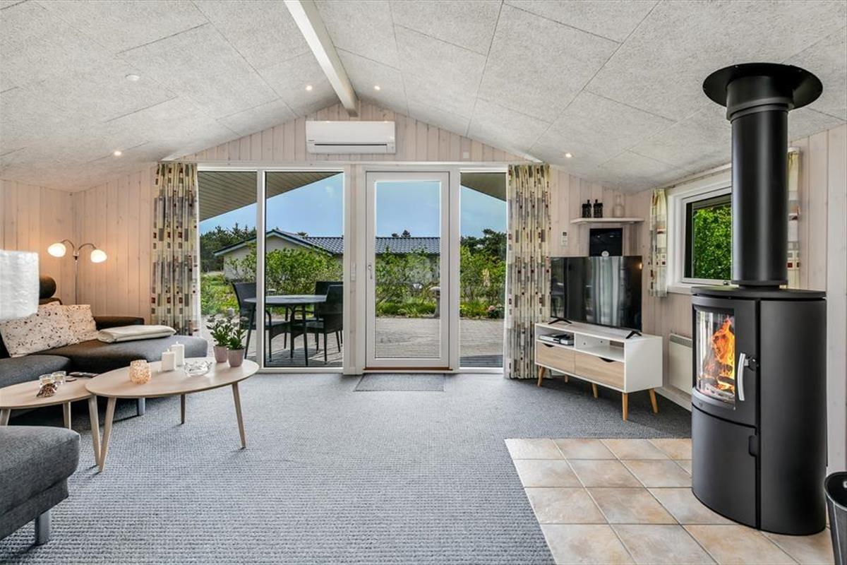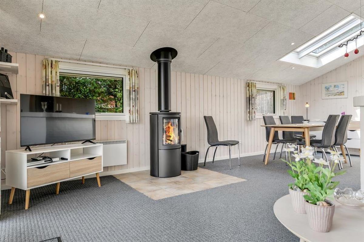 Im Ferienhaus in der Grønnevænget 3 herrscht eine entspannte und gemütliche Atmosphäre – genau so, wie man es sich erträumt, wenn man das Auto packt und gen Westen fährt. Die Einrichtung verströmt echtes Urlaubsgefühl, und sowohl das Wohnzimmer als auch der Essbereich laden zu langen, ruhigen Stunden mit Brettspielen, einem guten Buch oder netten Gesprächen am Esstisch ein. Wenn es draußen kalt ist, ist es herrlich, den Holzofen anzuzünden und die wohlige Wärme zu spüren, während das Feuer knistert. Ein echtes Highlight des Hauses ist die fantastische Veranda, die schnell zum Lieblingsplatz wird – ganz gleich, ob die Sonne scheint oder der Regen leise auf das Dach trommelt, du kannst den Blick in den Garten in aller Ruhe genießen. Das Badezimmer ist mit einer Sauna ausgestattet, sodass du dir mitten im Urlaub etwas Wellness gönnen kannst. Und wenn es dunkel wird, ist es schön, sich in eines der gemütlichen Schlafzimmer zurückzuziehen.