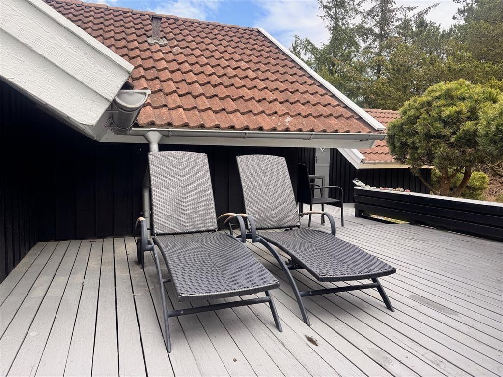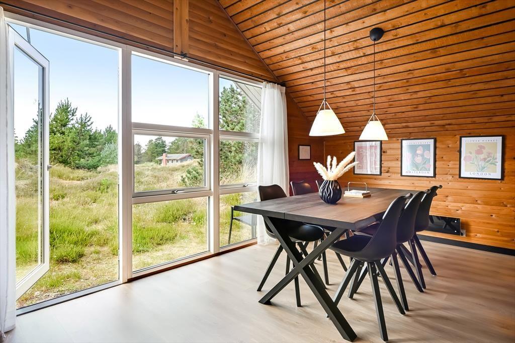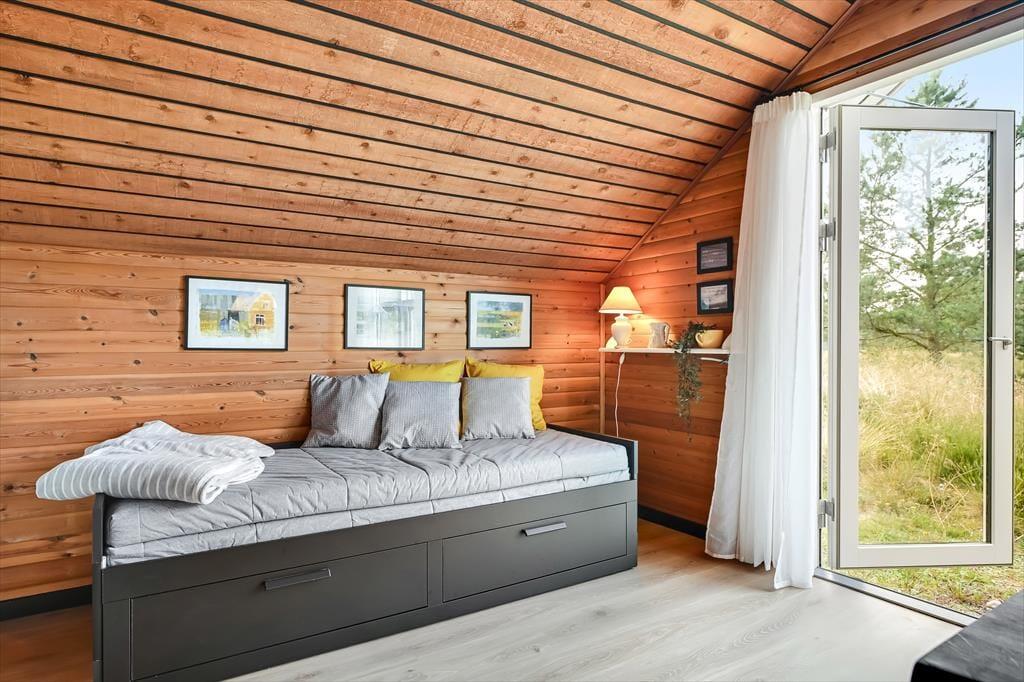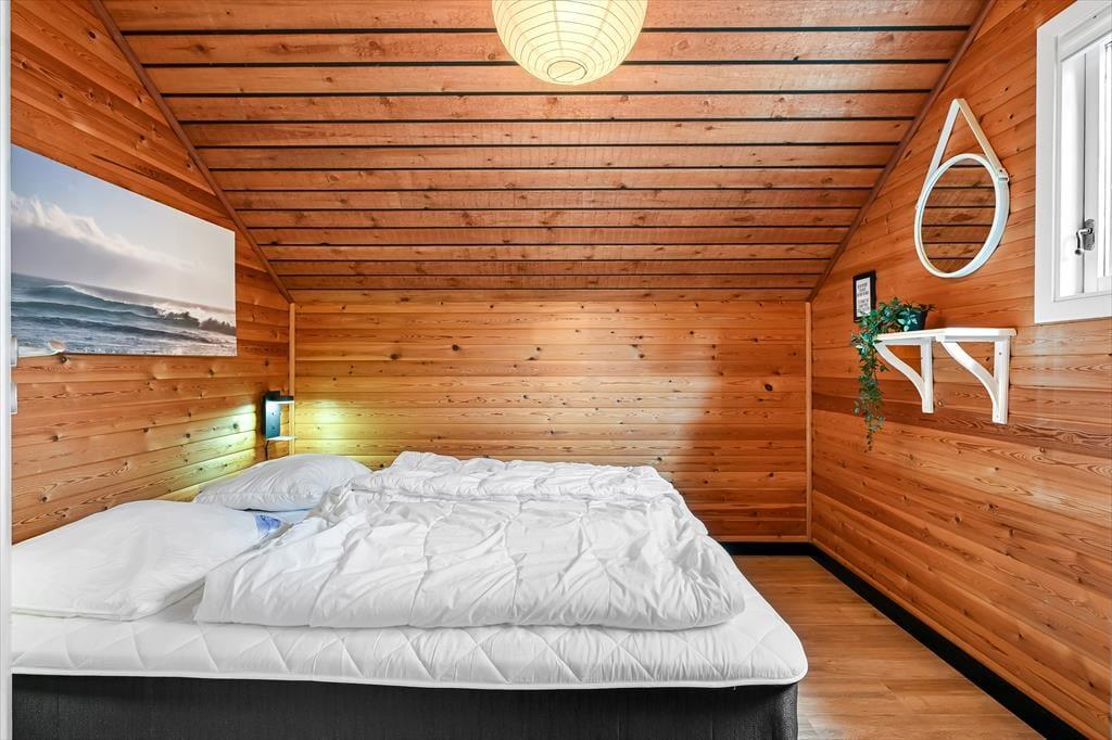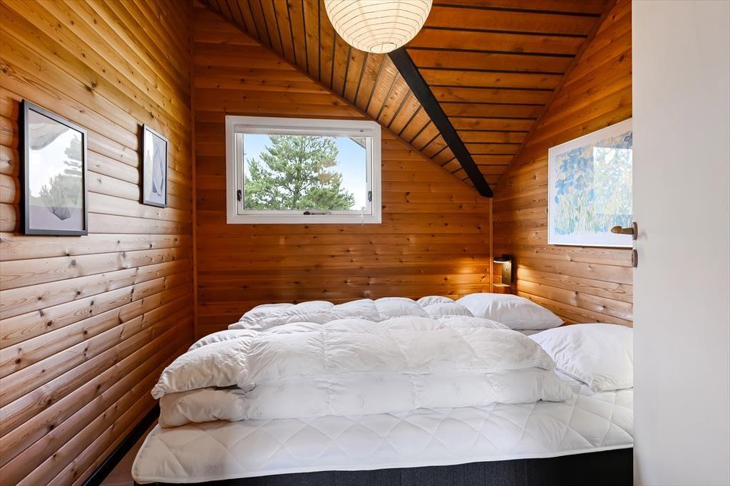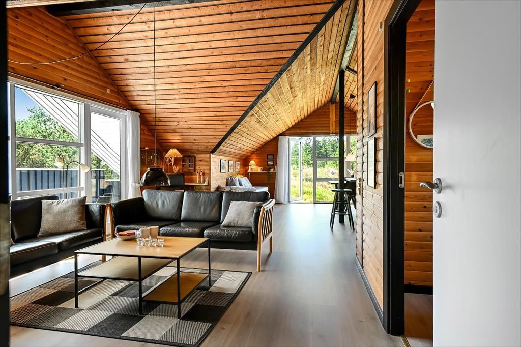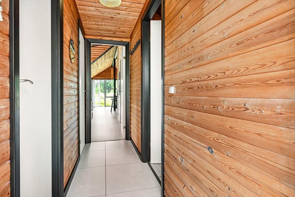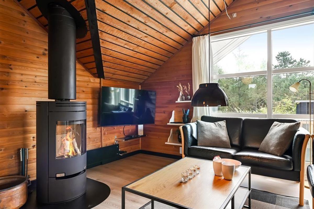 Das Ferienhaus ist älteren Datums, wurde aber modernisiert und vereint Nostalgie und zeitgemäßen Komfort auf schönste Weise. Drinnen erwartet dich eine warme und einladende Atmosphäre: Mit holzverkleideten Wänden und Decken strahlt es den klassischen Charme eines dänischen Sommerhauses aus, während die Modernisierung für Helligkeit und angenehme Aufenthaltsqualität sorgt. Das Wohnzimmer ist der natürliche Treffpunkt des Hauses – hier kannst du es dir mit einem guten Buch auf dem Sofa gemütlich machen, während das Feuer im Kaminofen knistert und die Fenster das Licht und die Farben der Natur ins Haus holen. Die Mahlzeiten werden mühelos in der offenen Küche zubereitet – hier hast du viel Platz und kannst während des Kochens mit deinen Liebsten plaudern. Wenn der Tag sich dem Ende neigt, findest du Ruhe in den Schlafzimmern, die zu Entspannung und langen, ungestörten Nächten einladen. Hier findest du Raum für genau den Urlaubsmodus, den du suchst – ob Gemütlichkeit, Zusammensein oder Ruhe und Rückzug.