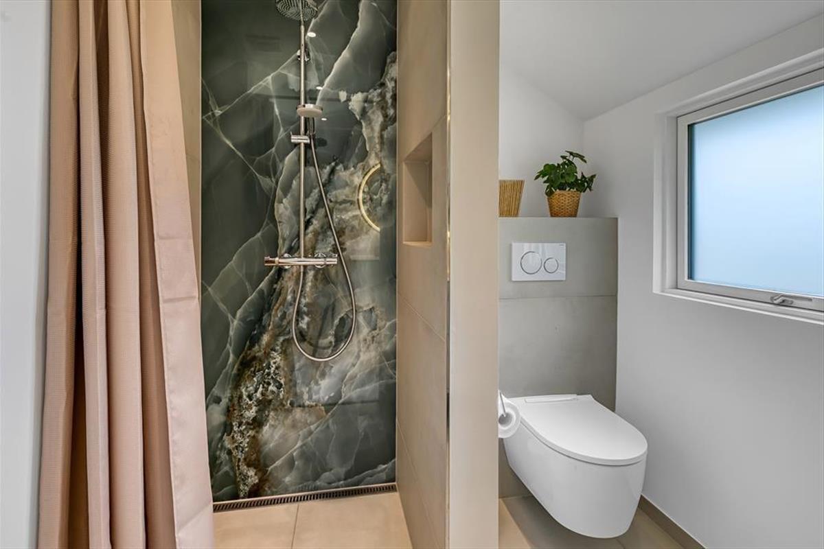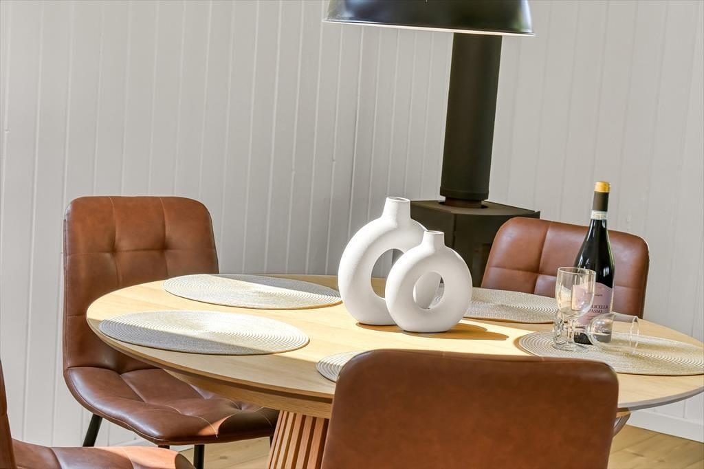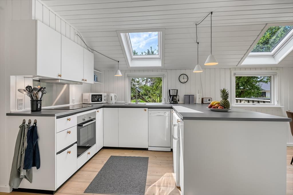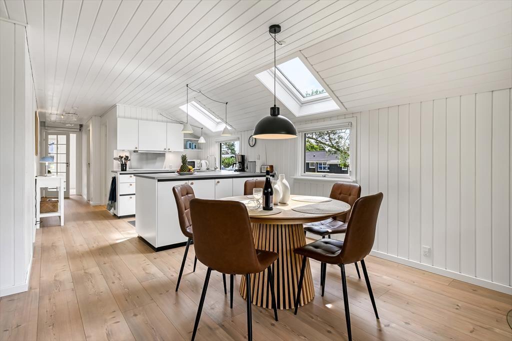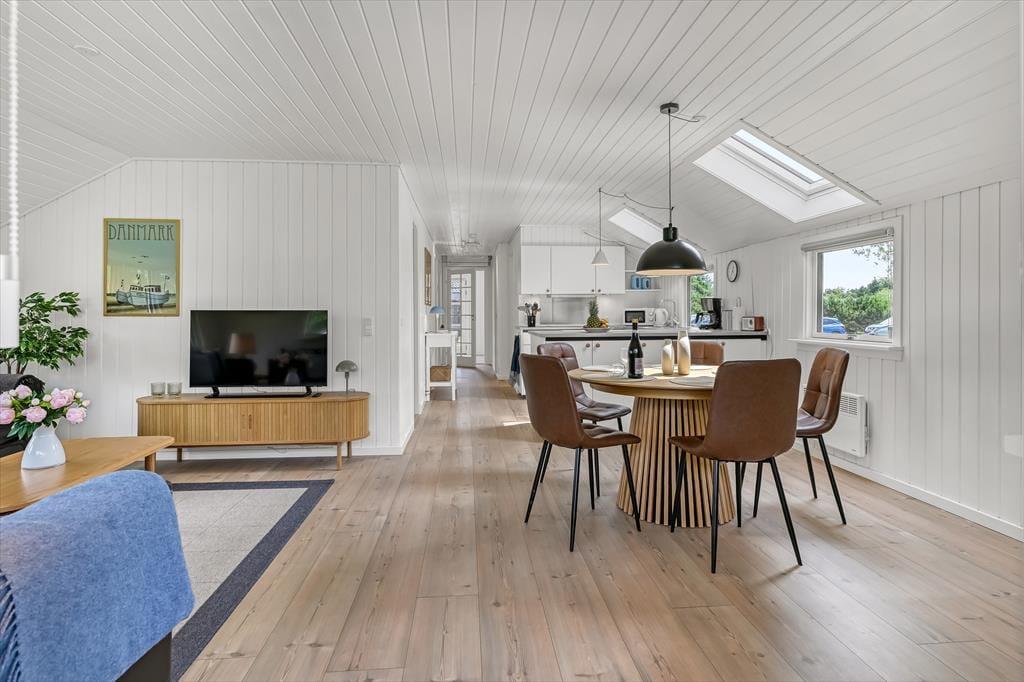 Schon beim Betreten spürst du, dass dieses Haus etwas ganz Besonderes ist. Die Einrichtung ist modern und hell gestaltet, wobei Dachfenster zusätzliches Tageslicht in die Räume bringen. Der offene Küchen- und Wohnbereich bildet den natürlichen Mittelpunkt des Ferienlebens – ganz gleich, ob ihr gemeinsam am Esstisch Karten spielt, leckere Mahlzeiten zubereitet oder euch mit einem guten Buch auf dem Sofa entspannt. Die drei Schlafzimmer sind durchdacht aufgeteilt, sodass sich jeder zurückziehen kann, und das Haus verfügt sowohl über ein schönes Badezimmer als auch über ein zusätzliches WC – besonders praktisch, wenn ihr mit mehreren Personen unterwegs seid. Die Einrichtung ist warm und freundlich mit liebevollen Details, die dafür sorgen, dass man sich sofort zu Hause fühlt.