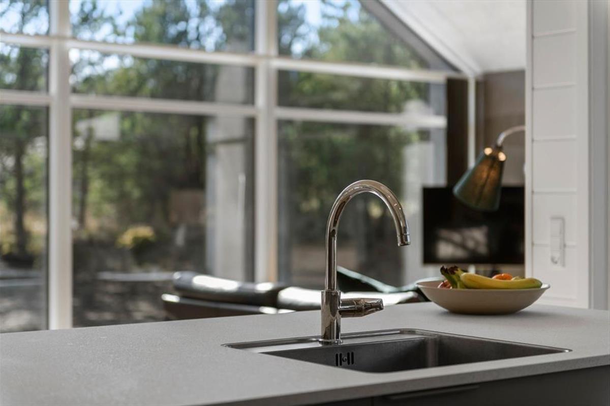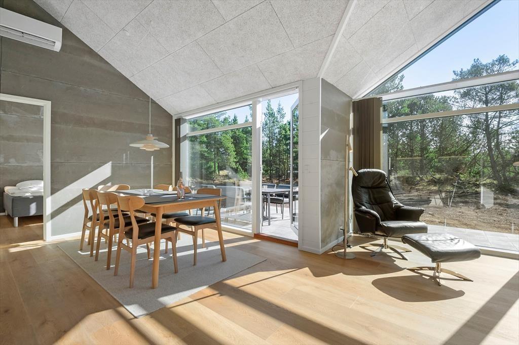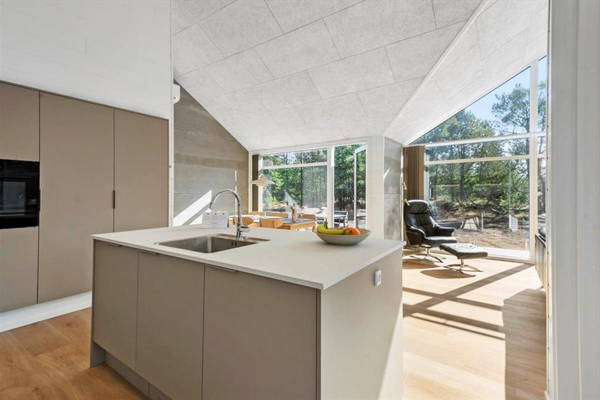 Indenfor mødes du af et lyst og indbydende sommerhus, der kombinerer moderne design med klassisk feriehygge. De tre gode værelser indbyder til afslappende nætter, og de to badeværelser gør det nemt at få morgenrutinerne til at glide – også når I er flere på ferie sammen. Køkken og stue smelter sammen i et åbent opholdsrum, hvor samtaler og feriehygge kan blomstre, mens maden tilberedes. Store vinduespartier inviterer dagslyset indenfor og skaber en varm og venlig atmosfære, perfekt til afslapning efter en dag med oplevelser i Blåvand.