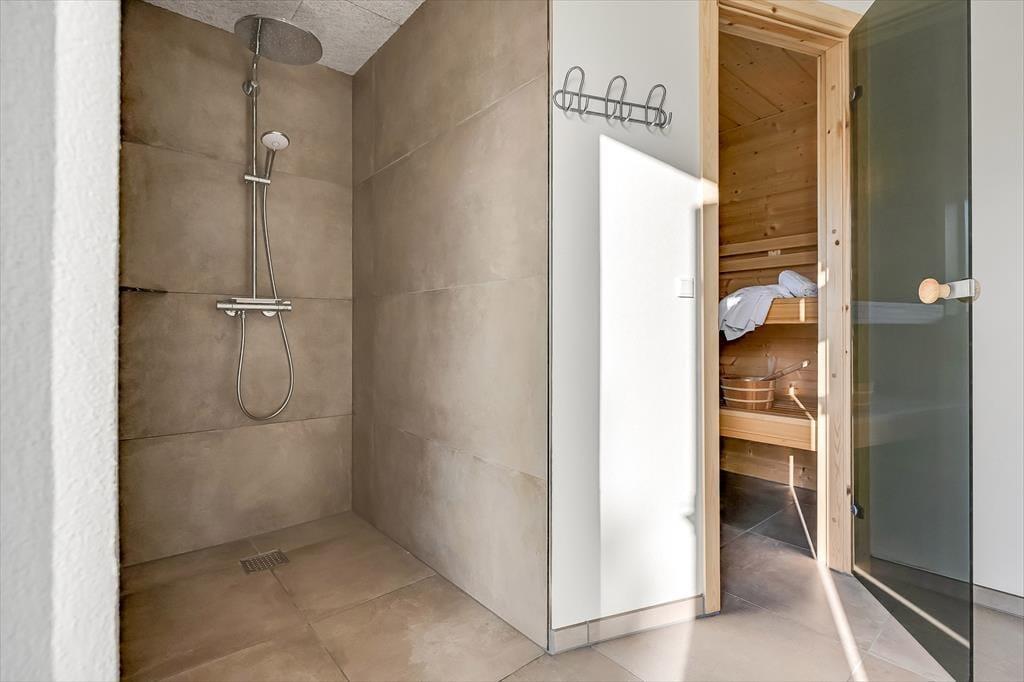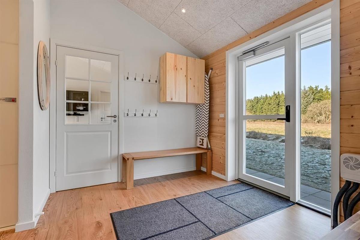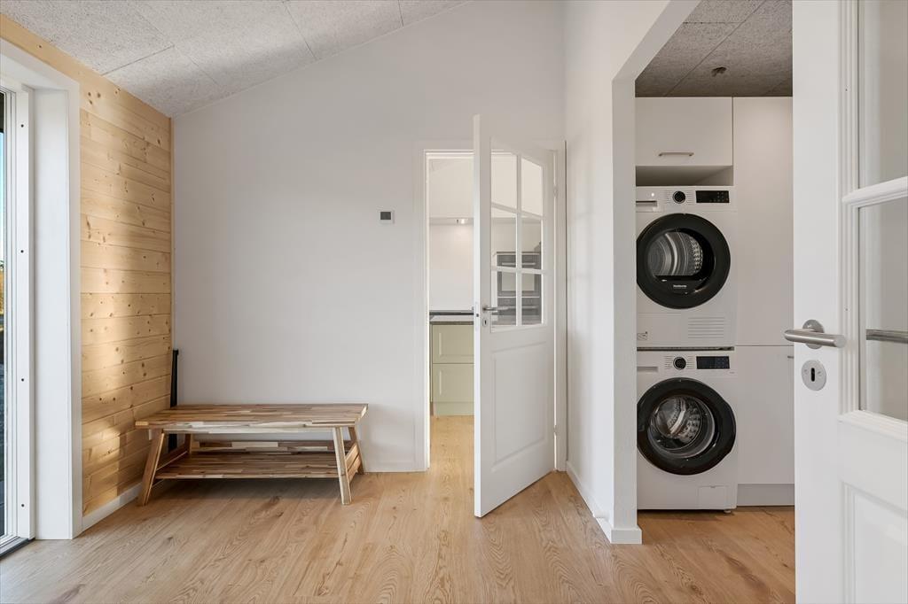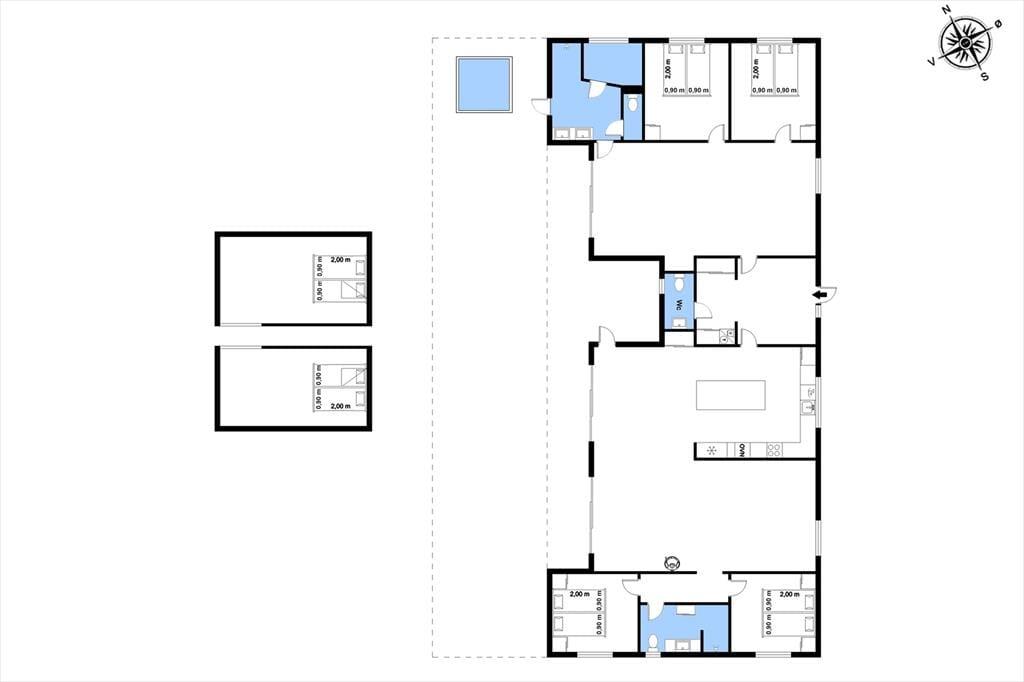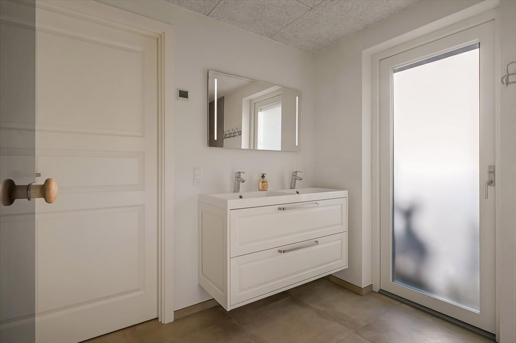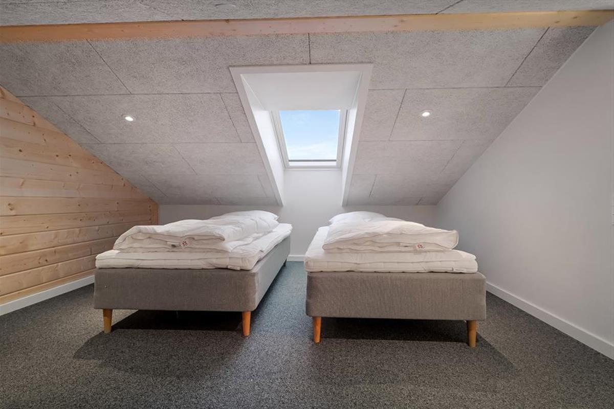 Im Inneren empfängt dich ein stilvolles und einladendes Ferienhaus, in dem Großzügigkeit und Qualität Hand in Hand gehen. Die große Wohnküche ist der natürliche Treffpunkt des Hauses und bietet viel Platz für die ganze Familie – ganz gleich, ob gemeinsam gekocht, der Tisch für gesellige Mahlzeiten gedeckt oder bei Spielen und Gesprächen am Esstisch entspannt wird. Große Fensterfronten lassen viel Tageslicht herein und schaffen eine angenehme Atmosphäre, die das Gefühl von Weite und Ruhe unterstreicht. Das Ferienhaus verfügt über vier große Schlafzimmer mit Doppelbetten sowie zusätzlich über zwei Schlafböden mit Doppelbett, die für zusätzliche Flexibilität sorgen und das Haus ideal für mehrere Generationen oder größere Familien machen. Der Wellnessbereich ist etwas ganz Besonderes: Hier kannst du die wohltuende Wärme der Sauna genießen und die Entspannung mit direktem Zugang zum Außen-Whirlpool fortsetzen – perfekt nach einem Tag an der frischen westjütischen Luft. Und wenn der Wettbewerbsgeist erwacht, steht der Aktivitätsraum bereit für viele Stunden Spaß und freundschaftliche Wettkämpfe.