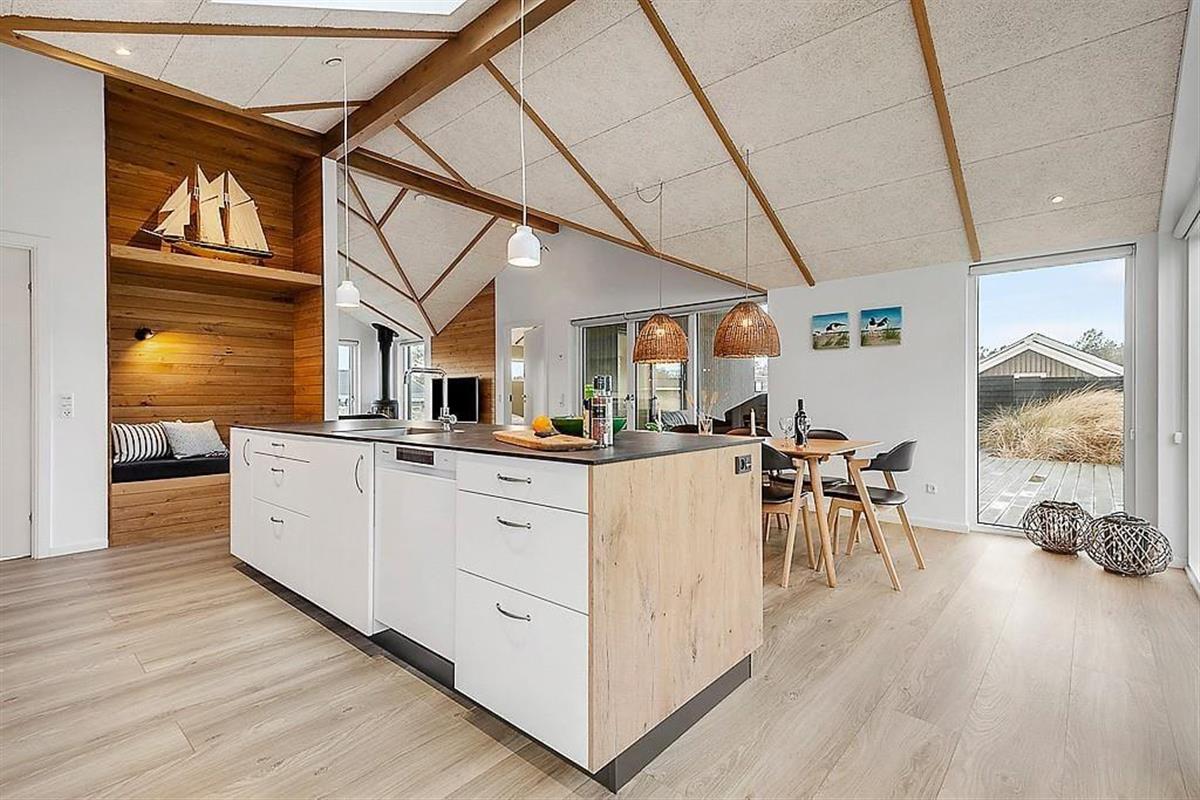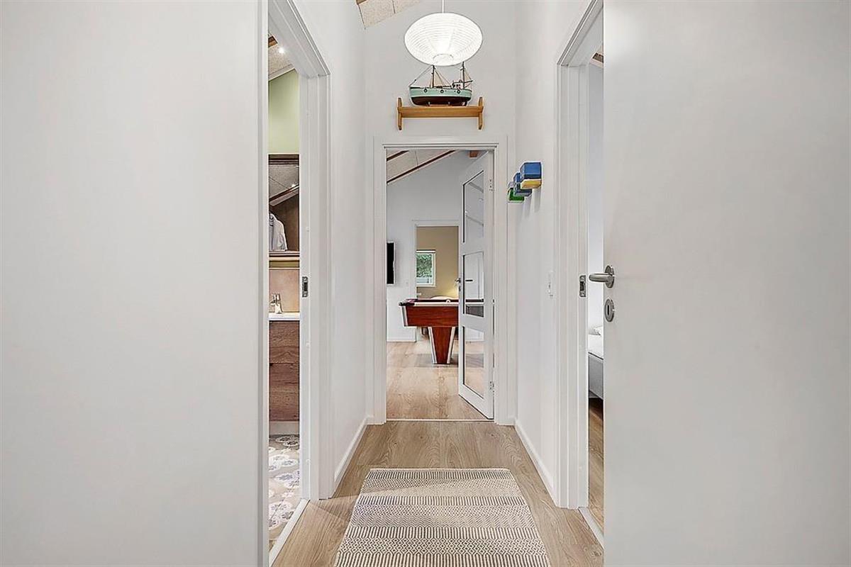 Im Inneren empfängt dich ein Ferienhaus, in dem Qualität, Komfort und eine durchdachte Einrichtung den Rahmen für das Urlaubsleben bilden. Helle Materialien, ruhige Farbtöne und die großzügige Raumaufteilung schaffen eine warme und angenehme Atmosphäre, in der du dich schnell zuhause fühlst. Sowohl ein Kaminofen als auch eine Wärmepumpe sorgen dafür, dass das Haus behaglich und gemütlich ist. Du kannst den Tag ruhig mit dem Duft von frisch gebrühtem Kaffee beginnen, während die Morgensonne durch die Fenster fällt – oder die Familie zu langen Mahlzeiten, Lachen und guten Gesprächen am Esstisch versammeln. Die vier Schlafzimmer bieten Platz für bis zu acht Personen und sind spürbar auf Ruhe und Erholung ausgelegt, sodass du ausgeruht aufwachst und bereit für neue Urlaubserlebnisse bist. Mit zwei Badezimmern gibt es ausreichend Platz für alle, und das gesamte Haus strahlt jene besondere Ruhe aus, die es leicht macht, bereits ab dem ersten Tag in Urlaubsstimmung zu kommen. Wenn du dein Wettbewerbsgen ausleben möchtest, bietet der Aktivitätsraum reichlich Gelegenheit dazu – hier stehen dir sowohl ein Billardtisch als auch Tischtennis und Shuffleboard zur Verfügung.