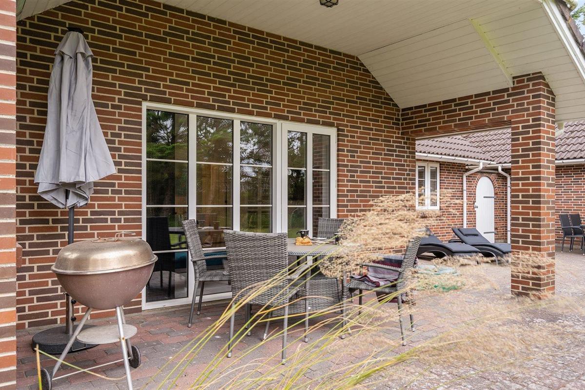 De vakantiewoning is gelegen op een 1669 m² groot natuural grond. Afstand tot de zee 1000 m. Dichtstbijzijnde winkel 300 m. Bij de vakantiewoning hoort 50 m² terras. Daarnaast is er een 11 m² groot overdekt terras. Gereedschapsruimte. Schommel. Zandbak. Speeltoren. Glijbaan. Voetbaldoel. Barbecue. Parkeerplaats bij het huis.