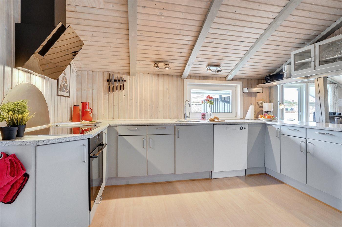 De keuken is uitgerust met koelkast Er is 4 elektrische kookplaten, bakoven, magnetron en vaatwasser.