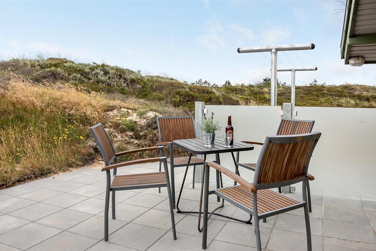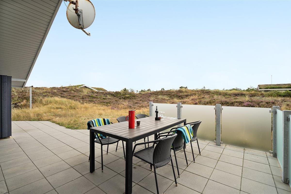 De vakantiewoning is gelegen op een 2400 m² groot natuural grond. Afstand tot de zee 300 m. Dichtstbijzijnde winkel 1500 m. Bij de vakantiewoning hoort 30 m² terras. Daarnaast is er een 10 m² groot overdekt terras. Zandbak. Parkeerplaats bij het huis.