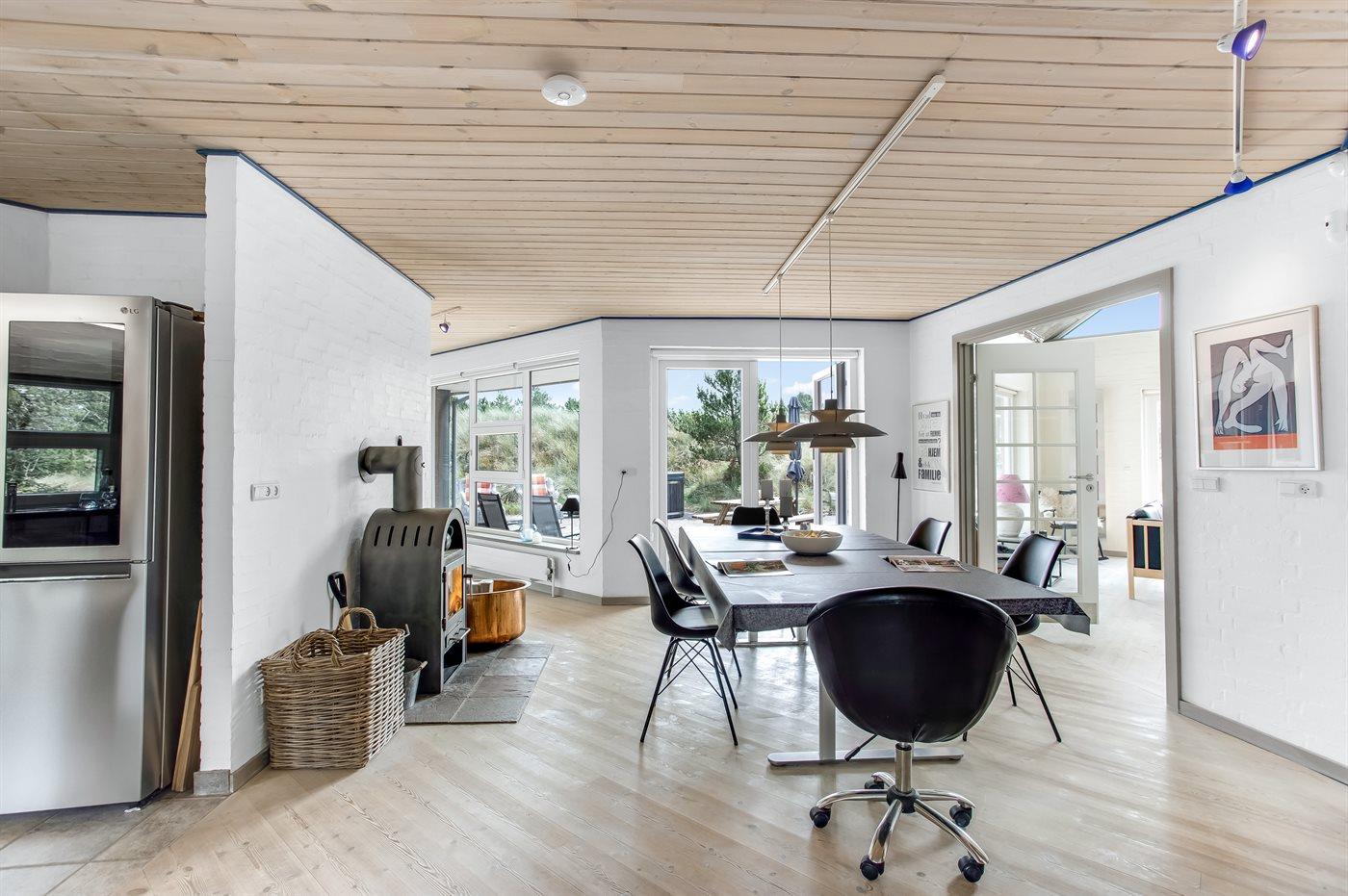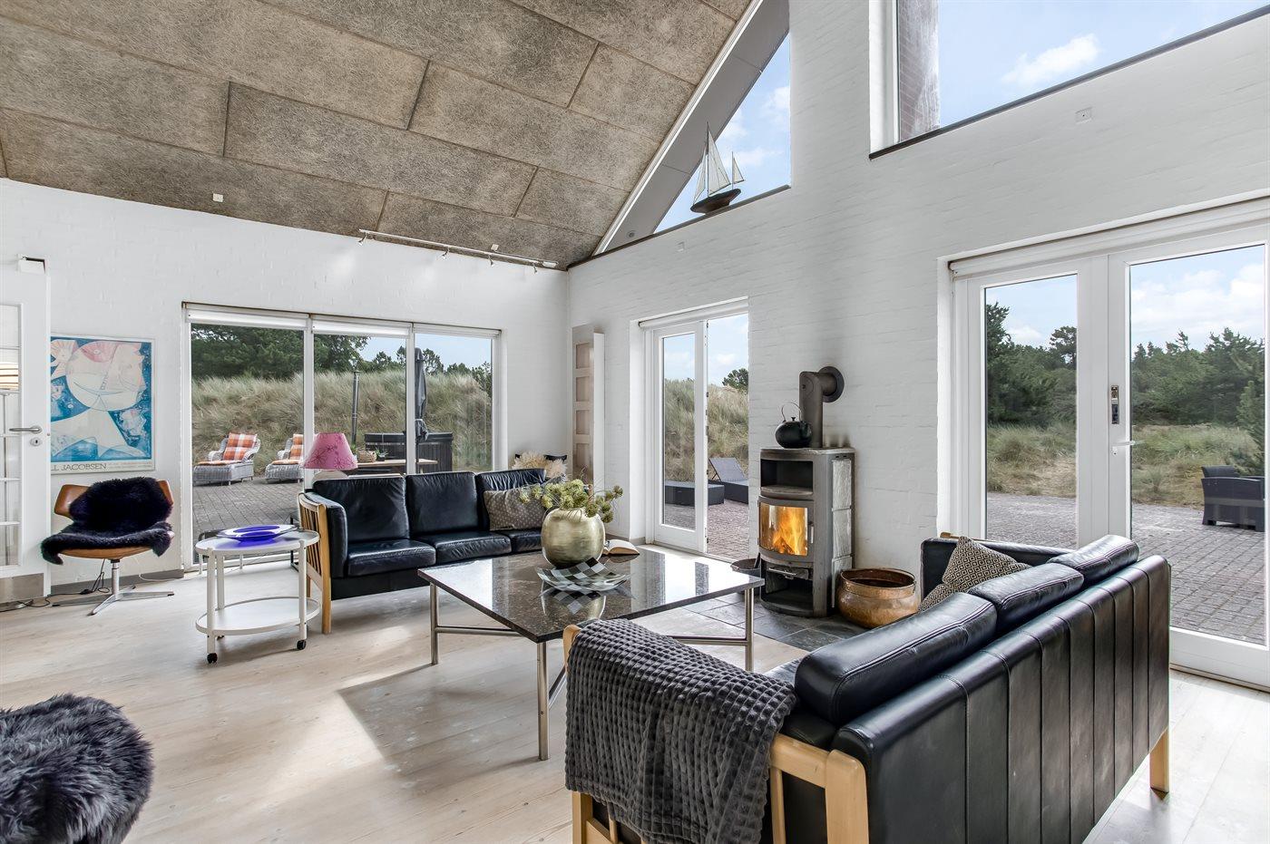 Ruim vakantiehuis in Blåvand met hot tub, houtkachel en elektrische laadpaal voor een ontspannen verblijf.