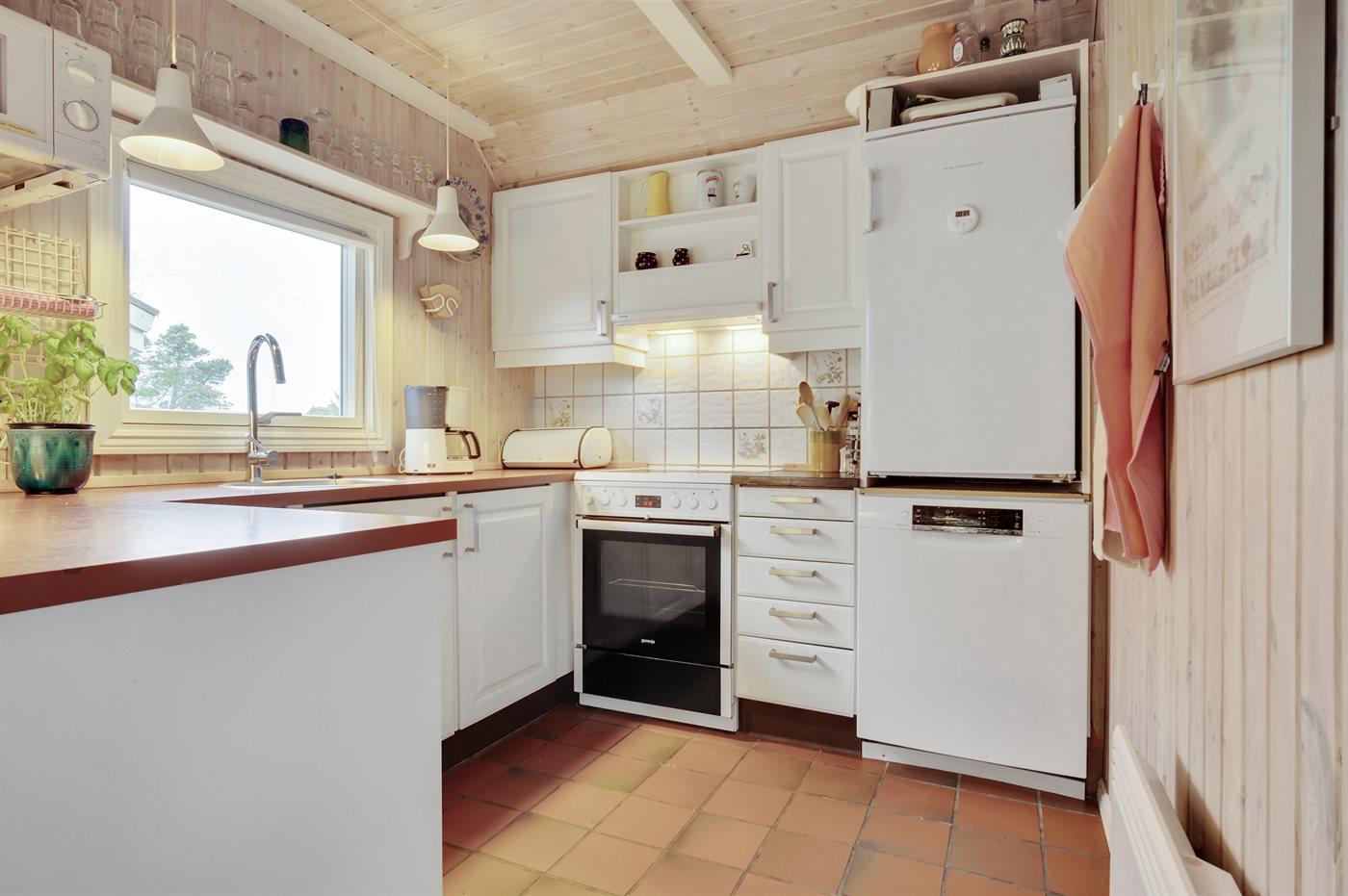 De keuken is uitgerust met koelkast Er is 4 elektrische kookplaten, bakoven, heteluchtoven, magnetron en vaatwasser.