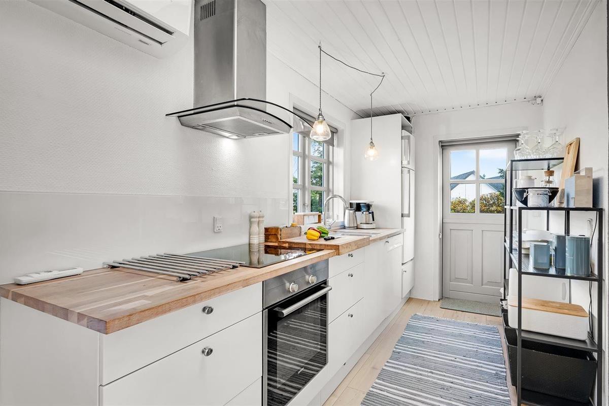 De keuken is uitgerust met koelkast Er is 4 inductiekookplaten, heteluchtoven, magnetron en vaatwasser.