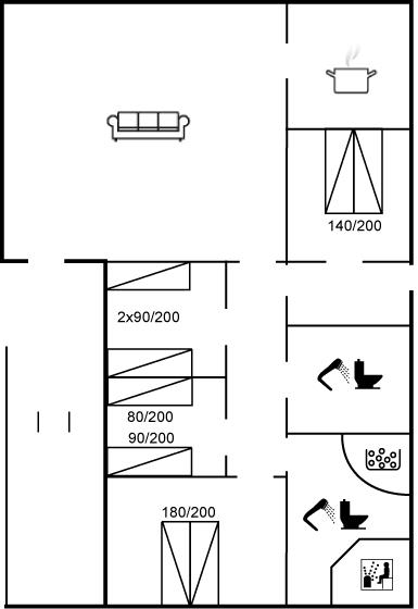 Er zijn in totaal 4 slaapkamers. De slaapplaatsen zijn als volgt verdeeld: 4 slaapplaatsen in tweepersoonsbedden. 4 slaapplaatsen in eenpersoonsbedden. Verder is kinderbed ter beschikking.