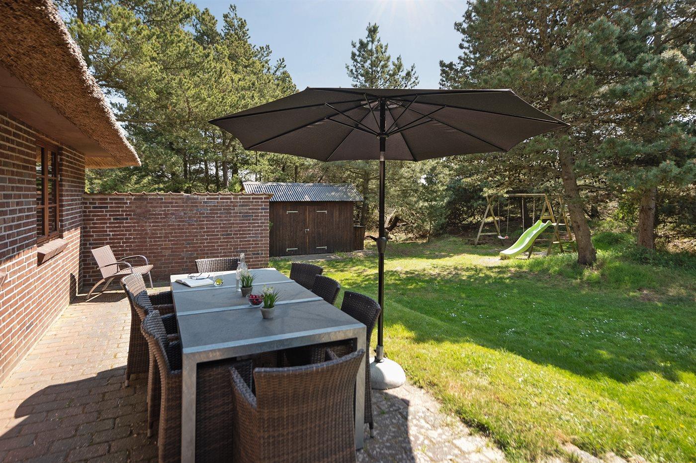 De vakantiewoning is gelegen op een 4890 m² groot natuural grond. Afstand tot de zee 800 m. Dichtstbijzijnde winkel 400 m. Bij de vakantiewoning hoort 15 m² terras. Gereedschapsruimte. Schommel. Glijbaan. Het huis heeft een stopcontact voor het opladen van een elektrische auto. Oplaadstekker type 2. Parkeerplaats bij het huis.