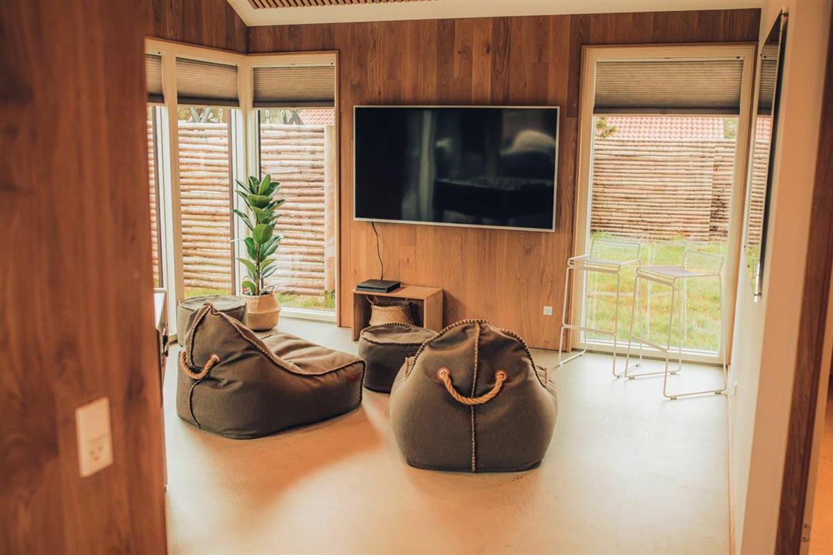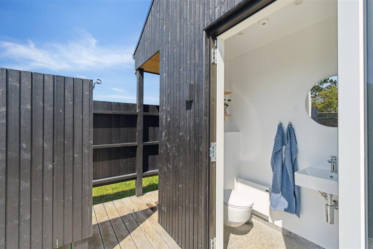 De vakantiewoning is gelegen op een 1350 m² groot natuural grond. Afstand tot de zee 400 m. Dichtstbijzijnde winkel 500 m. Bij de vakantiewoning hoort 80 m² terras. Daarnaast is er een 10 m² groot overdekt terras. Schommel. Zandbak. Trampoline. Buitensauna. Buitendouche. Op zwoele avonden zorgt de buitenhaard voor een gezellige sfeer. U kunt buiten een maaltijd bereiden in de buitenkeuken. Barbecue. Het huis heeft een stopcontact voor het opladen van een elektrische auto. Oplaadstekker type 2. Oplaadstekker type 1. Met 11 kW-laadvermogen. Parkeerplaats bij het huis.