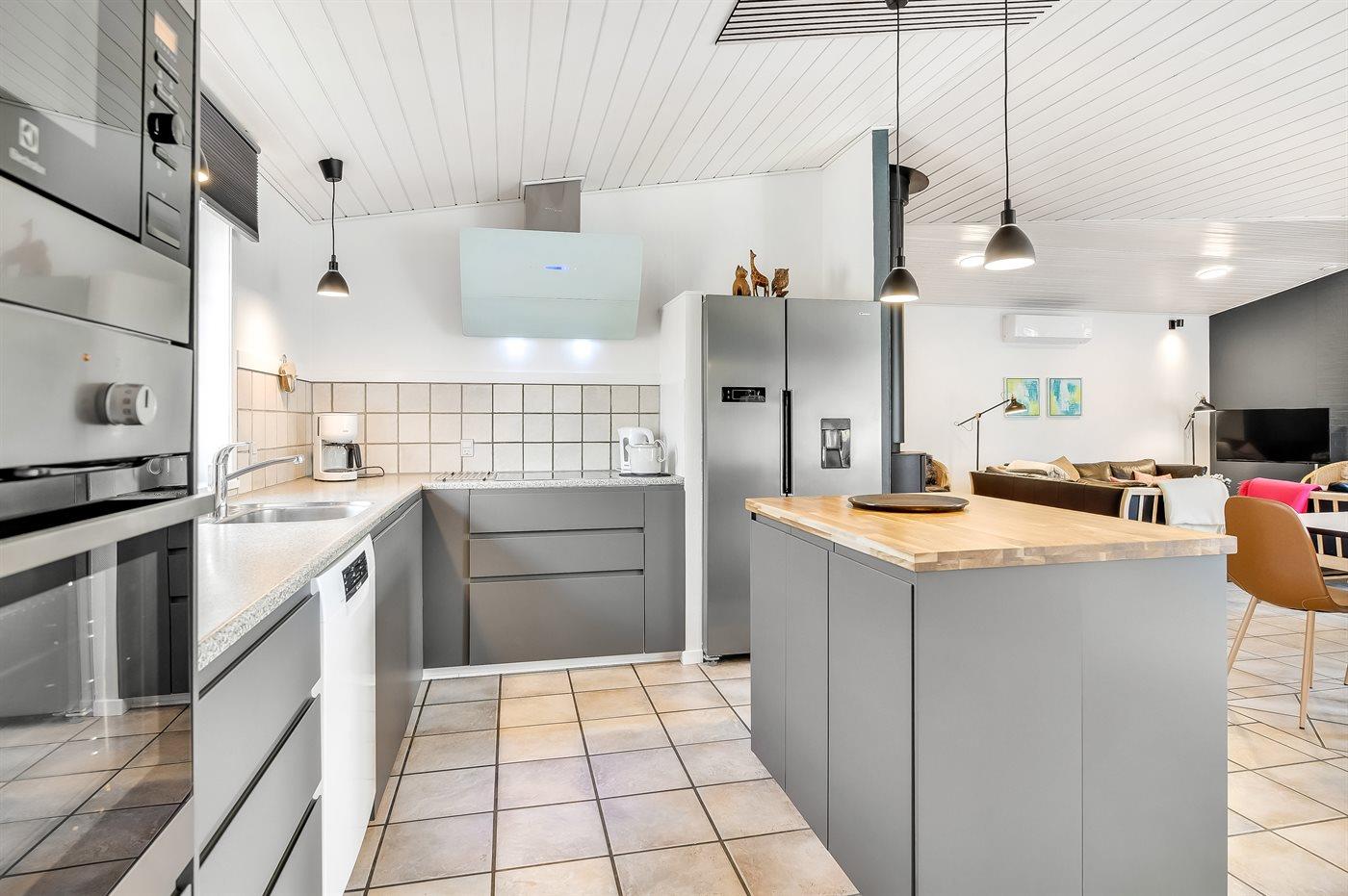 De keuken is uitgerust met amerikaanse koelkast Er zijn 4 keramische kookplaten, heteluchtoven, magnetron en vaatwasser.