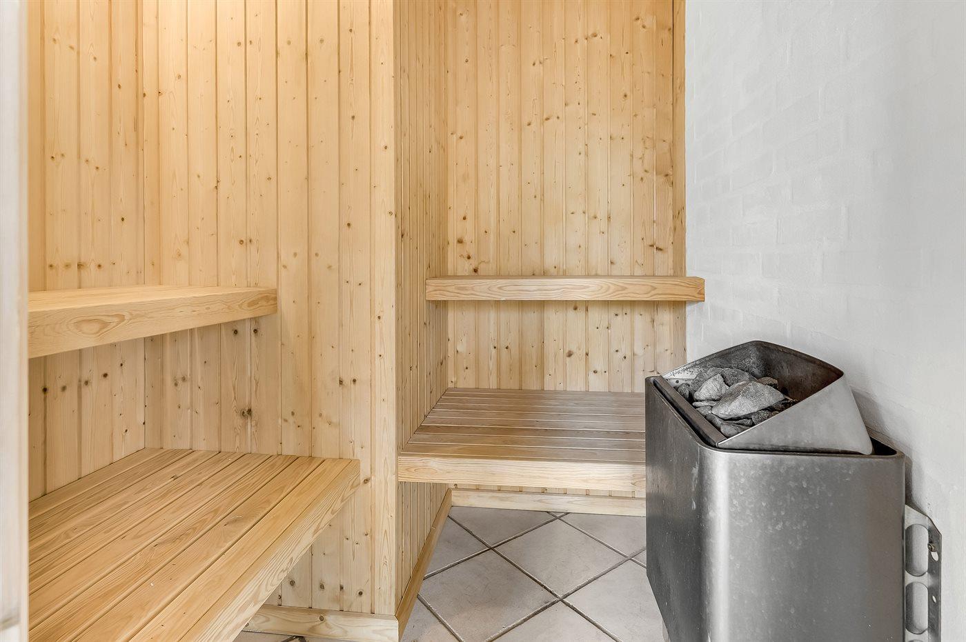 Er is 3 badkamers met douche en 3 toiletten. Er is vloerverwarming in 3 van de badkamers. De sauna biedt de gelegenheid tot ontspanning.